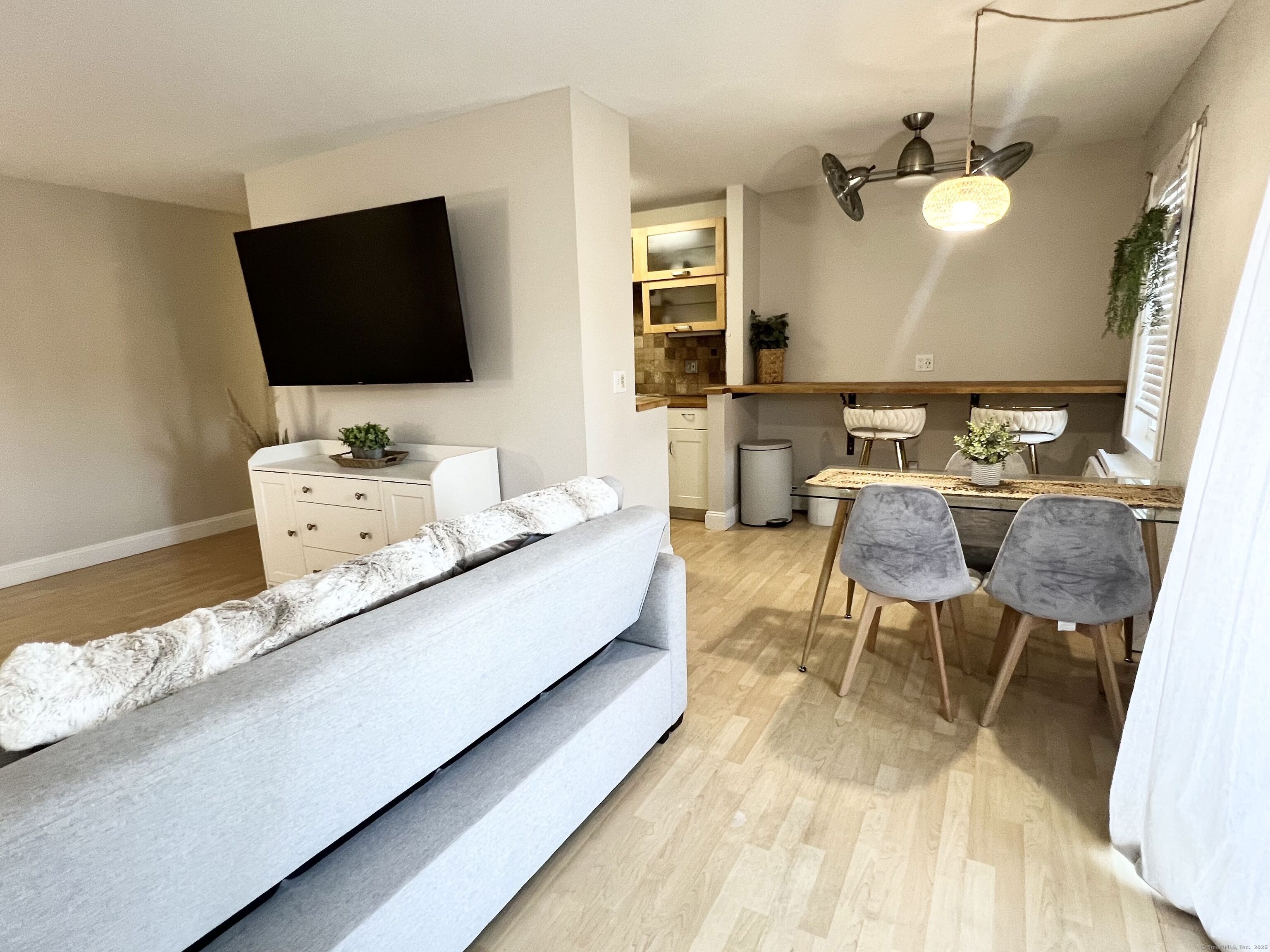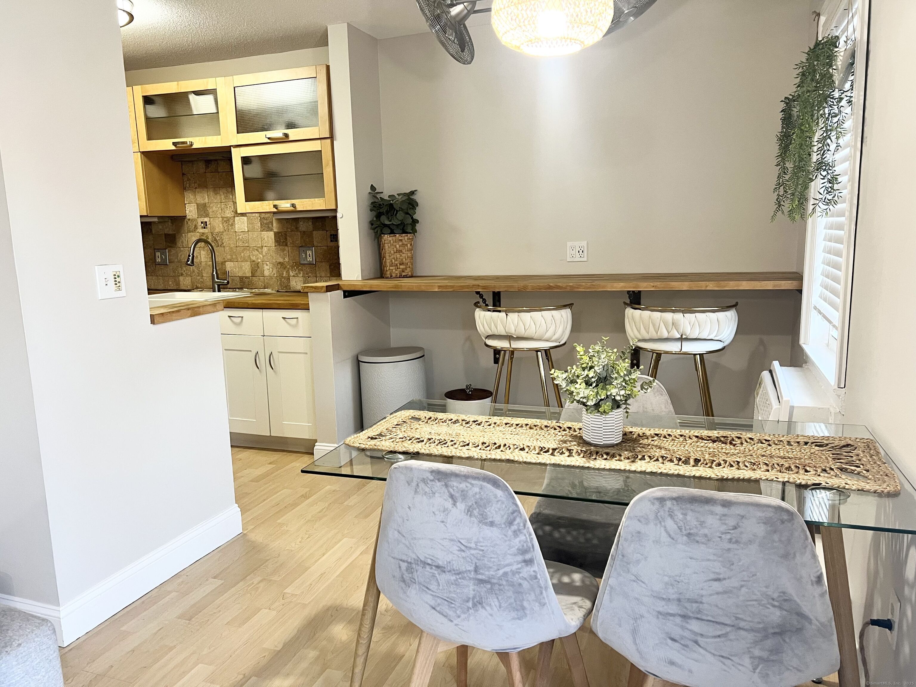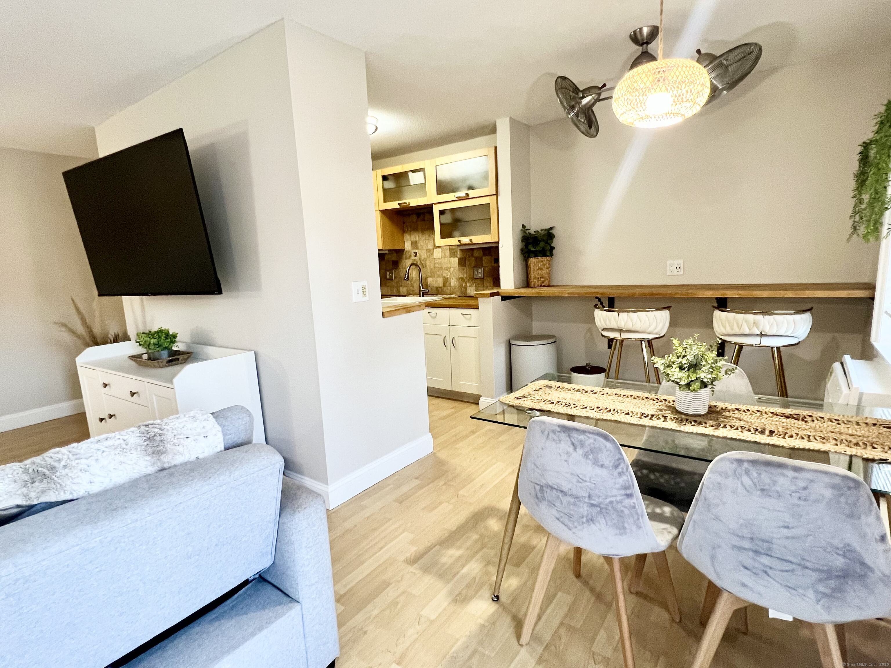 Two Bedroom Balance Rock Condominium, half flight up to main level living. Stylish, bright, and airy living room with sliding patio doors to covered deck. Two generous sized bedrooms with double closets and plenty of space for an office or desk. The kitchen has been updated, with farmhouse sink, butcher block counter tops, updated cabinets, and a custom built in breakfast bar in dining area. Updated full bathroom, new windows, additional storage locker in shared basement, and common laundry area. Complex offers a clubhouse, inground pool, playground, tennis, and basketball. Heat and Hot water included in the common charges, making for a warm and budget friendly winter! Balance Rock is a true hidden gem, a wonderful community nestled in the hills of the Naugatuck Valley. Easy commute to all major cities, including Hartford, New Have, I95, RT8 and more!