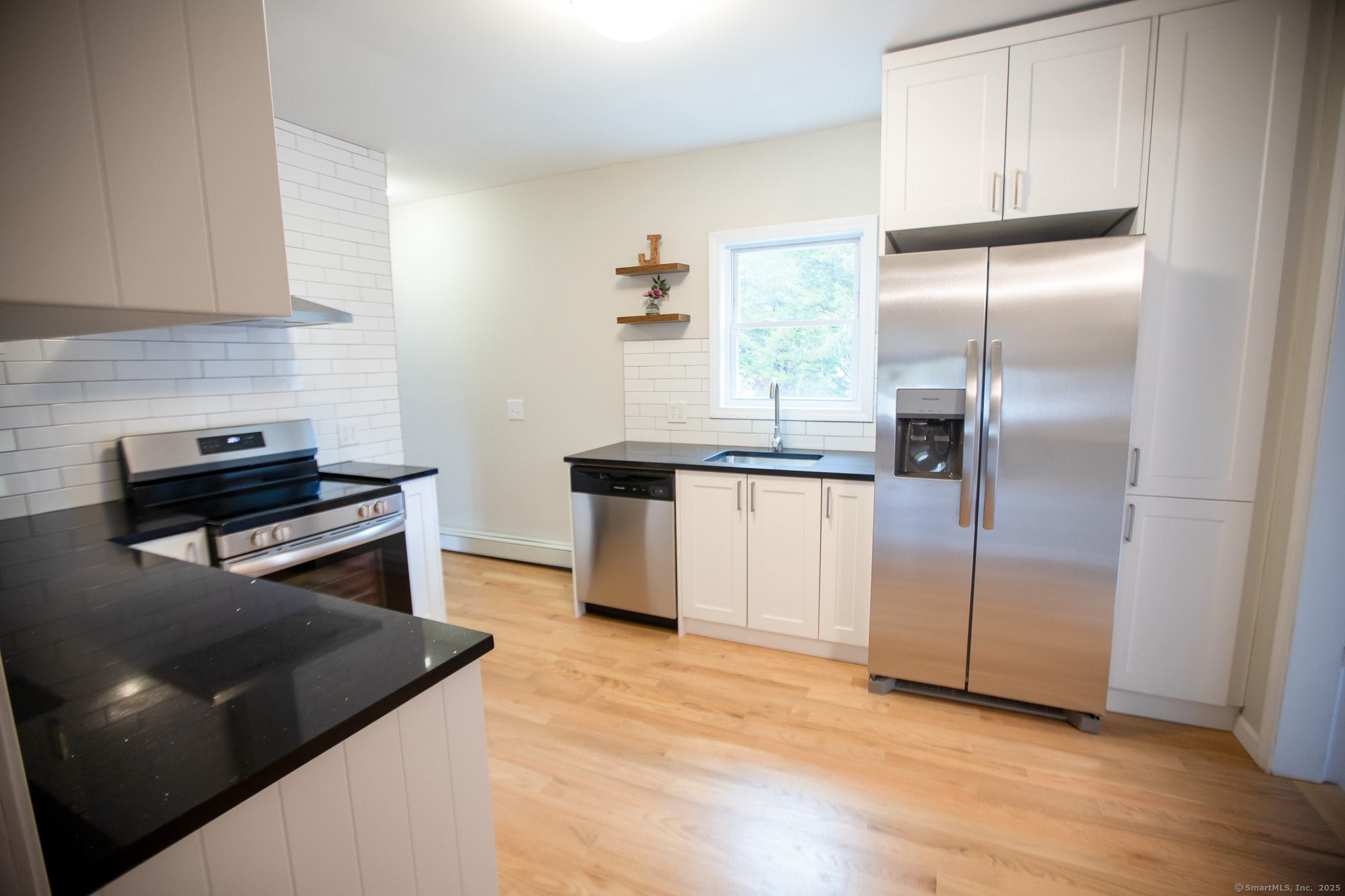 Charming 4 bedroom, 2.5 bathroom Cape Cod home in desirable North Haven! This beautiful property boasts plenty of natural light, spacious rooms, and ample storage. Expansive living room with large windows and cozy Fireplace. New Kitchen - a perfect space for cooking up memories. .49 acre lot with a very large backyard - perfect for outdoor entertaining, gardening, or just enjoying nature. NEW main level floors: gorgeous hardwood and tile. Beautifully refinished hardwood floors on the second level. Primary bedroom retreat on the main level featuring a spacious walk-in closet and large primary bathroom. Detached 2-story, extra-large shed with endless possibilities - ultimate space for a workshop, mancave, she-shed, game room, or whatever your imagination desires! Perfect for contractors, landscapers or small business owners. Lower level potential: One finished room in the basement with possibility for extra rooms, home office, or recreational space - bring your ideas! This home is very close to schools, making it an ideal choice for families. Ideal for Entertaining! With its spacious interior, expansive backyard, and versatile shed, this Cape Cod home is perfect for hosting gatherings, parties, and making memories. Convenient access to Hamden and North Haven shopping centers. Minutes from Quinnipiac University. Don't miss this incredible opportunity to own a piece of North Haven. Schedule a viewing and make this house your dream home!