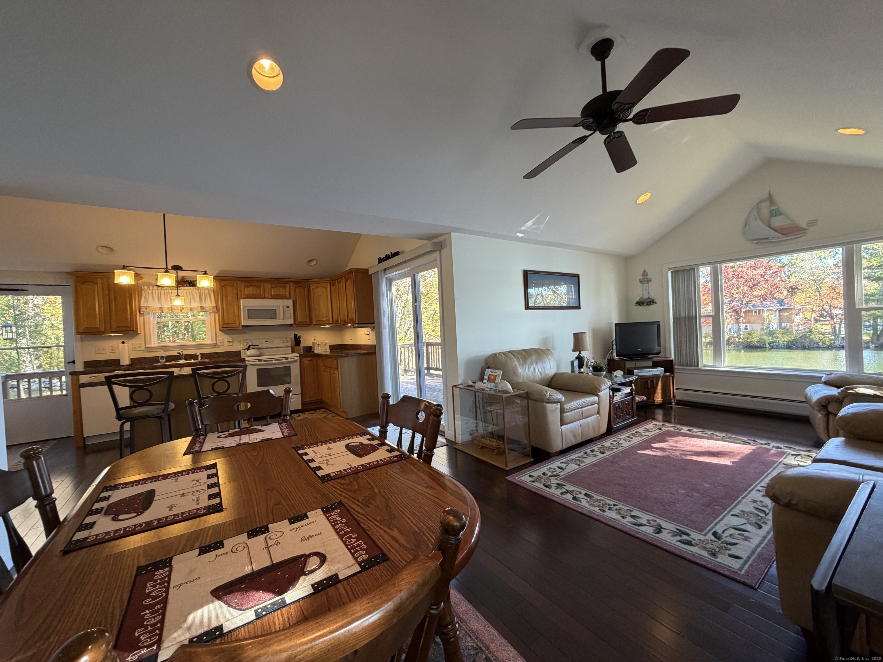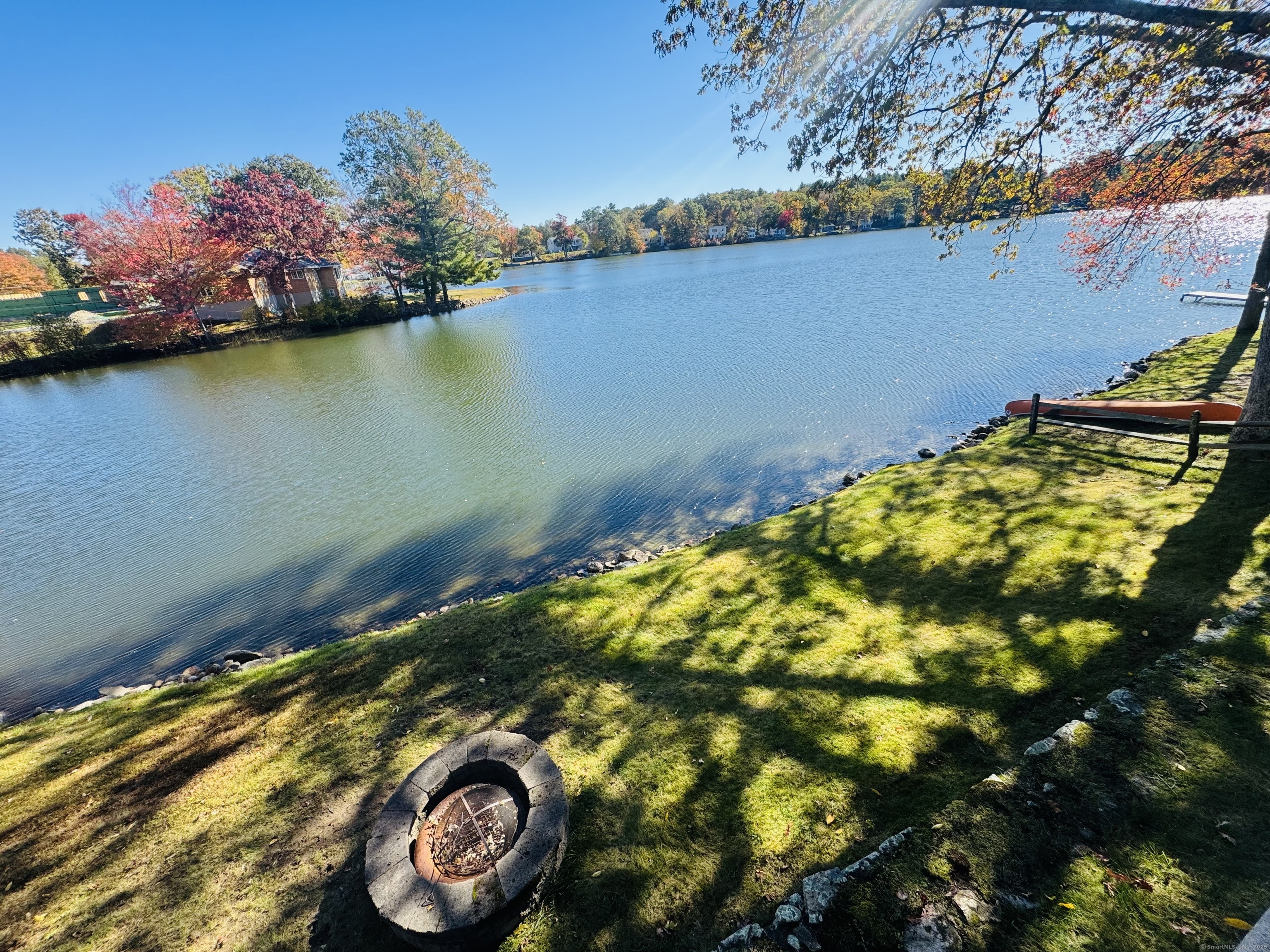 SPECTACULAR WATERFRONT with 2 extra lots across the street with SHED for STORAGE and for extra parking! 20 ft DOCK INCLUDED! Beautiful views year round when you sit on the HUGE 19 x 27 DECK. This 3-bedroom, 2-bath ranch with direct water access to Little Pond was fully renovated in 2008. The home features an inviting floor plan with an applianced kitchen that opens up to a bright VAULTED ceiling living/dining room. Boating, fishing, and stunning views - everything you need for a perfect year-round getaway or forever home. audio/video cameras.
