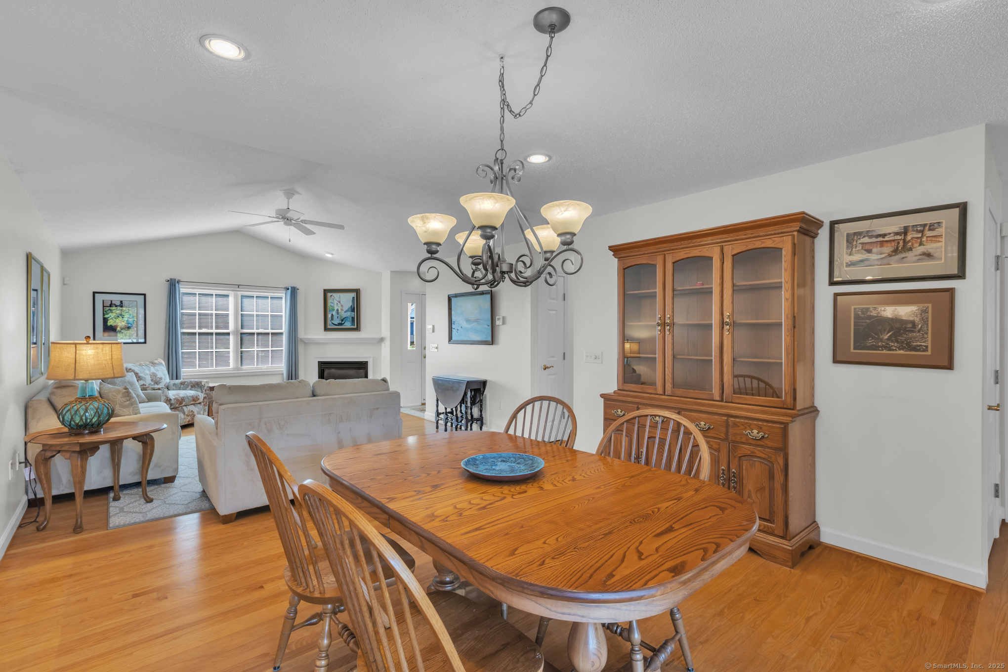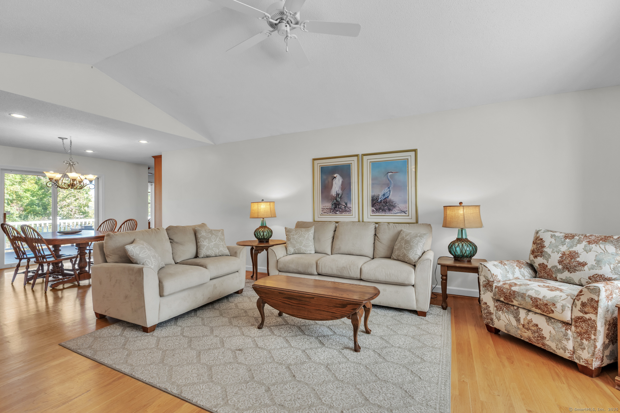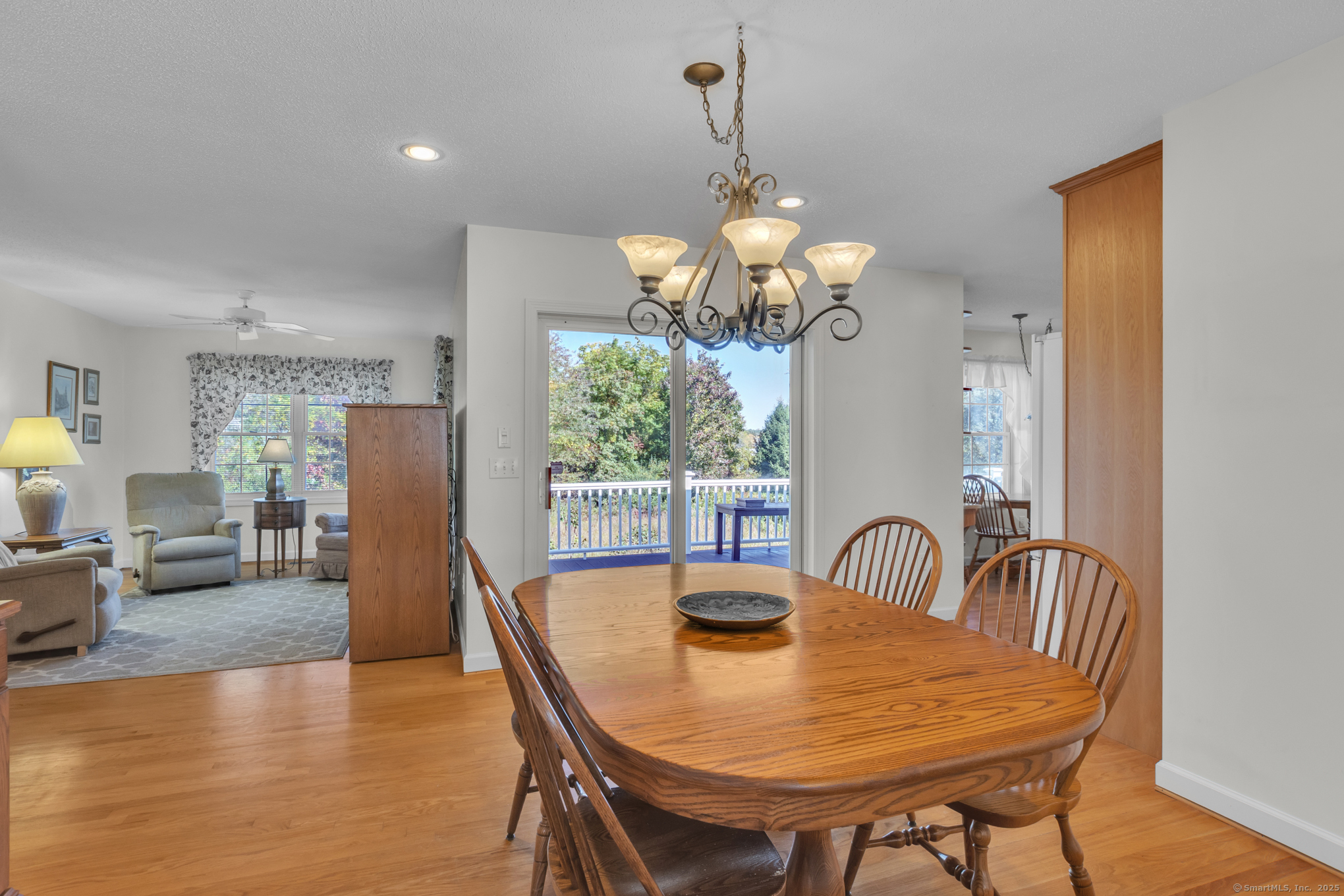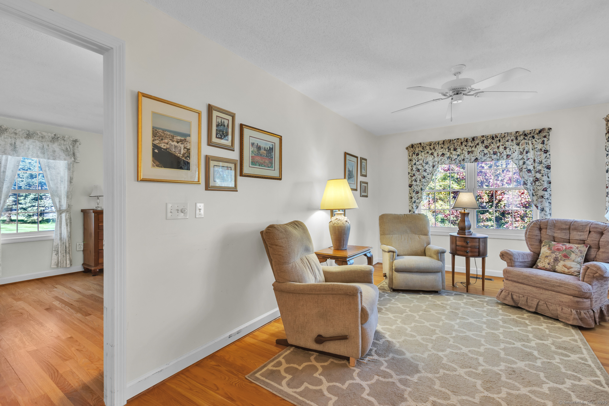 Beautifully maintained 1656 sq. ft. Ranch in 55+ Quail Hollow complex. Located in a quiet portion of the complex, this home is move in ready. Professional landscaping leads to a sun-drenched front porch and foyer. The foyer opens majestically to a cathedral ceiling Living room with immaculate hardwood floors and a soothing gas log fireplace. An open design floor plan includes the adjacent Dining room with more hardwood, recessed lighting and slider access to a large private rear deck. The eat-in Kitchen is both beautiful and functional. It includes distinctive cabinetry, tiled backsplash, abundant rear facing windows and a bright and sunny dining space. The back of the house includes an Office / Sitting room and Primary bedroom that both include hardwood floors, and relaxing views of the deck and backyard. The Primary bedroom includes an oversized walk-in closet - with barn door and ceiling fan - and a nicely appointed private full bath. A second Bedroom, common full bath and an off-kitchen Laundry room complete the living space. The lower level is unfinished with walkout and provides plenty of storage and the potential for expanded recreational space.