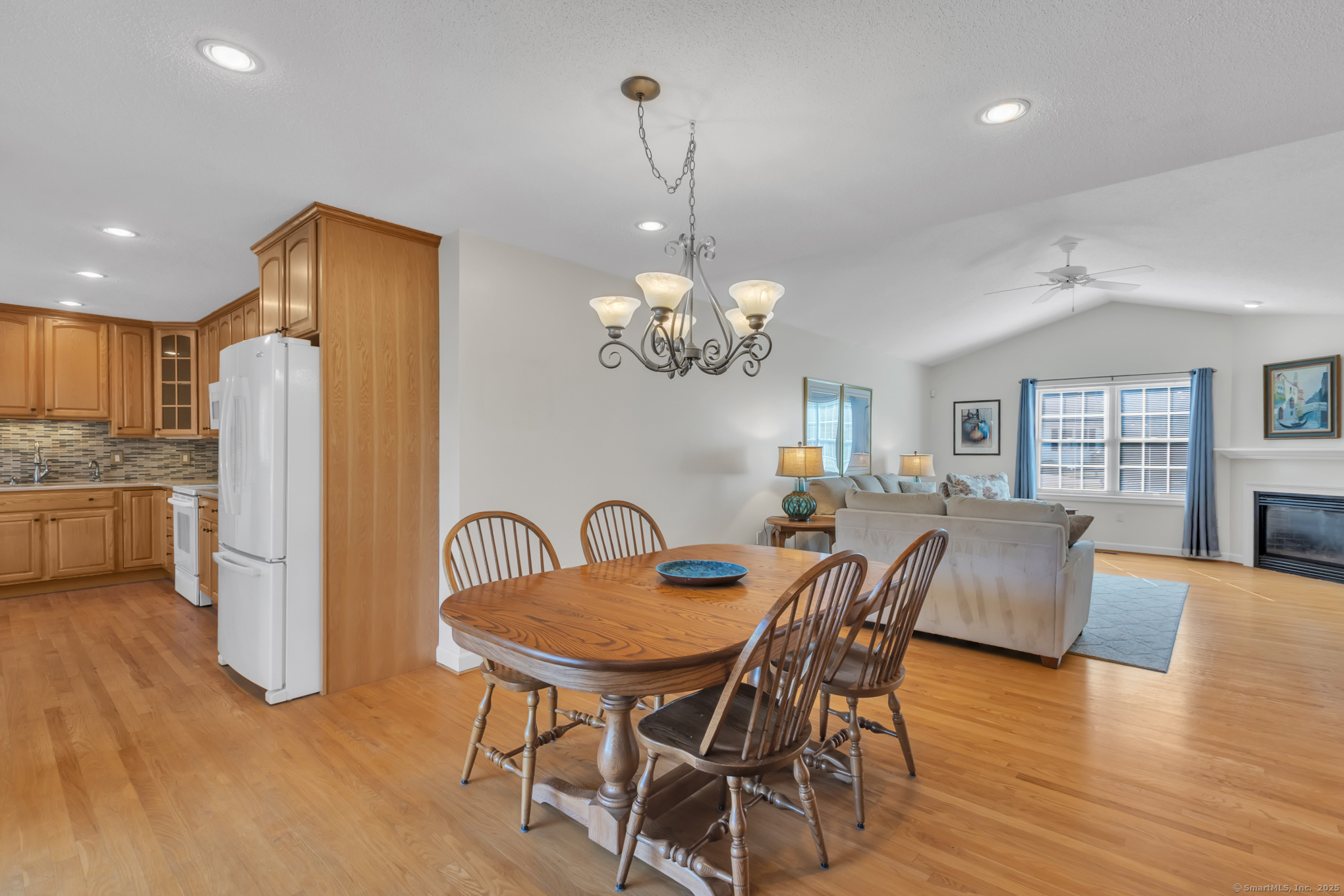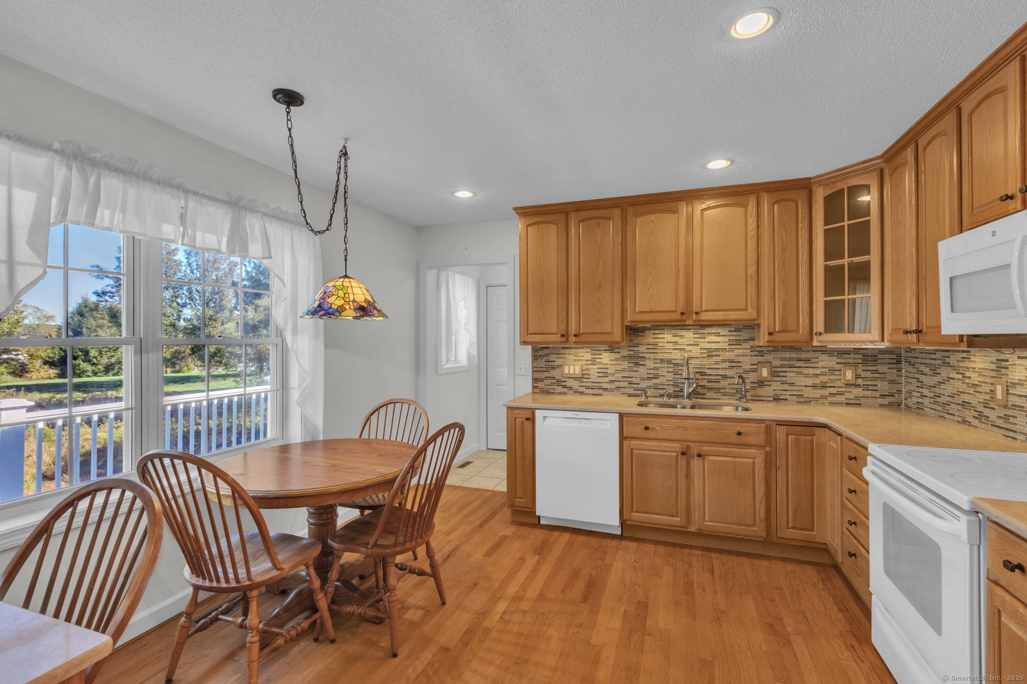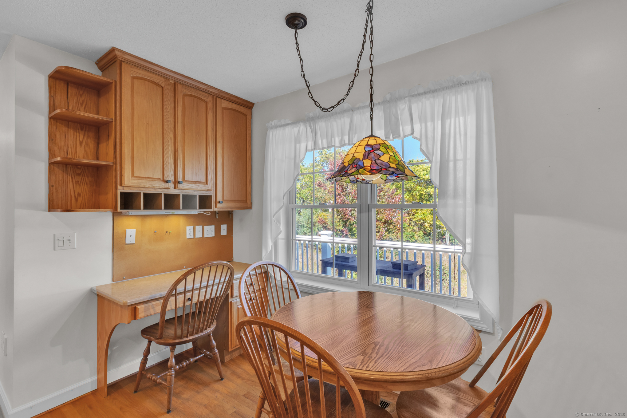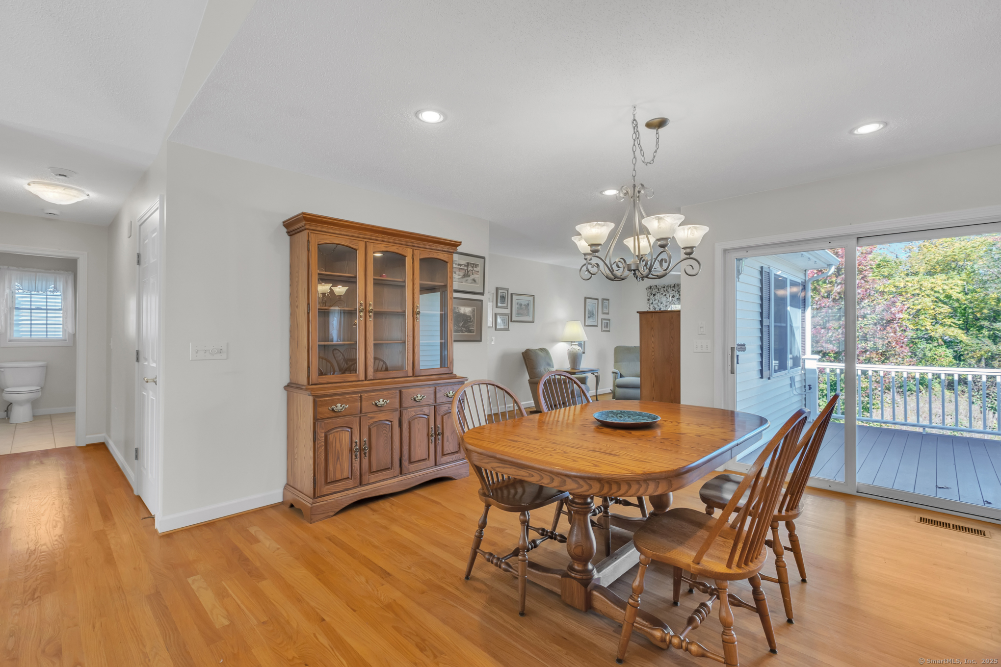 Beautifully maintained 1656 sq. ft. Ranch in 55+ Quail Hollow complex. Located in a quiet portion of the complex, this home is move in ready. Professional landscaping leads to a sun-drenched front porch and foyer. The foyer opens majestically to a cathedral ceiling Living room with immaculate hardwood floors and a soothing gas log fireplace. An open design floor plan includes the adjacent Dining room with more hardwood, recessed lighting and slider access to a large private rear deck. The eat-in Kitchen is both beautiful and functional. It includes distinctive cabinetry, tiled backsplash, abundant rear facing windows and a bright and sunny dining space. The back of the house includes an Office / Sitting room and Primary bedroom that both include hardwood floors, and relaxing views of the deck and backyard. The Primary bedroom includes an oversized walk-in closet - with barn door and ceiling fan - and a nicely appointed private full bath. A second Bedroom, common full bath and an off-kitchen Laundry room complete the living space. The lower level is unfinished with walkout and provides plenty of storage and the potential for expanded recreational space.