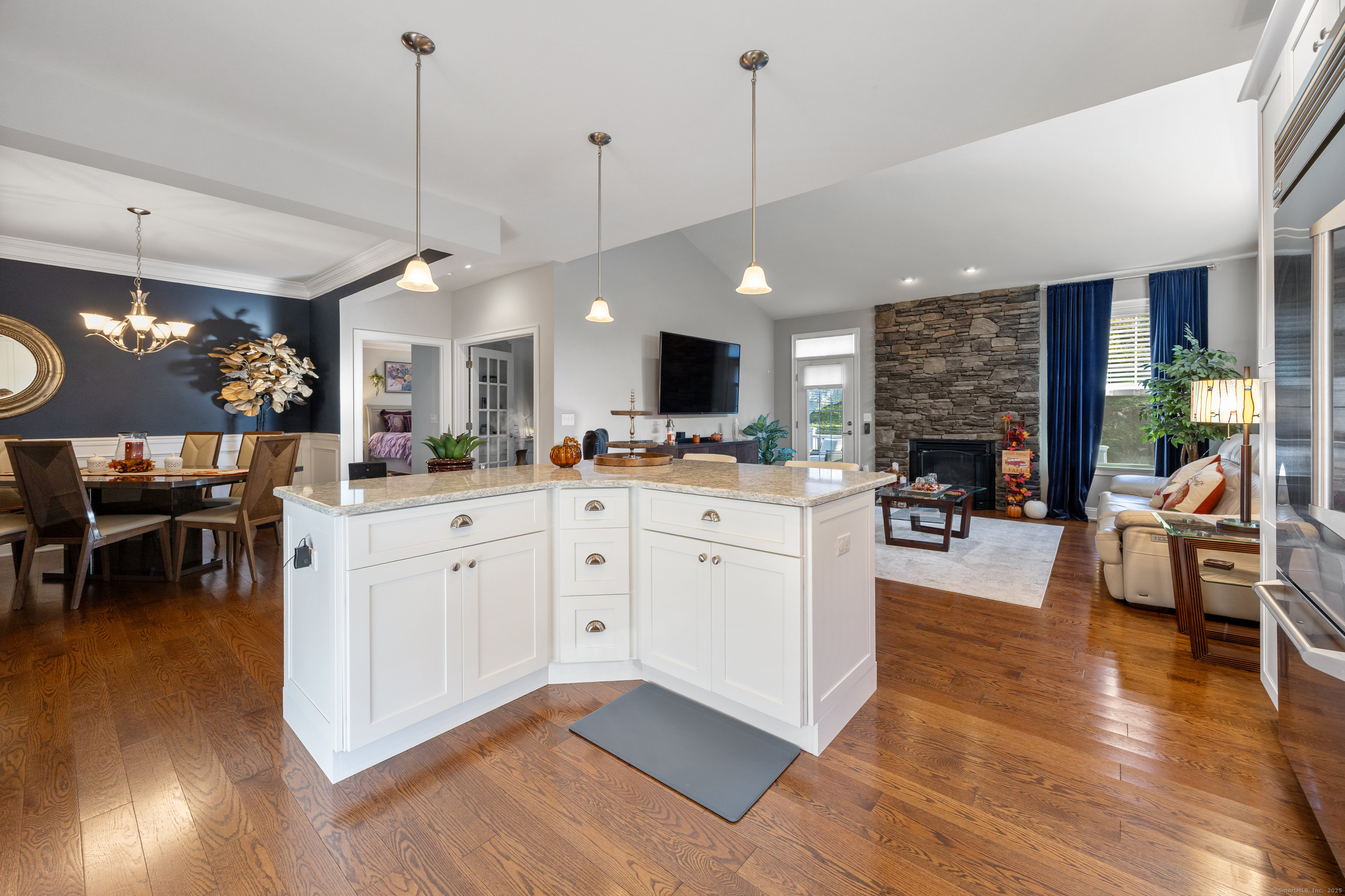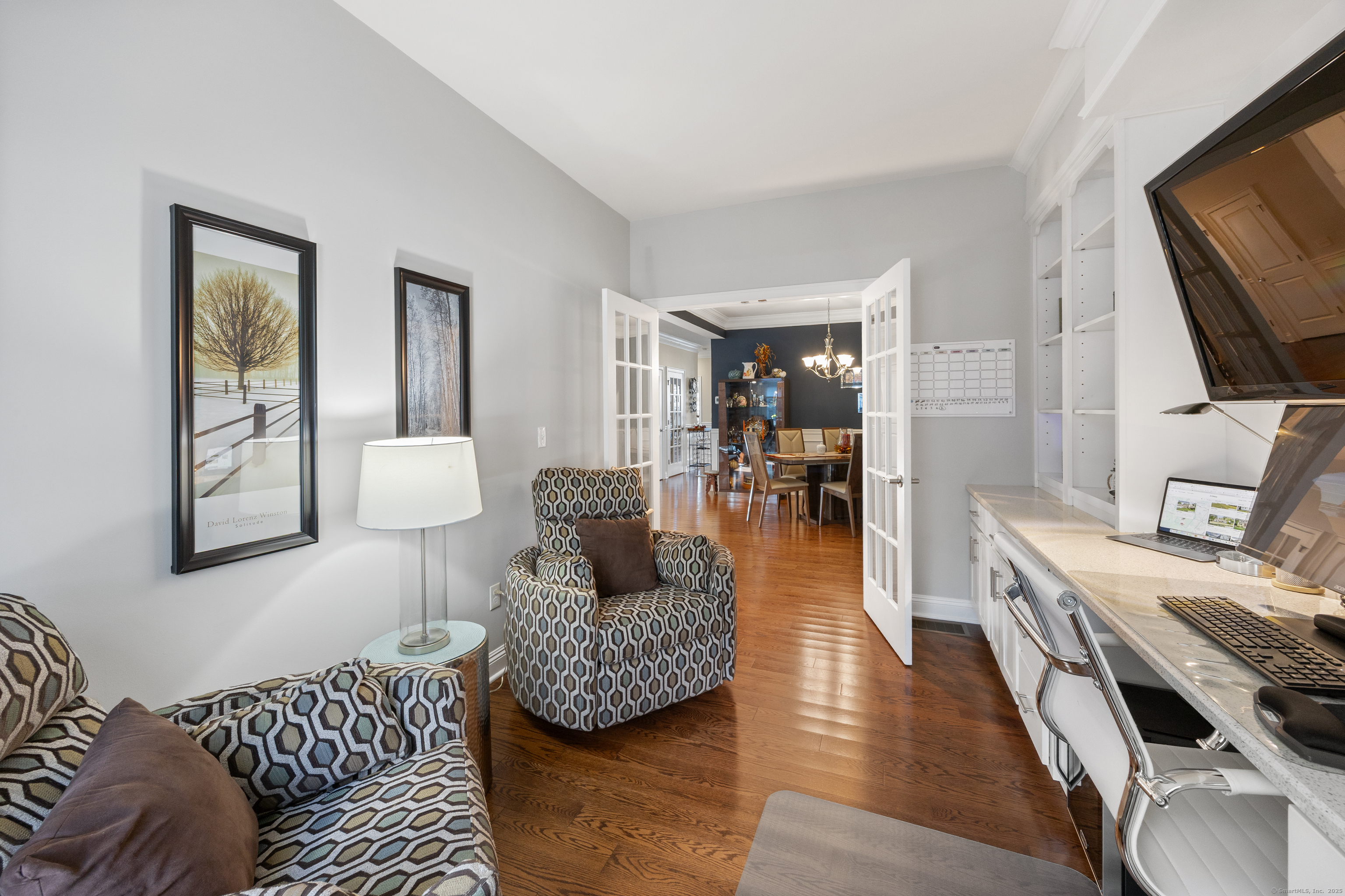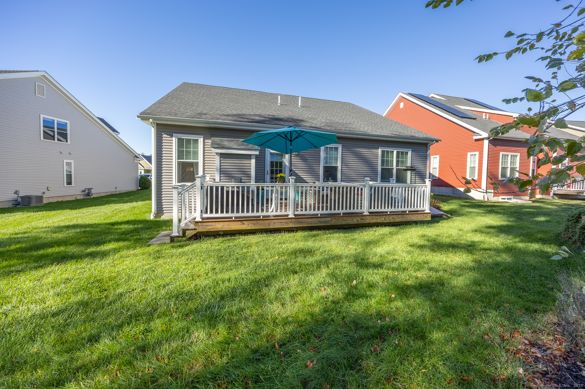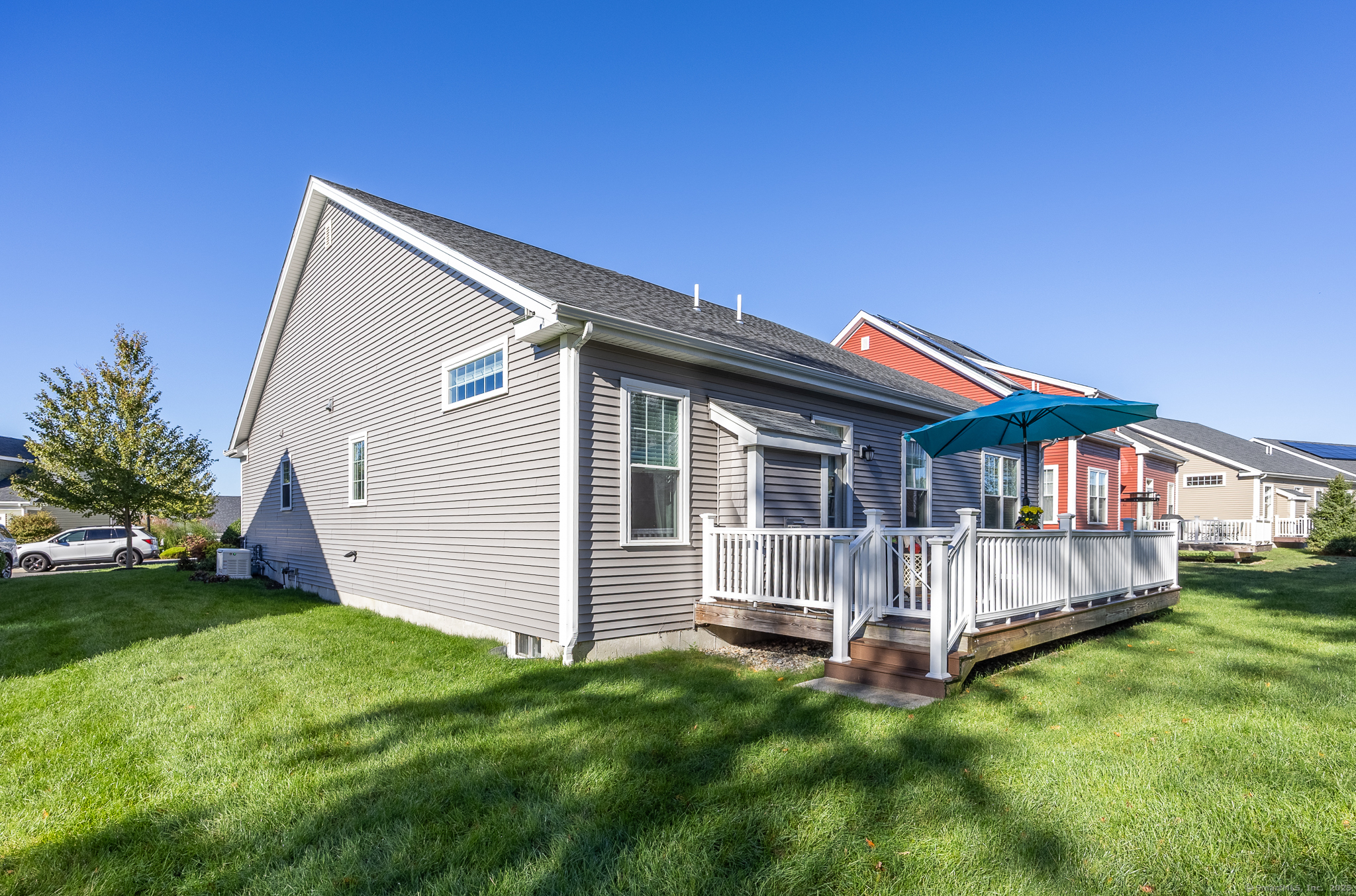 Welcome to 81 Fieldstone Lane! This one level Ranch home located in a 55+ Luxury Community of Chatfield Farms. These homes are rarely available. This Meticulously kept home offers 6 rooms, 2 bdms & 2 full baths. Walk through the front door and immediately feel welcomed by the large foyer that leads to the Gorgeous Kitchen w/White Quartz counters, tiled backsplash, Large Island, SS Appls including a 5-burner gas cooktop & wall oven with custom hood, a pantry and recessed lighting. The Kitchen opens to the Dining Rm and Family Rm offering a floor to ceiling Stone Gas Fireplace. There are Wide Plank Hardwood Flrs & Crown Molding throughout the main level. The French doors lead to the 1st floor office with custom cabinetry and built ins. The Primary Bedroom features a large walk-in closet, a full-on suite bathroom with double sinks, quartz counters and a walk-in tiled shower. Down the hall is the 2nd bedroom and 2nd Full Bath. The laundry room is located on the main level. Off the back is a Maintenance Free Trex Deck for your outdoor Enjoyment! The Lower level has been partially finished offering an addl 700 sq ft to your living area and tons of storage. The home's additional features include a 2 Car Attached Garage, a Generator & an Irrigation System. This Community offers a Clubhouse, Inground Heated Pool, Health Club w/Spa, Pickle Ball Courts, Library, Nature Trails & so much more. Don't miss this rare opportunity to make this Stunning unit in Chatfield Farms your New Home!