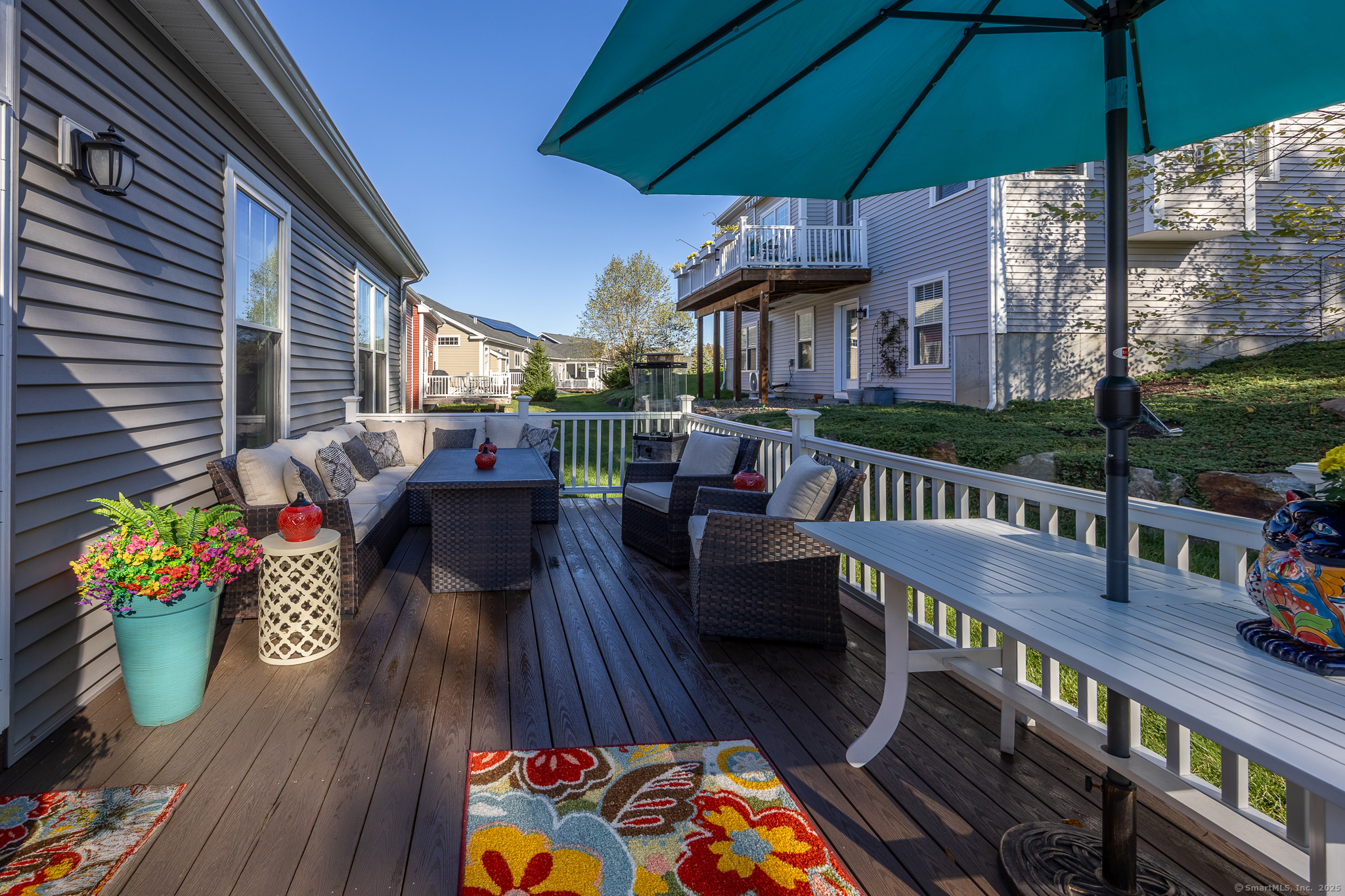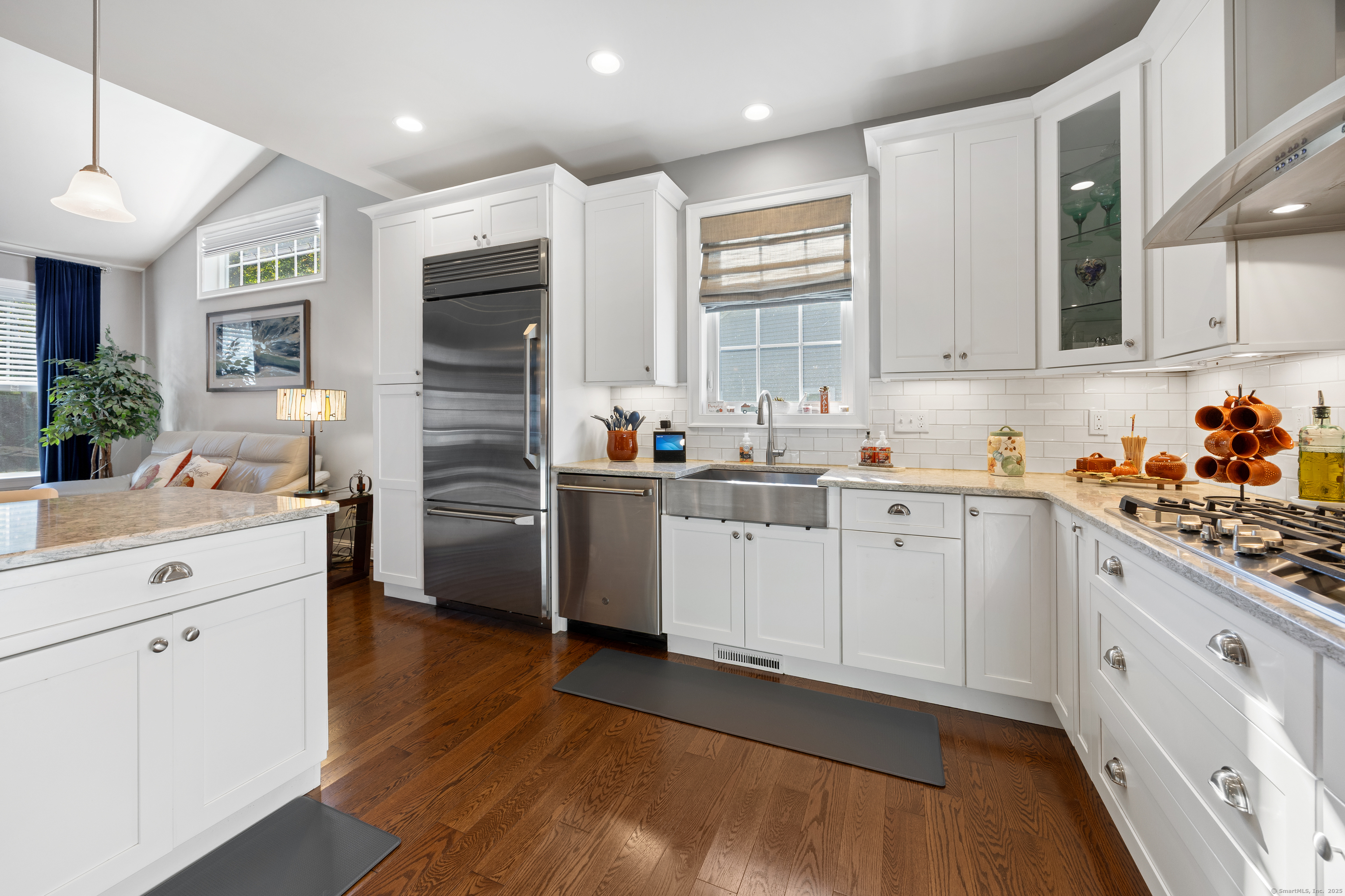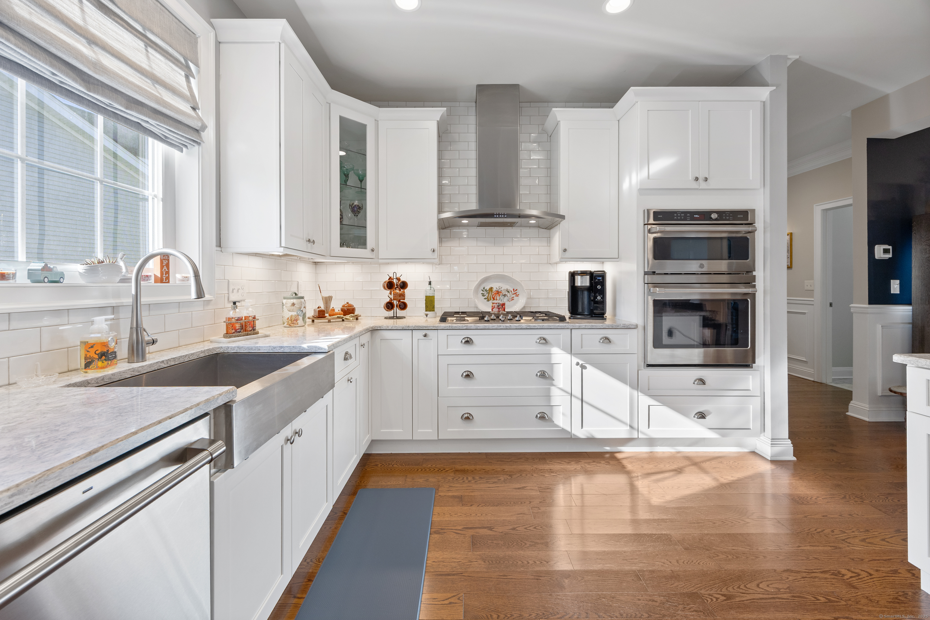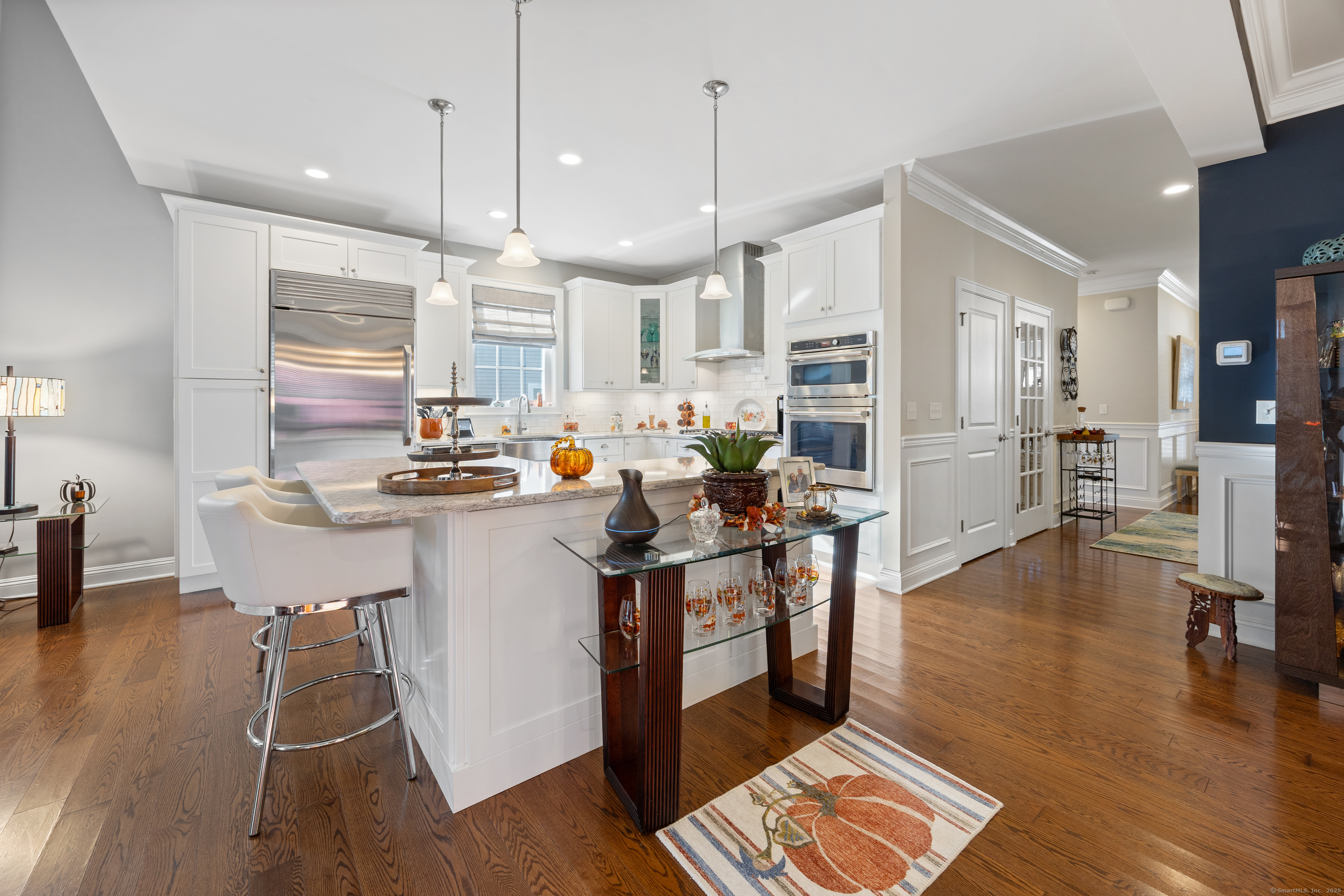 Welcome to 81 Fieldstone Lane! This one level Ranch home located in a 55+ Luxury Community of Chatfield Farms. These homes are rarely available. This Meticulously kept home offers 6 rooms, 2 bdms & 2 full baths. Walk through the front door and immediately feel welcomed by the large foyer that leads to the Gorgeous Kitchen w/White Quartz counters, tiled backsplash, Large Island, SS Appls including a 5-burner gas cooktop & wall oven with custom hood, a pantry and recessed lighting. The Kitchen opens to the Dining Rm and Family Rm offering a floor to ceiling Stone Gas Fireplace. There are Wide Plank Hardwood Flrs & Crown Molding throughout the main level. The French doors lead to the 1st floor office with custom cabinetry and built ins. The Primary Bedroom features a large walk-in closet, a full-on suite bathroom with double sinks, quartz counters and a walk-in tiled shower. Down the hall is the 2nd bedroom and 2nd Full Bath. The laundry room is located on the main level. Off the back is a Maintenance Free Trex Deck for your outdoor Enjoyment! The Lower level has been partially finished offering an addl 700 sq ft to your living area and tons of storage. The home's additional features include a 2 Car Attached Garage, a Generator & an Irrigation System. This Community offers a Clubhouse, Inground Heated Pool, Health Club w/Spa, Pickle Ball Courts, Library, Nature Trails & so much more. Don't miss this rare opportunity to make this Stunning unit in Chatfield Farms your New Home!