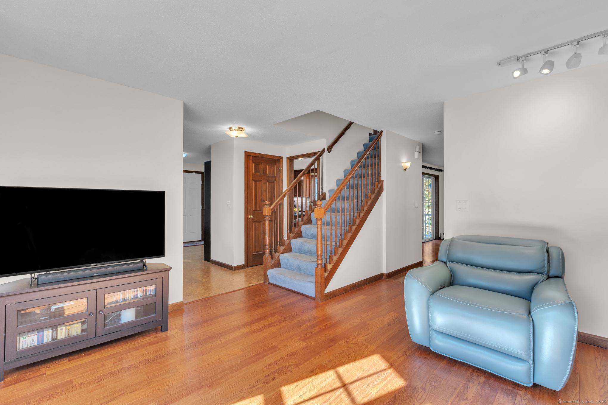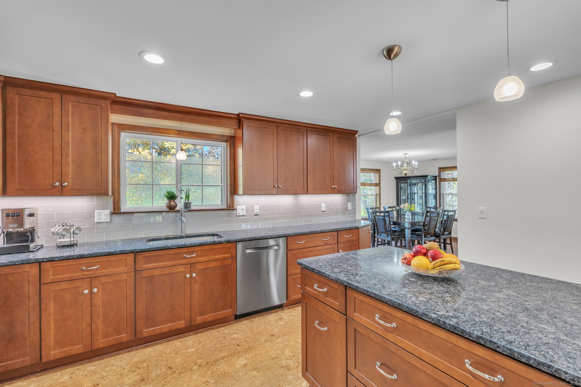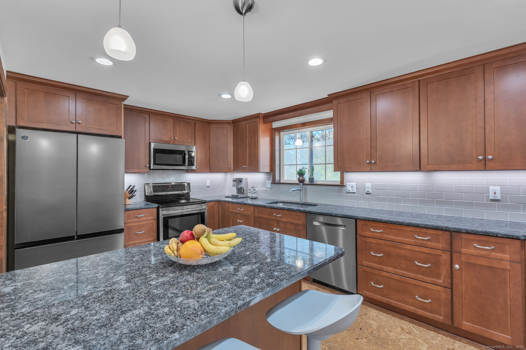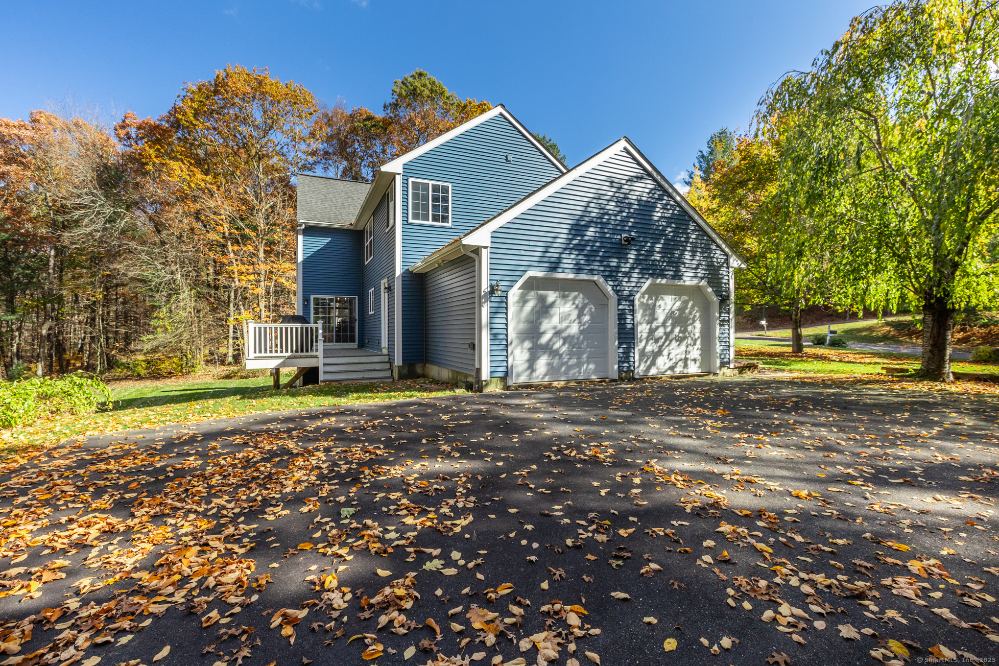 Nicely-Maintained 2024 sq. ft. Colonial located in quiet neighborhood. Situated on 1.49 acres, this lovely home offers a front paver wall and walkway that leads to an inviting front porch with an atrium window front entrance. The open-design front foyer leads to a front facing living room that includes an engineered hardwood floor and a large bay window delivering an abundance of morning light. There is an off-foyer front facing room that could act as either an Office or Mudroom that has similar light characteristics as well as garage access. The remodeled kitchen includes a center island breakfast bar, stainless appliances, elegant cabinetry, accent & recessed lighting, granite counters, and a tiled backsplash. The main level also includes a rear facing dining room / family room. It has hardwood floors and a slider for the rear composite deck. The upper level includes a primary bedroom with cathedral ceiling, walk-in closet and a private tiled floor full bath with dual sinks and jetted tub. The upper level also includes a cathedral ceiling Palladian window bedroom along with a third bedroom. Both rooms share a dual sink jack-and-jill full bathroom. The LL includes a large, finished space with walkout perfect for working out or as an entertainment space. The grounds include an elevated composite deck and a private backyard. Upgrades include new siding (2024), water system (2023), Ductless units for A/C and heat (2023), roof and gutters (2019) and so much more!