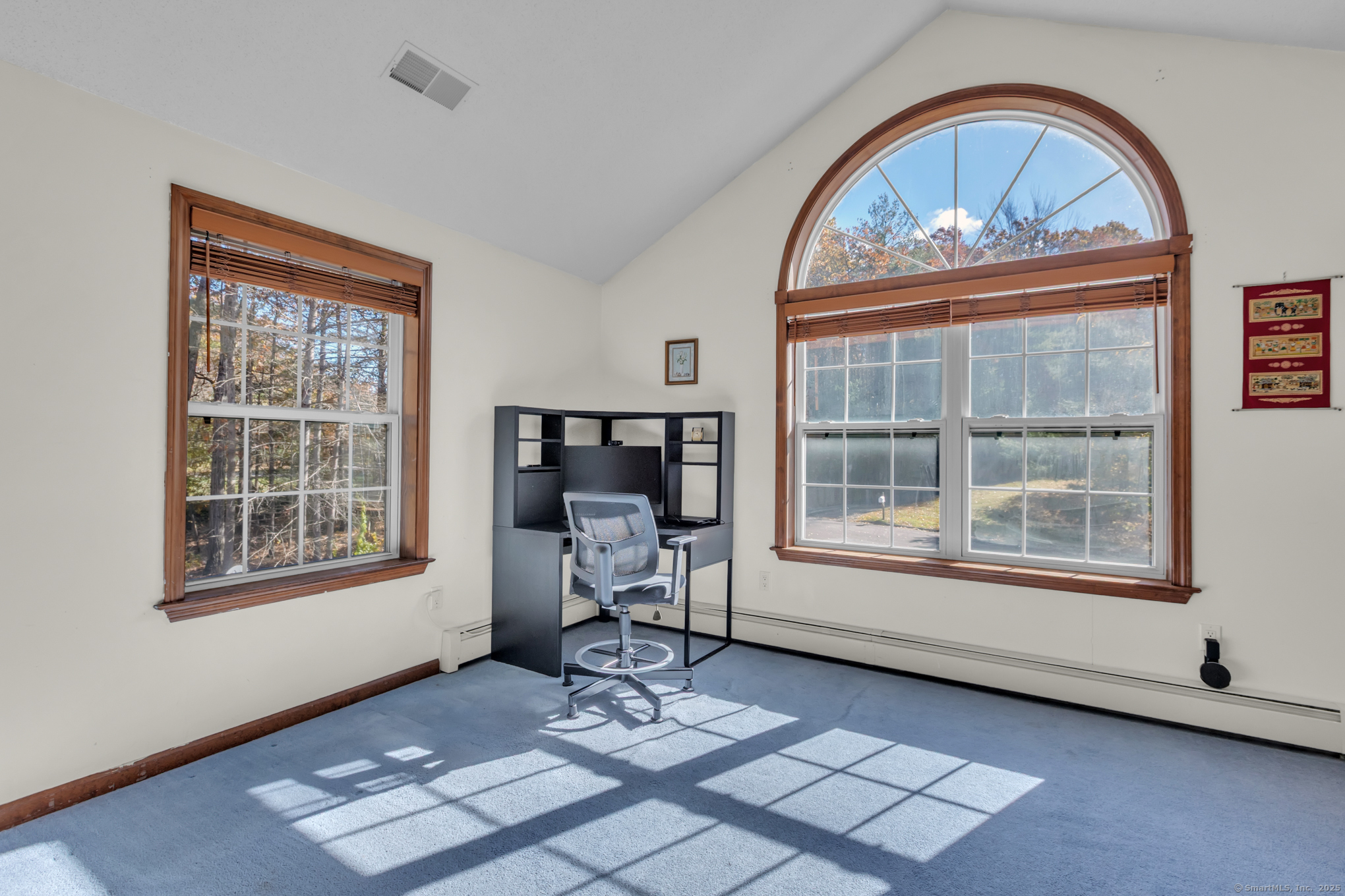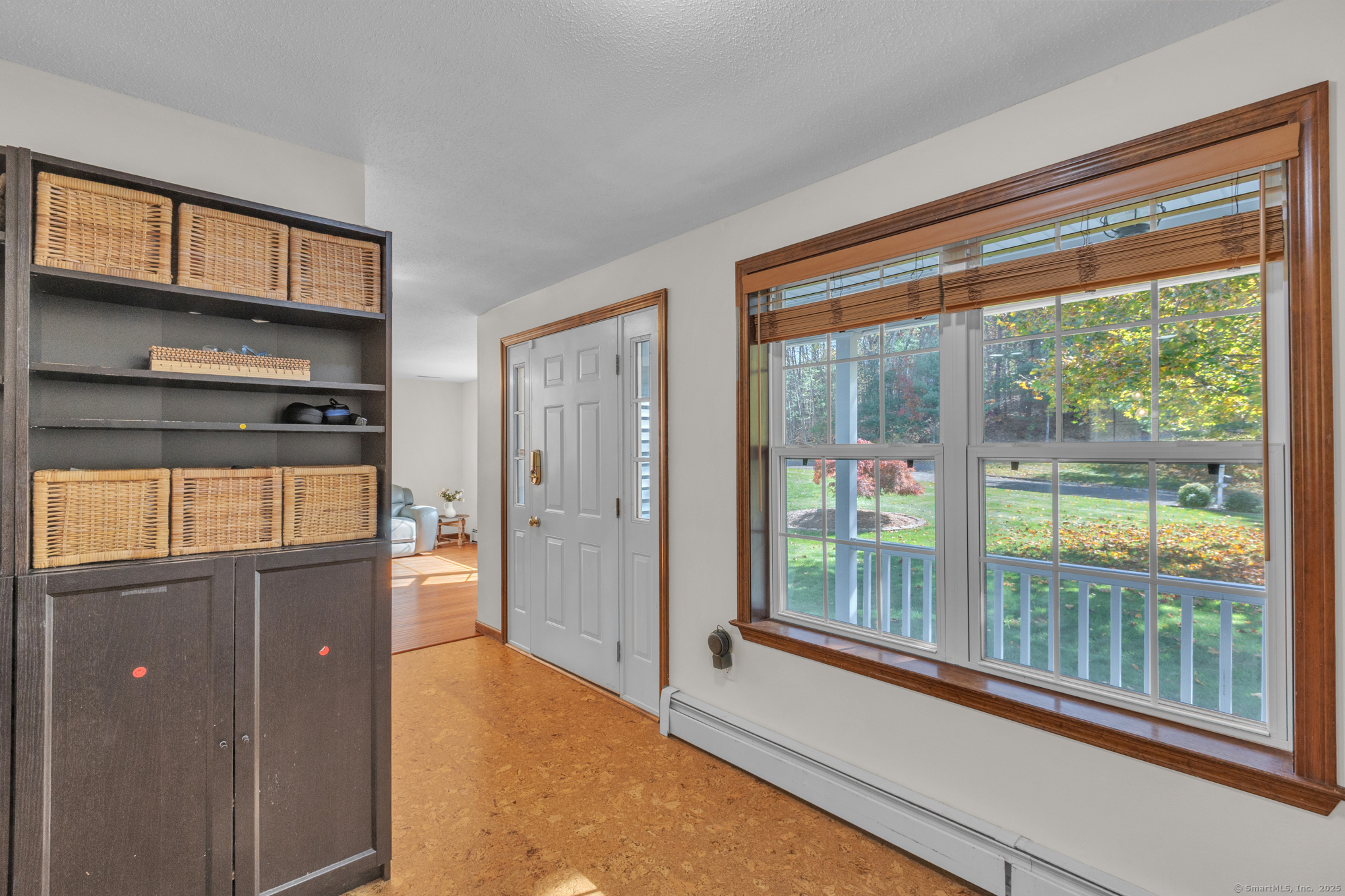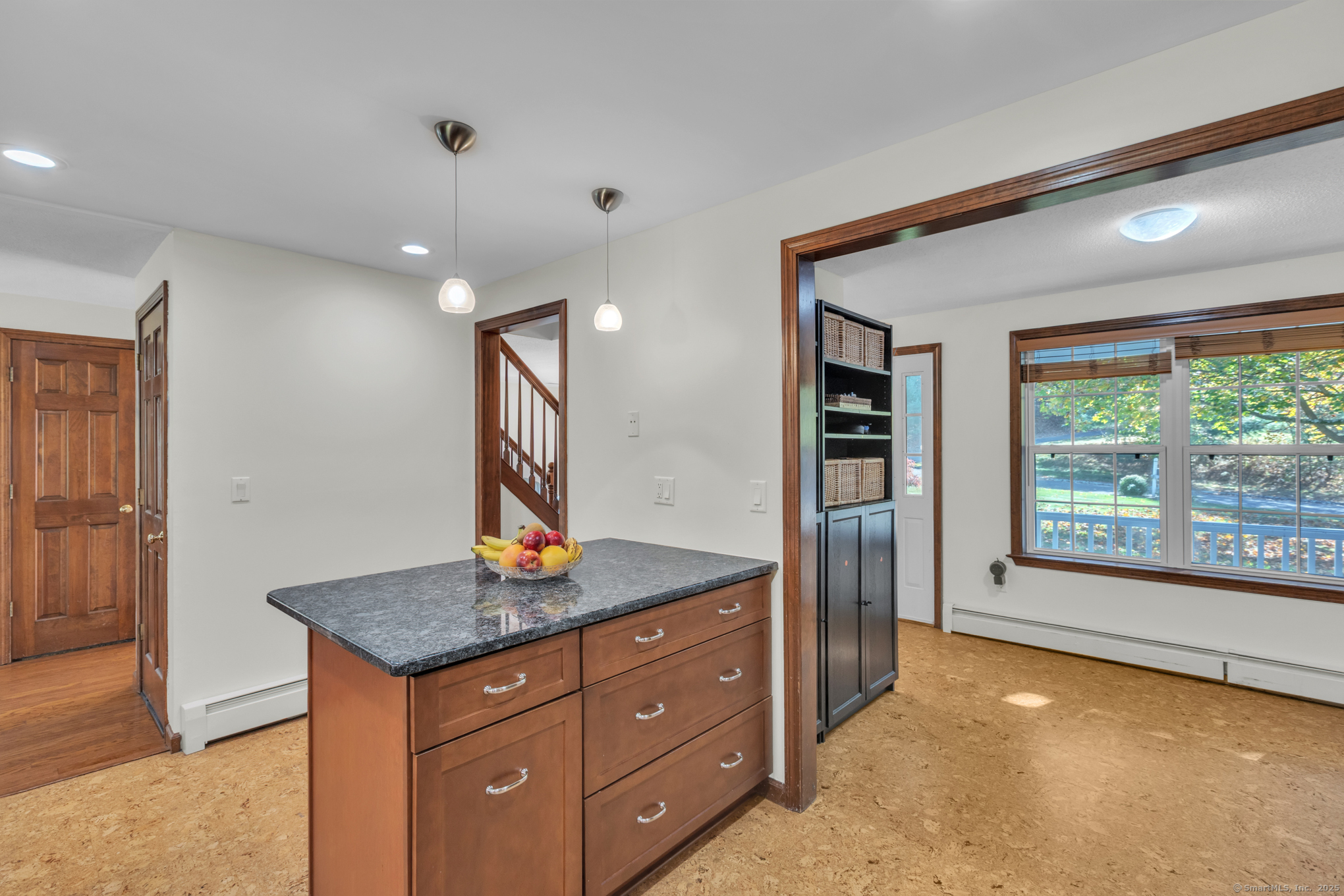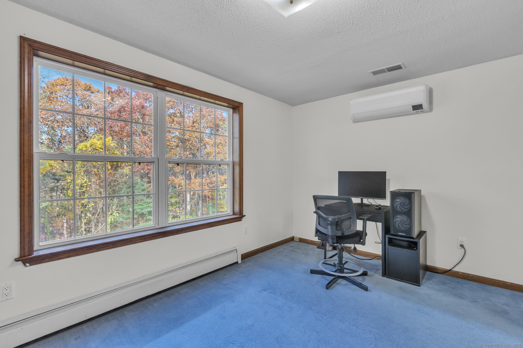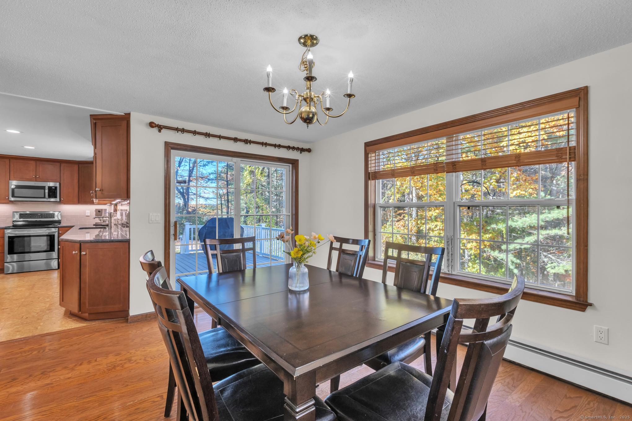 Nicely-Maintained 2024 sq. ft. Colonial located in quiet neighborhood. Situated on 1.49 acres, this lovely home offers a front paver wall and walkway that leads to an inviting front porch with an atrium window front entrance. The open-design front foyer leads to a front facing living room that includes an engineered hardwood floor and a large bay window delivering an abundance of morning light. There is an off-foyer front facing room that could act as either an Office or Mudroom that has similar light characteristics as well as garage access. The remodeled kitchen includes a center island breakfast bar, stainless appliances, elegant cabinetry, accent & recessed lighting, granite counters, and a tiled backsplash. The main level also includes a rear facing dining room / family room. It has hardwood floors and a slider for the rear composite deck. The upper level includes a primary bedroom with cathedral ceiling, walk-in closet and a private tiled floor full bath with dual sinks and jetted tub. The upper level also includes a cathedral ceiling Palladian window bedroom along with a third bedroom. Both rooms share a dual sink jack-and-jill full bathroom. The LL includes a large, finished space with walkout perfect for working out or as an entertainment space. The grounds include an elevated composite deck and a private backyard. Upgrades include new siding (2024), water system (2023), Ductless units for A/C and heat (2023), roof and gutters (2019) and so much more!