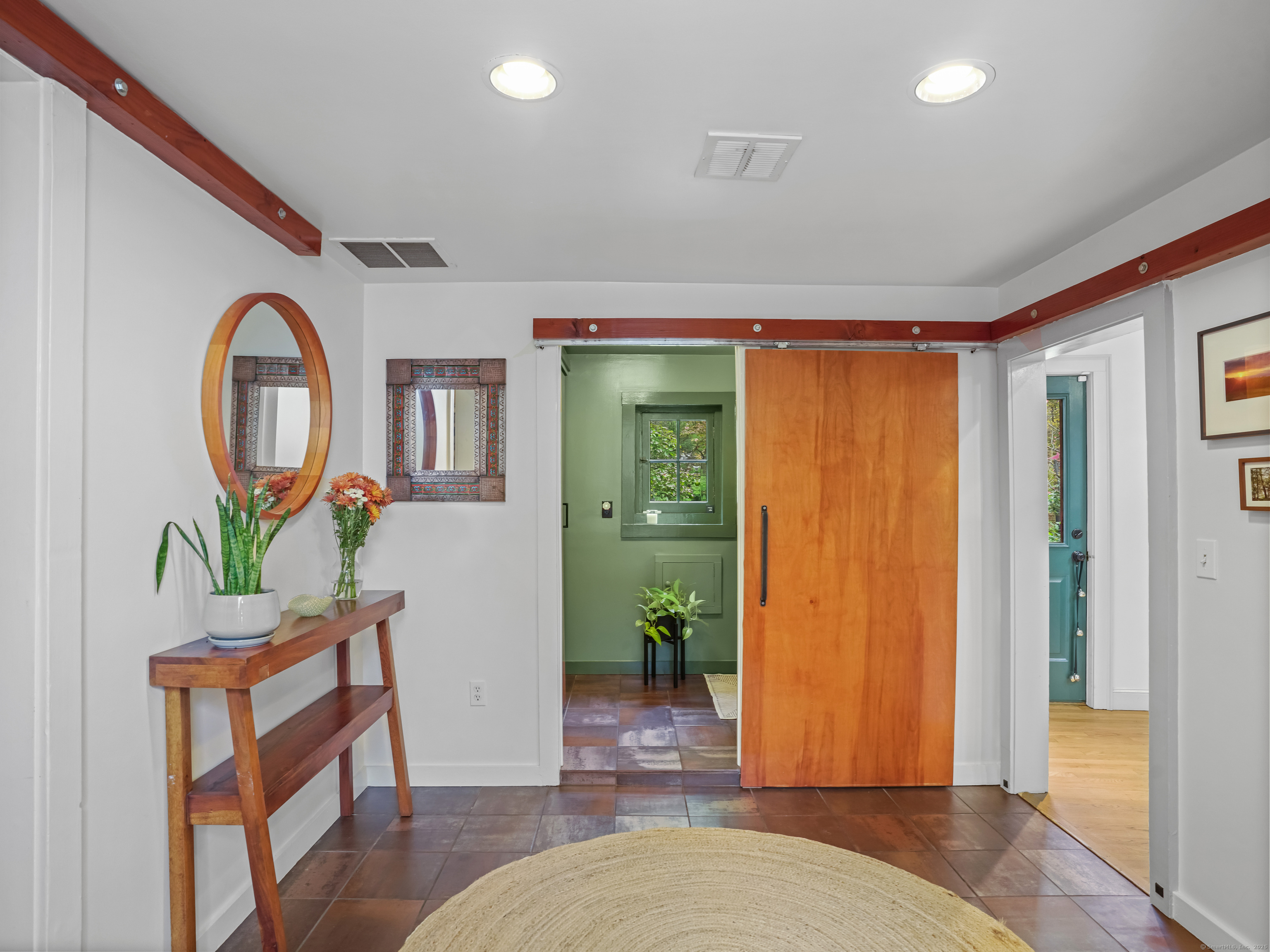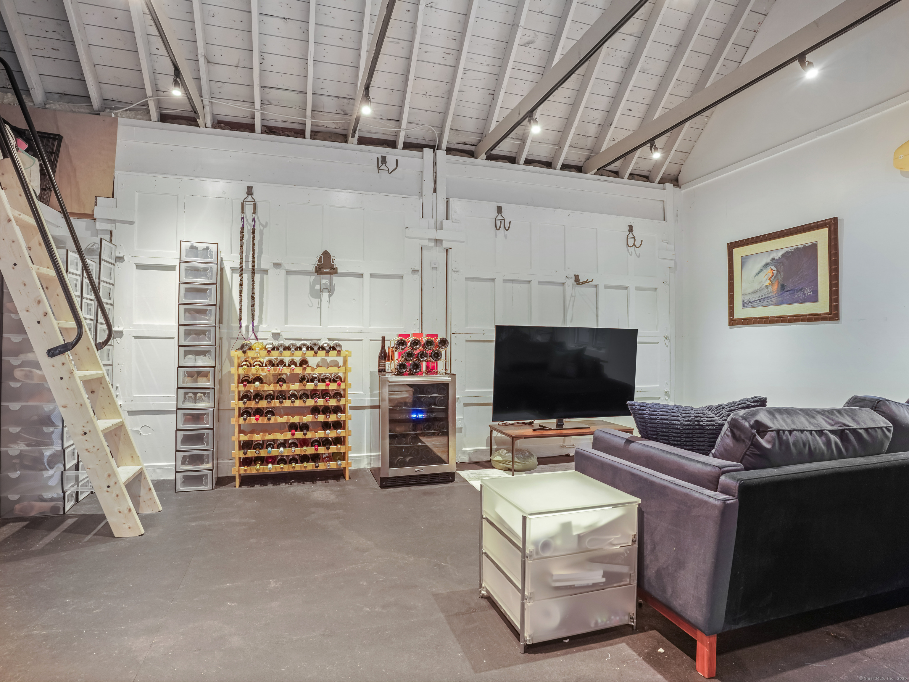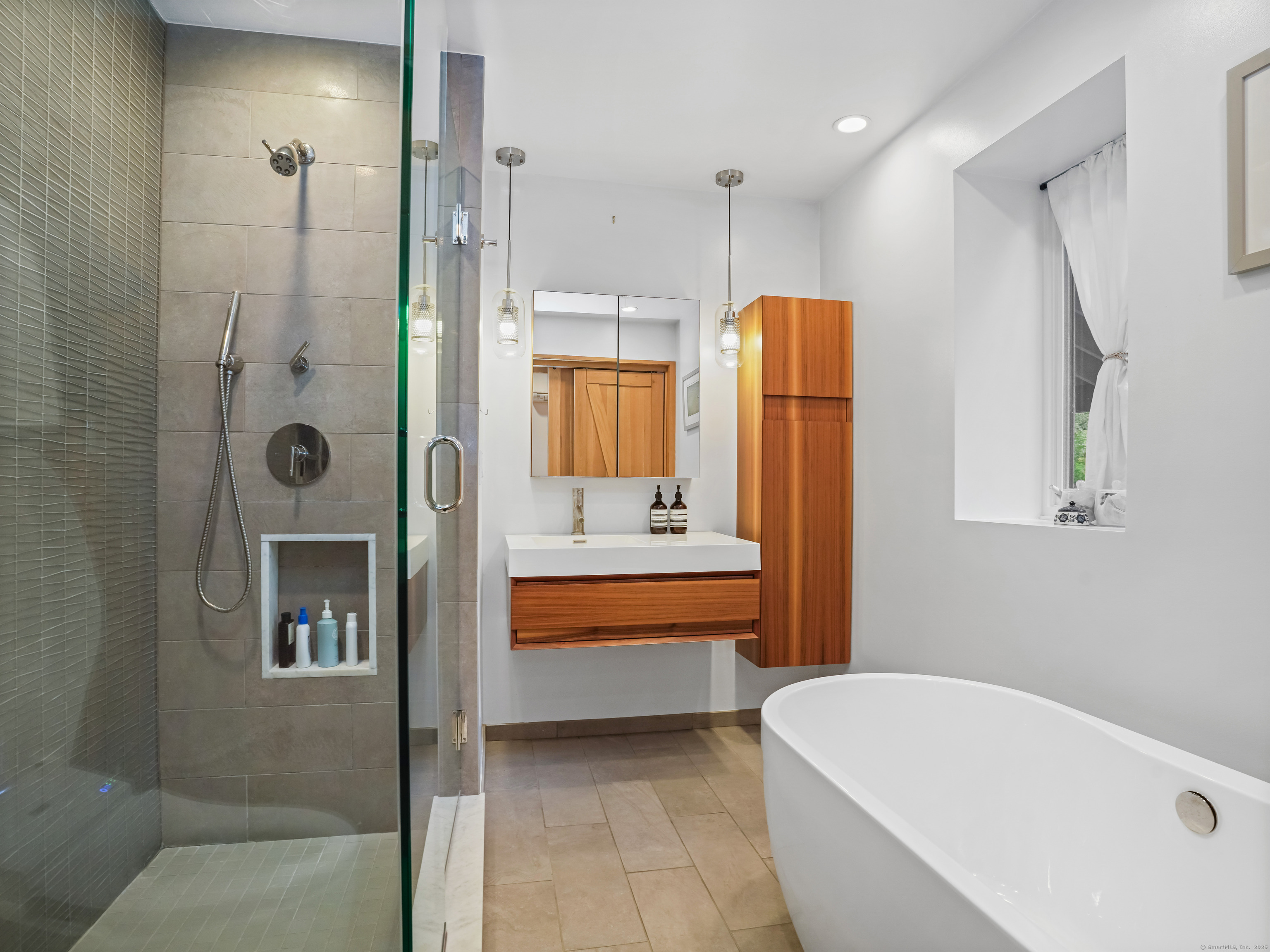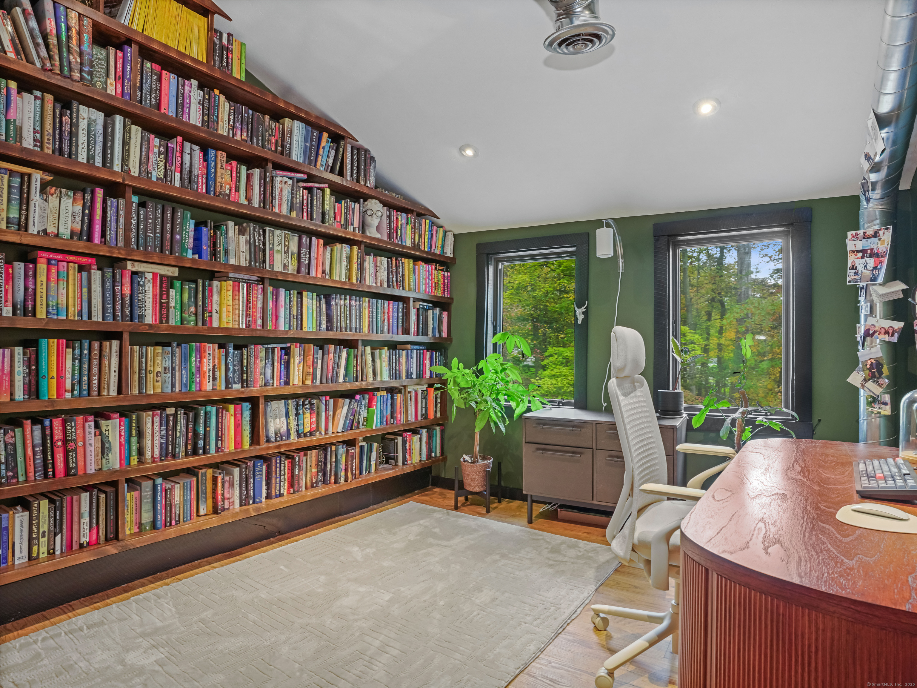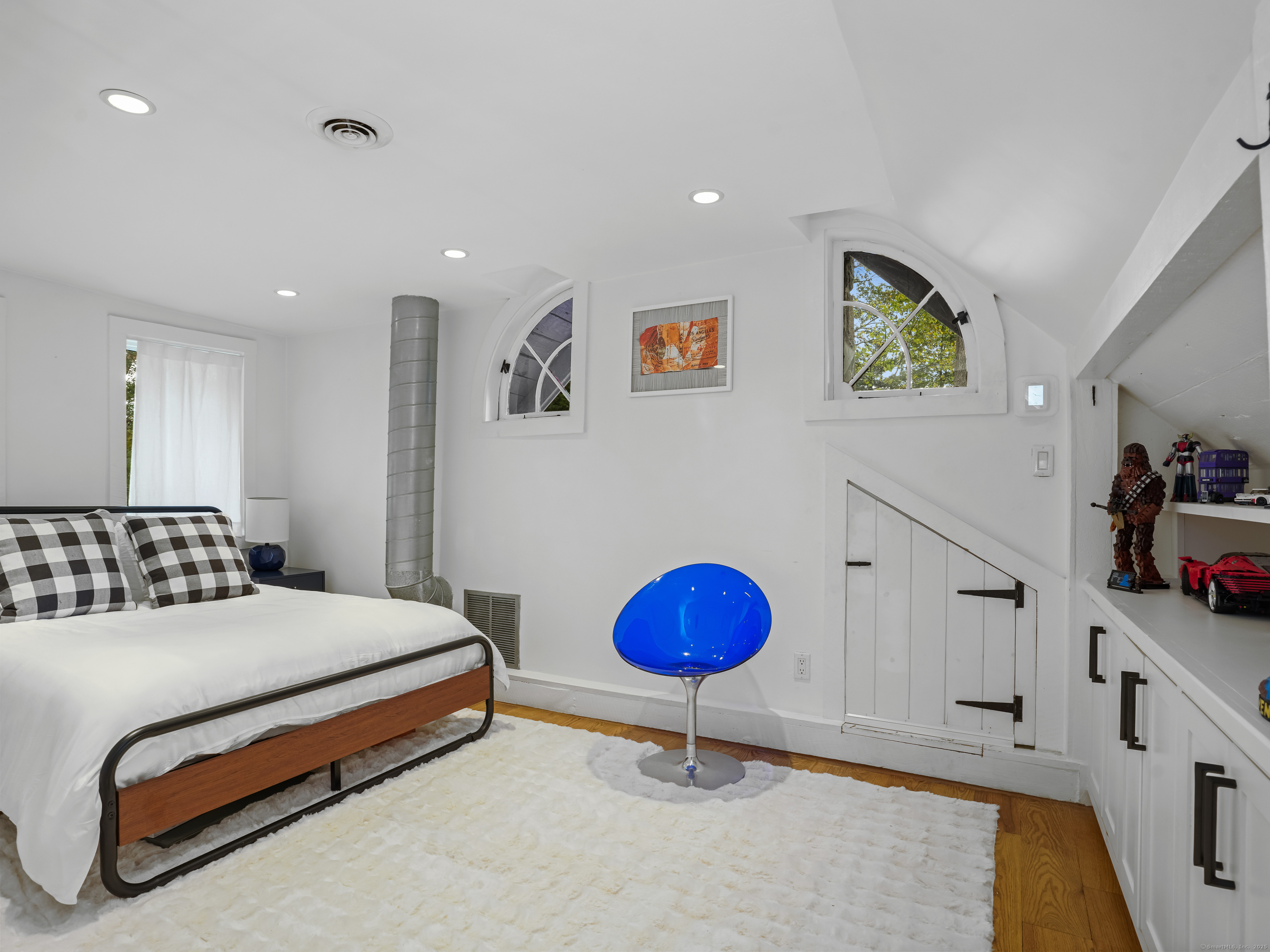 Step into living history at 400 Wire Mill Road, a one-of-a-kind log-cabin retreat once owned by Gutzon Borglum, the famed sculptor of Mount Rushmore. Built in 1877 this 3-bedroom, 2.5-bath home has been meticulously renovated from the ground up while maintaining its authentic log-cabin character blending timeless craftsmanship with modern comfort. The dramatic two-story great room showcases hand-restored logs, exposed beams, and a stunning stone fireplace opening to a covered patio and lush, landscaped grounds. The 2021 kitchen features Brazilian Negresco quartzite countertops, custom cabinetry, and top-tier appliances, while updated baths include European porcelain tile and spa-like finishes. A climate-controlled flex space-formerly a two-car garage-offers flexibility as a studio, gym, recreation room, or potential first-floor primary suite. Set on over an acre and surrounded by mature trees and stone walls, this property feels worlds away, yet it's just minutes from the Merritt Parkway, shopping, and schools. 400 Wire Mill Road is more than a home - it's a piece of Stamford's storied past, thoughtfully reimagined for modern living.
