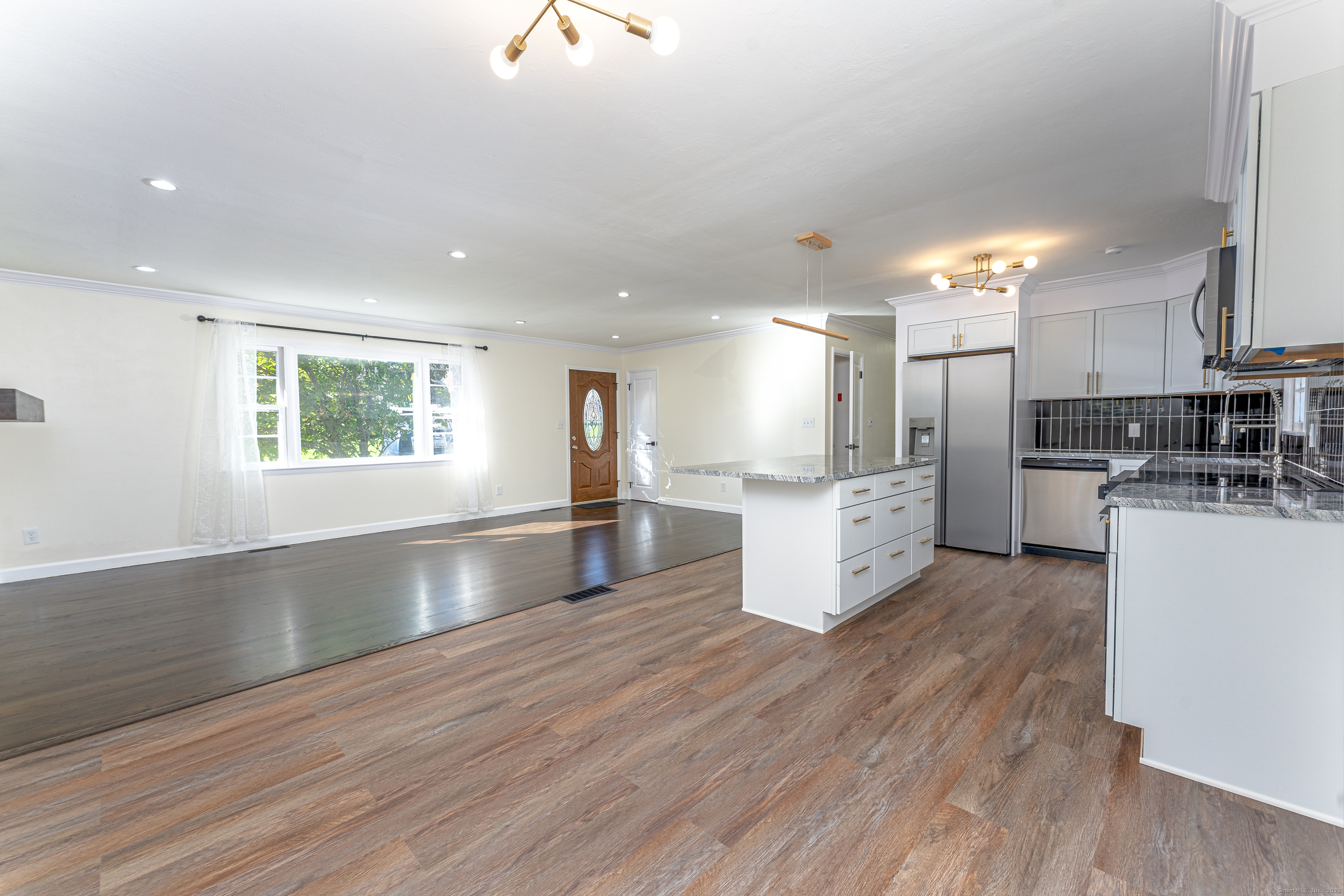 Beautiful single family custom and remodeled ranch home with 1248 SF on the main level. with a semi finished 725 SF basement and possible in-law setup. The house is nestled on a .36 acre level lot in a peaceful neighborhood. Large kitchen with new cabinets, granite countertops and large island and full appliances. Large living room and dining room combo, 3 bedrooms including a half bath off the primary bedroom. Lower level garage. The leased solar panels on roof could offer long-term energy savings. Nothing to do but move in!!!