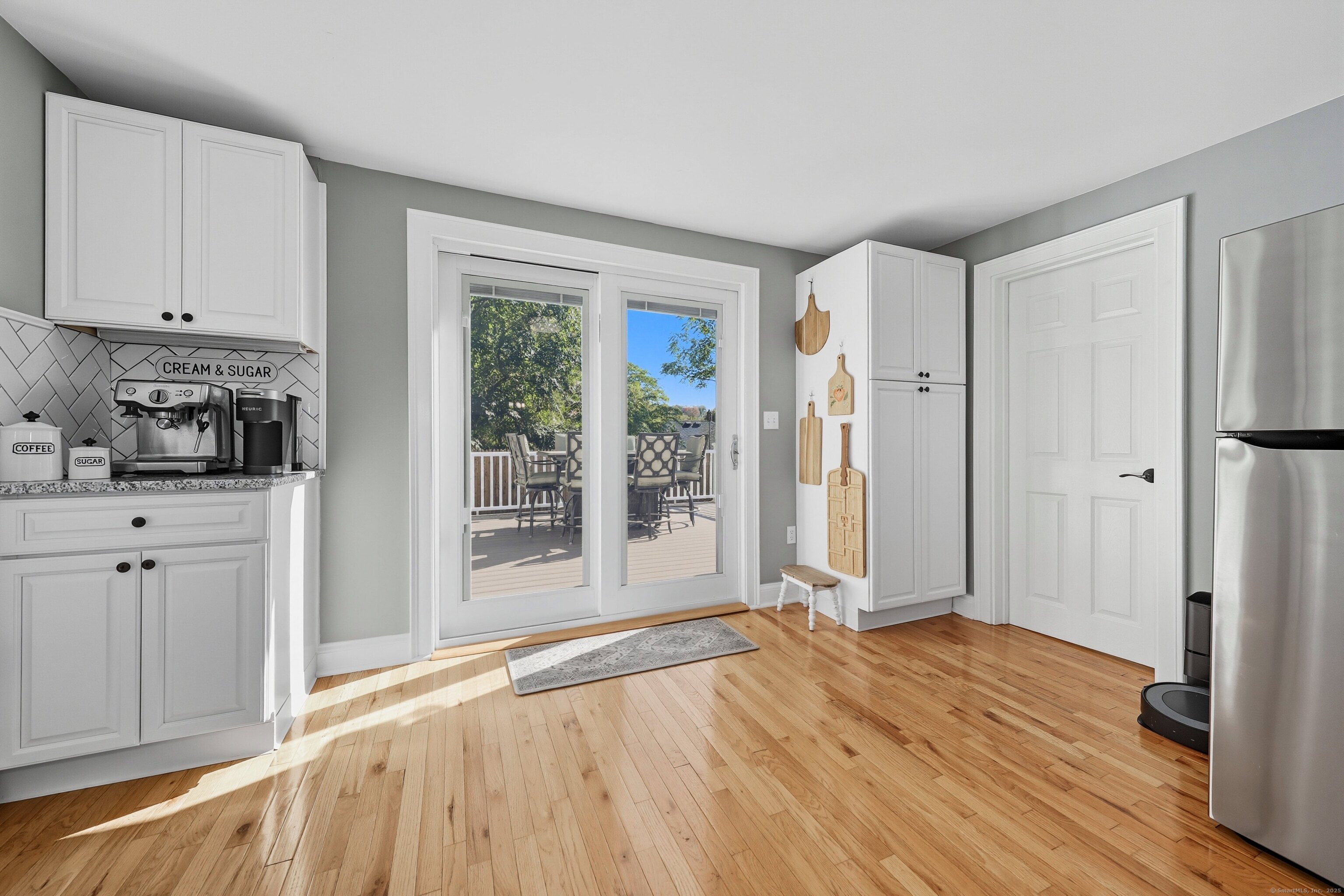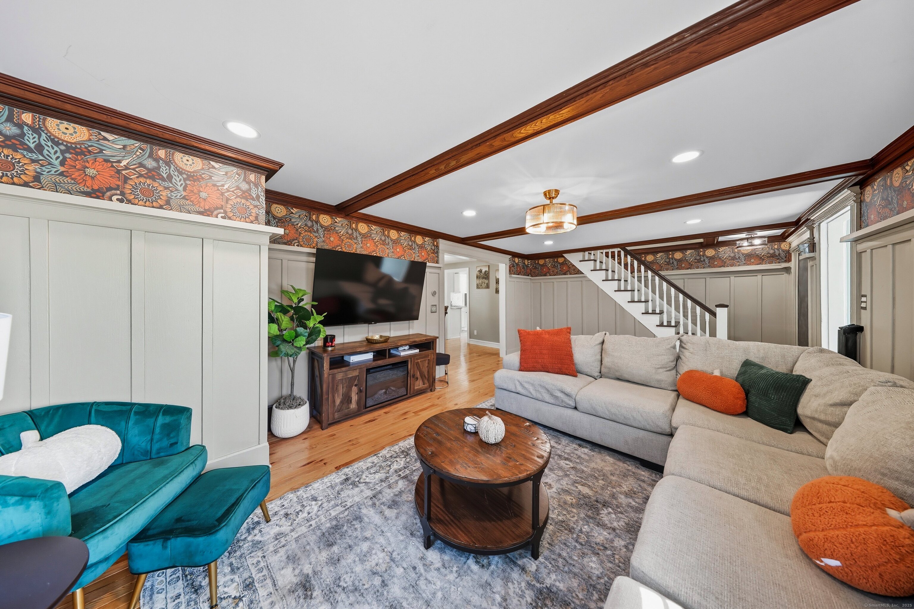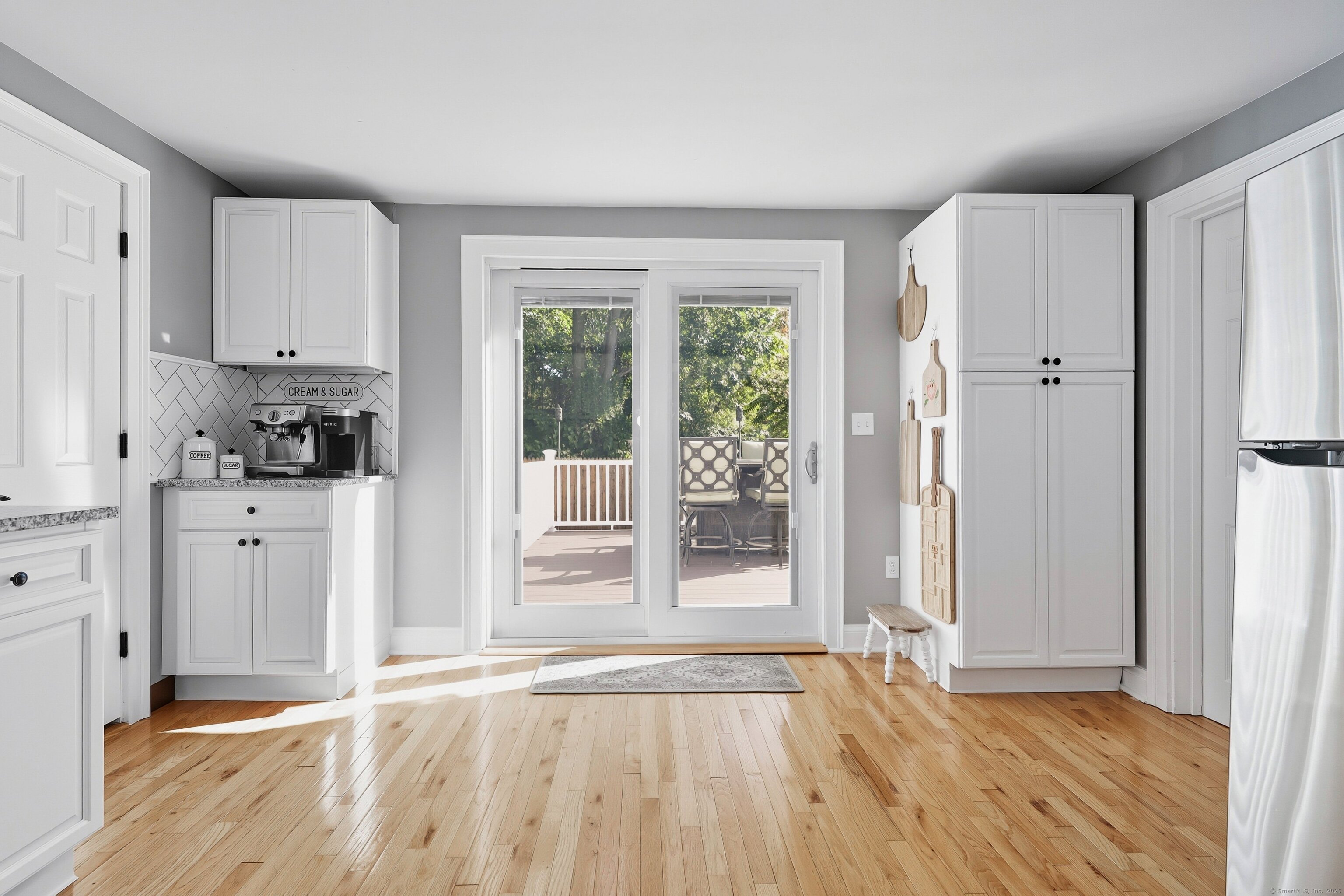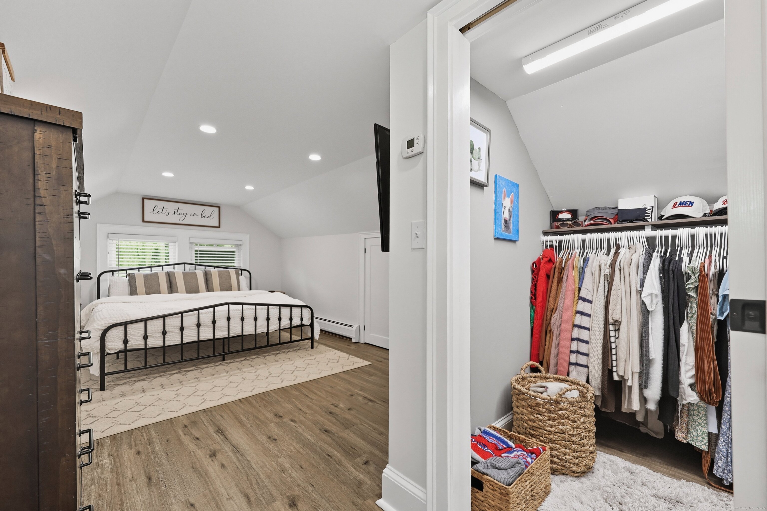Welcome home! Step inside this Beautiful totally remodeled Cape in 2020 with additional updates since, including a new driveway, kitchen slider, deck and walk in closet in primary bedroom. This inviting three-bedroom, two-bathroom home offers comfort, warmth, an abundance of natural light and gorgeous hardwood floors throughout. The bright and sunny kitchen features sliders that lead to a new deck. Off the kitchen, you'll find a generously sized dining room. The cozy living room provides plenty of space for relaxing evenings. The main level also includes two bedrooms, a laundry area, and an enclosed porch/mudroom. Upstairs, you'll find the primary bedroom with a newly added walk-in closet and a full primary bath. The spacious yard offers plenty of room for outdoor enjoyment and entertaining. This home is turnkey and waiting for you! Conveniently located near major highways, shopping, and dining.