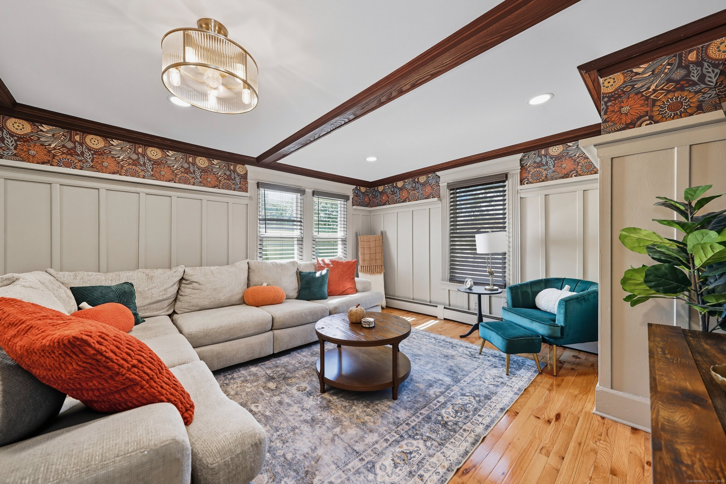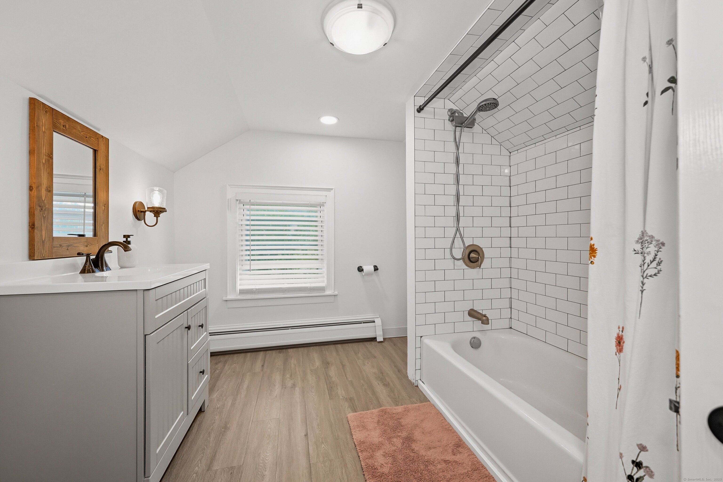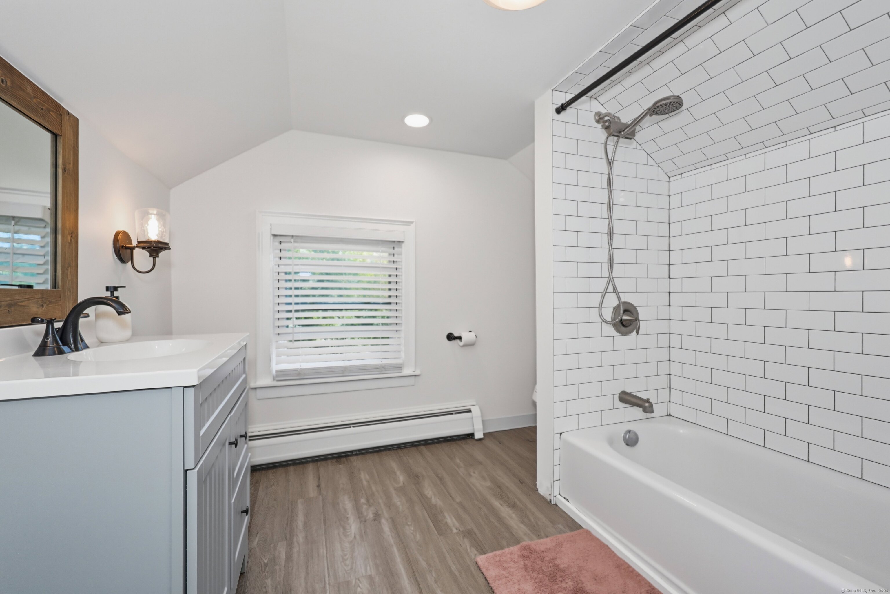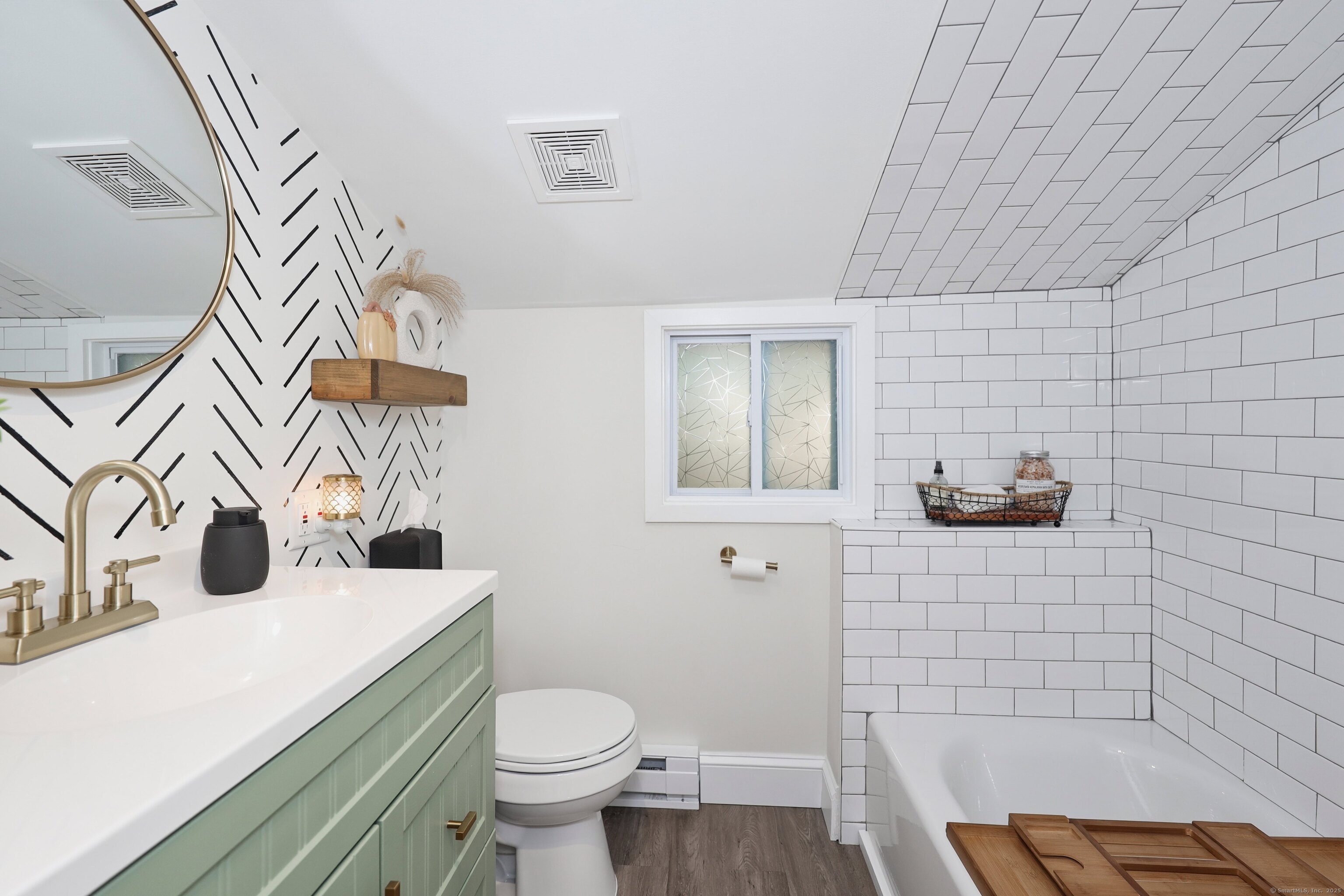 Welcome home! Step inside this Beautiful totally remodeled Cape in 2020 with additional updates since, including a new driveway, kitchen slider, deck and walk in closet in primary bedroom. This inviting three-bedroom, two-bathroom home offers comfort, warmth, an abundance of natural light and gorgeous hardwood floors throughout. The bright and sunny kitchen features sliders that lead to a new deck. Off the kitchen, you'll find a generously sized dining room. The cozy living room provides plenty of space for relaxing evenings. The main level also includes two bedrooms, a laundry area, and an enclosed porch/mudroom. Upstairs, you'll find the primary bedroom with a newly added walk-in closet and a full primary bath. The spacious yard offers plenty of room for outdoor enjoyment and entertaining. This home is turnkey and waiting for you! Conveniently located near major highways, shopping, and dining.