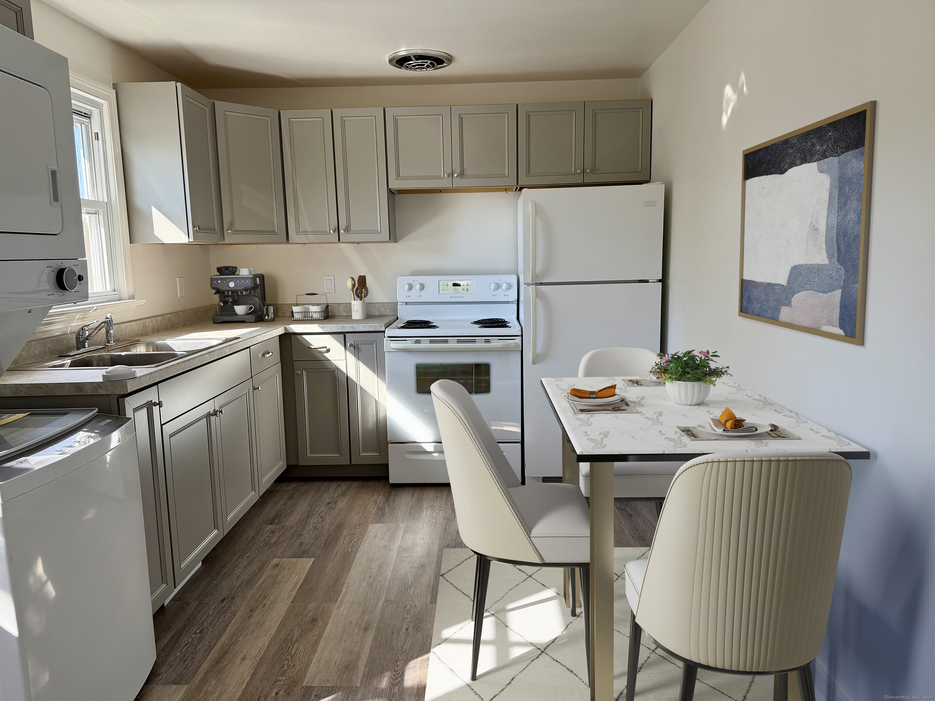 Updated second floor unit in two-family in "easy" East Norwalk with new vinyl flooring throughout, new paint, new eat-in kitchen, new bath vanity, two amazing walk-in closets in primary BR, new washer/dryer in apt. Easily walkable to MetroNorth and public transportation. Large flat yard with an area for a garden. Entrance from front porch or rear exterior stairs. One paved spot for off-street parking. Rent is $2850 per month plus $125 per month for Heat and Hot Water. Tenant pays electric, Internet and Cable. LAWN CARE, TRASH REMOVAL AND SNOW REMOVAL INCLUDED.