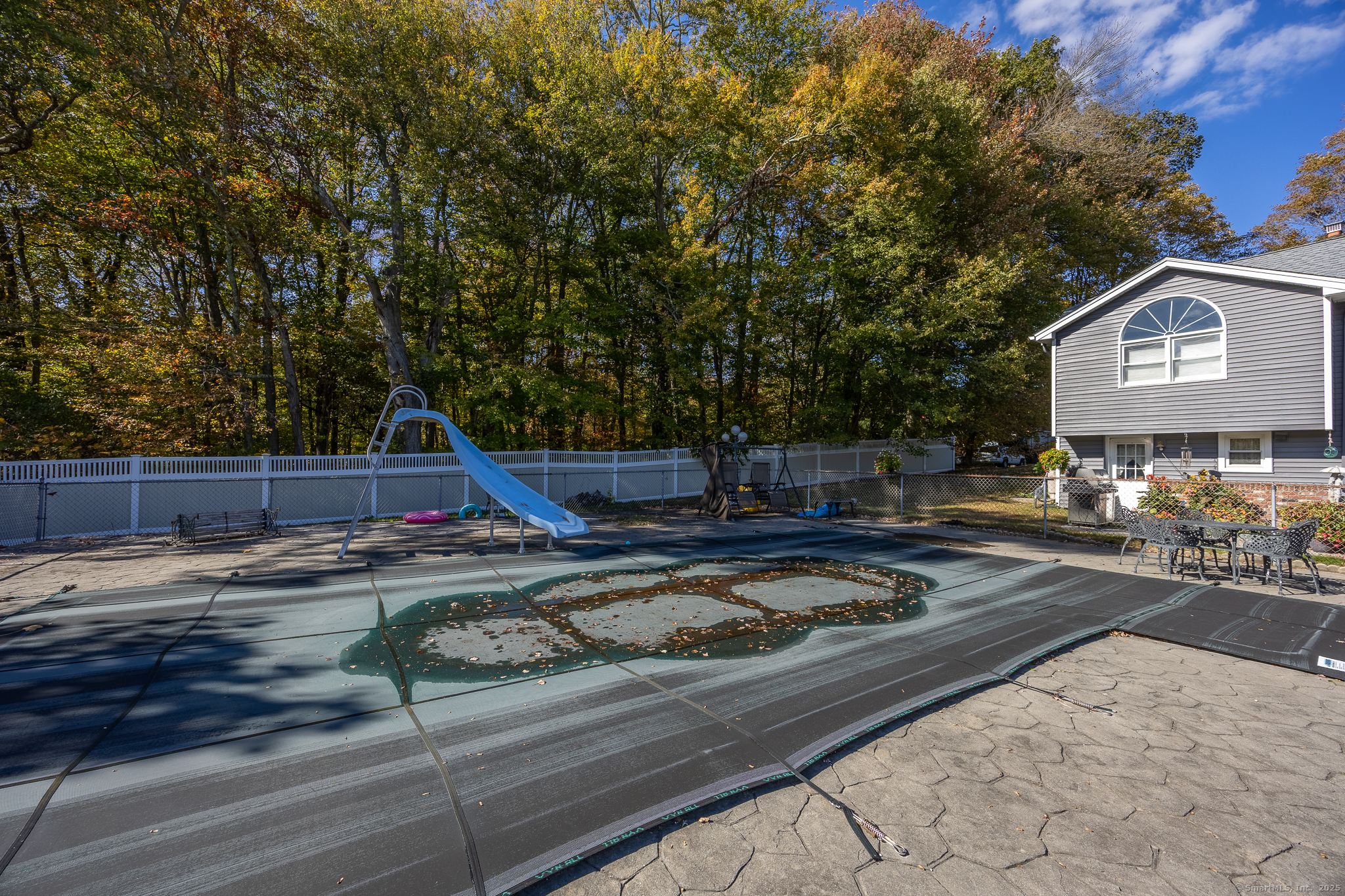 Incredible multi-use property on 4.45 acres, located in the highly sought after town of Cheshire. This property offers a spacious and beautifully maintained 2,118 sq. ft. ranch-style home, offering comfort, functionality, and exceptional spaces for entertaining. This unique property features 3 generously sized bedrooms and 2.5 baths, ideal for families or those who love to host. Step through the inviting foyer into a warm and welcoming interior. The home boasts a large living room complete with a built-in bar and an incredible stone fireplace - the perfect gathering spot for friends and family. The formal dining room offers an elegant setting for dinner parties and holiday meals, while the oversized pantry and dual kitchens provide ample space for cooking, storage, or even multi-generational living. Downstairs, you'll find the second kitchen, a large dining area, another fireplace, additional storage rooms, and plenty of potential for a recreation area, home gym, or workshop. Stay comfortable year-round with central air and enjoy the convenience of a 2-car garage. New roof and siding (2025) add to the pristine condition of this home. Step outside to your private backyard oasis, featuring a stunning inground pool with custom stonework, a slide, and a charming gazebo-perfect for relaxing or entertaining all summer long.