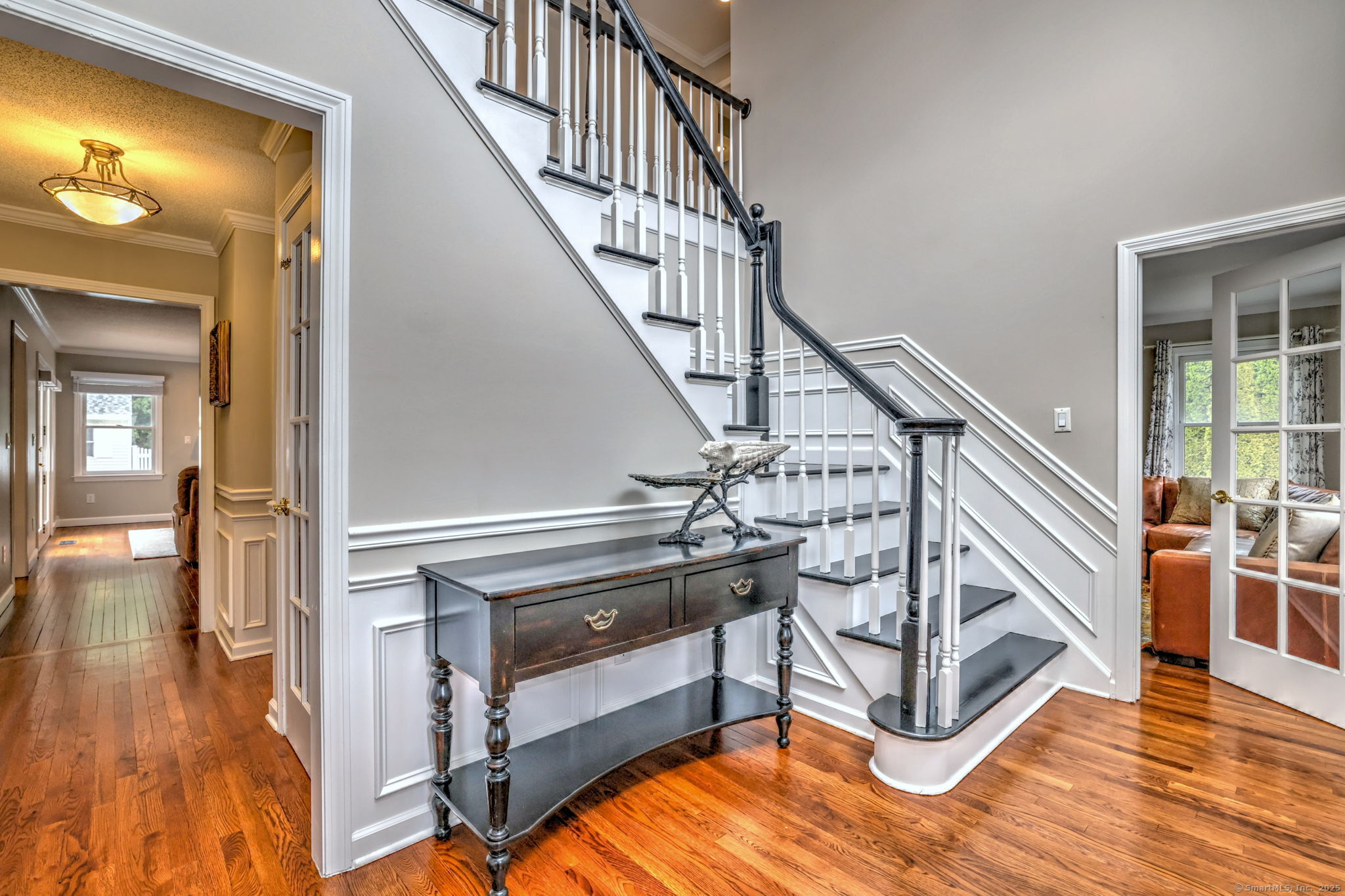 Welcome to your dream home! Stunning and meticulously maintained 4/5-bed, 4.5-bath Grand Colonial boasting nearly 5,000sf living space, blending elegance and function; perfect for entertaining and everyday living. Located on a quiet cul-de-sac in one of North Milford's most sought-after neighborhoods. Impressive two-story foyer with impressive staircase. Formal Living & Dining Rooms ideal for special gatherings. Private den/office with French doors connecting to the living areas. A beautiful chef-inspired kitchen with granite countertops, stainless steel appliances, island, breakfast area and sliders! Spacious family room with gas fireplace and direct access to your resort styled yard- complete with an expansive deck, patio, heated in-ground pool & shed! Convenient mudroom, powder room and laundry room. Gorgeous Hardwood flooring stretches throughout the main level & Upstairs where the Fabulous Primary Suite featuring double entry doors, a romantic gas fireplace, luxurious bath and 2 walk-in closets. 3 additional bedrooms, one with ensuite to the full hall bath. A spectacular bonus/bedroom suite above the 3-car garage is complete with built-ins, bar sink & full bath- perfect for guests, au pair, or studio. A lovely lower level retreat has a versatile finished family/rec room, gym area, music room, full bath, and wet bar/kitchenette! Great potential as an in-law suite, theater room & entertainment zone. New roof! Close to train, I-95, shopping, beaches, downtown & MORE! HURRY