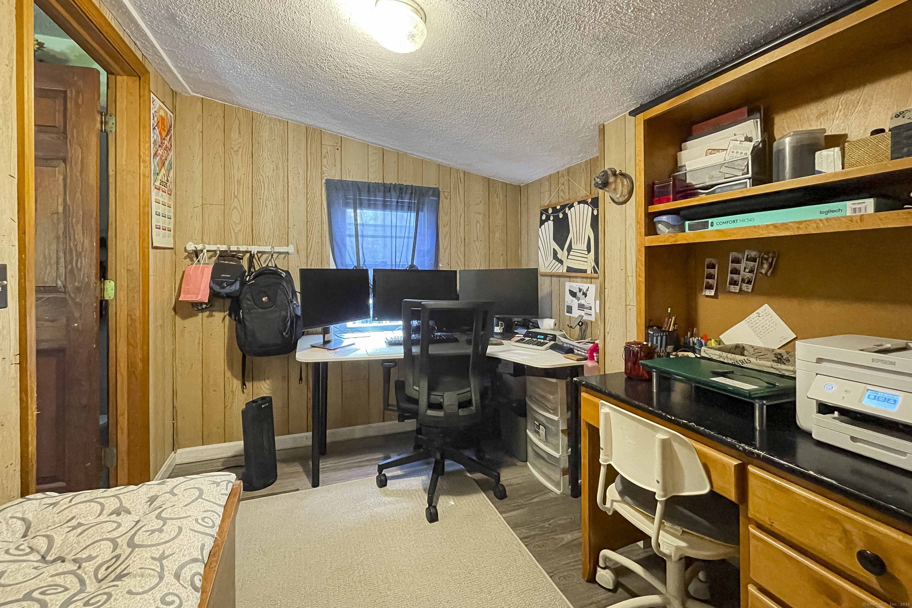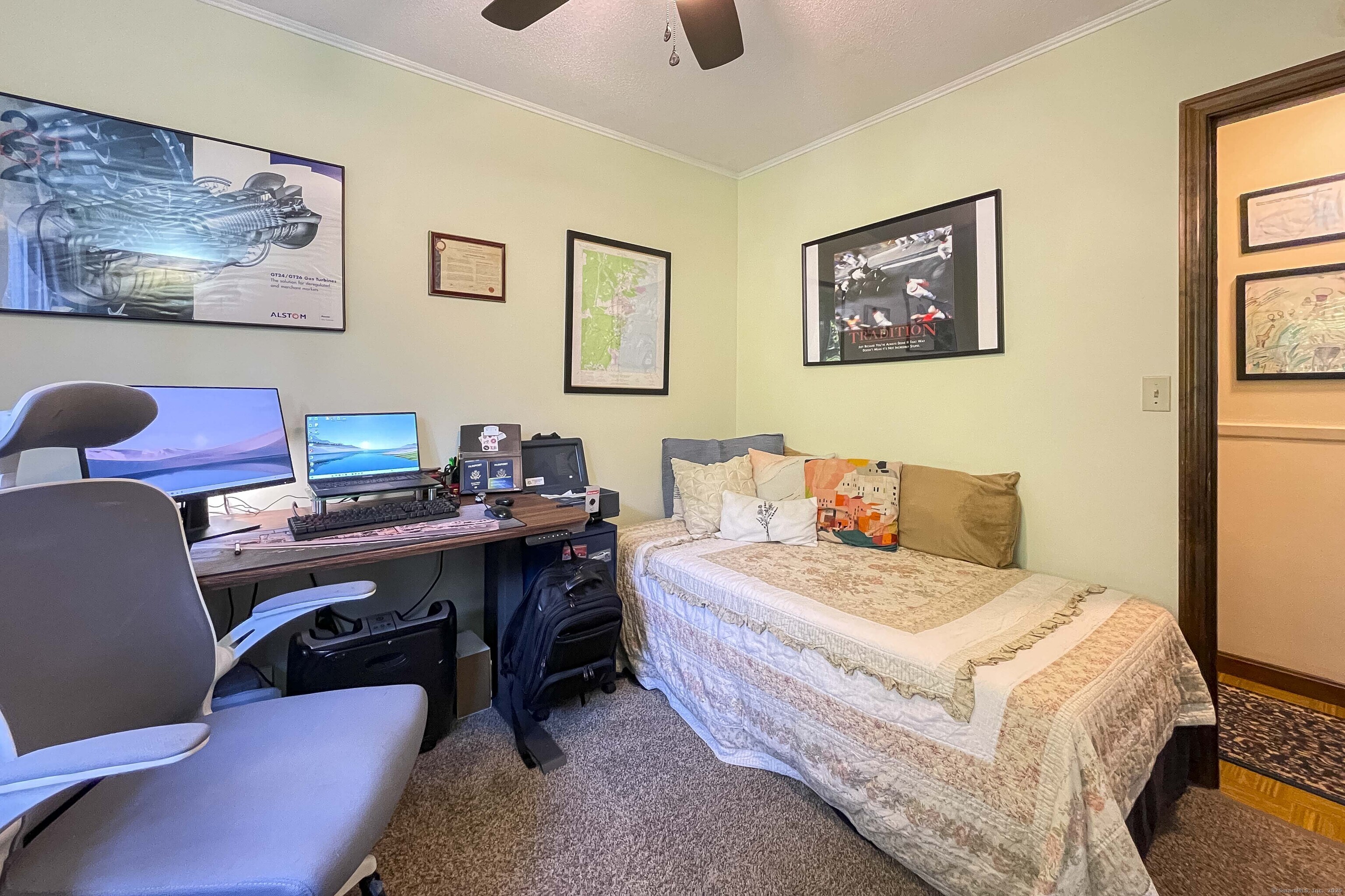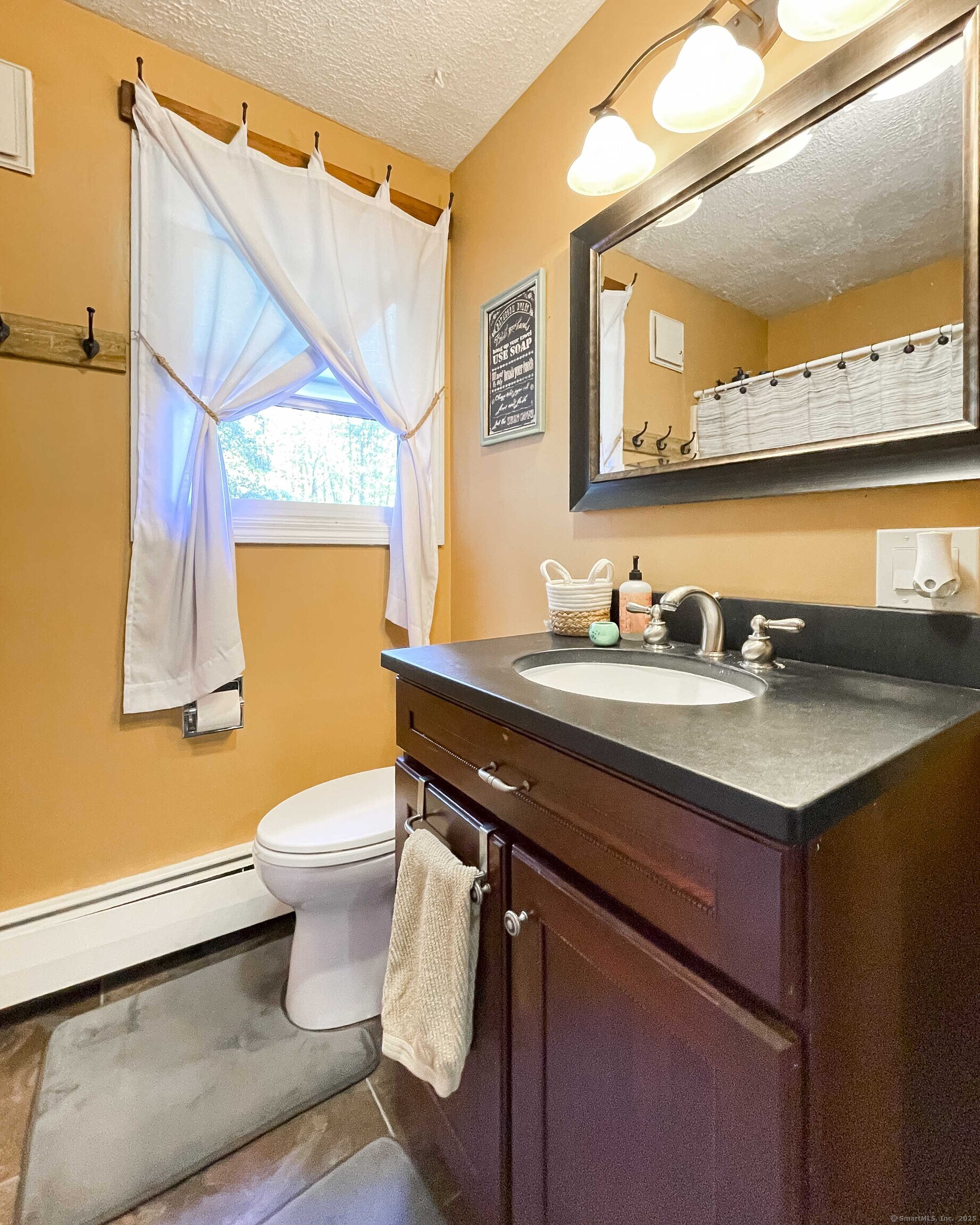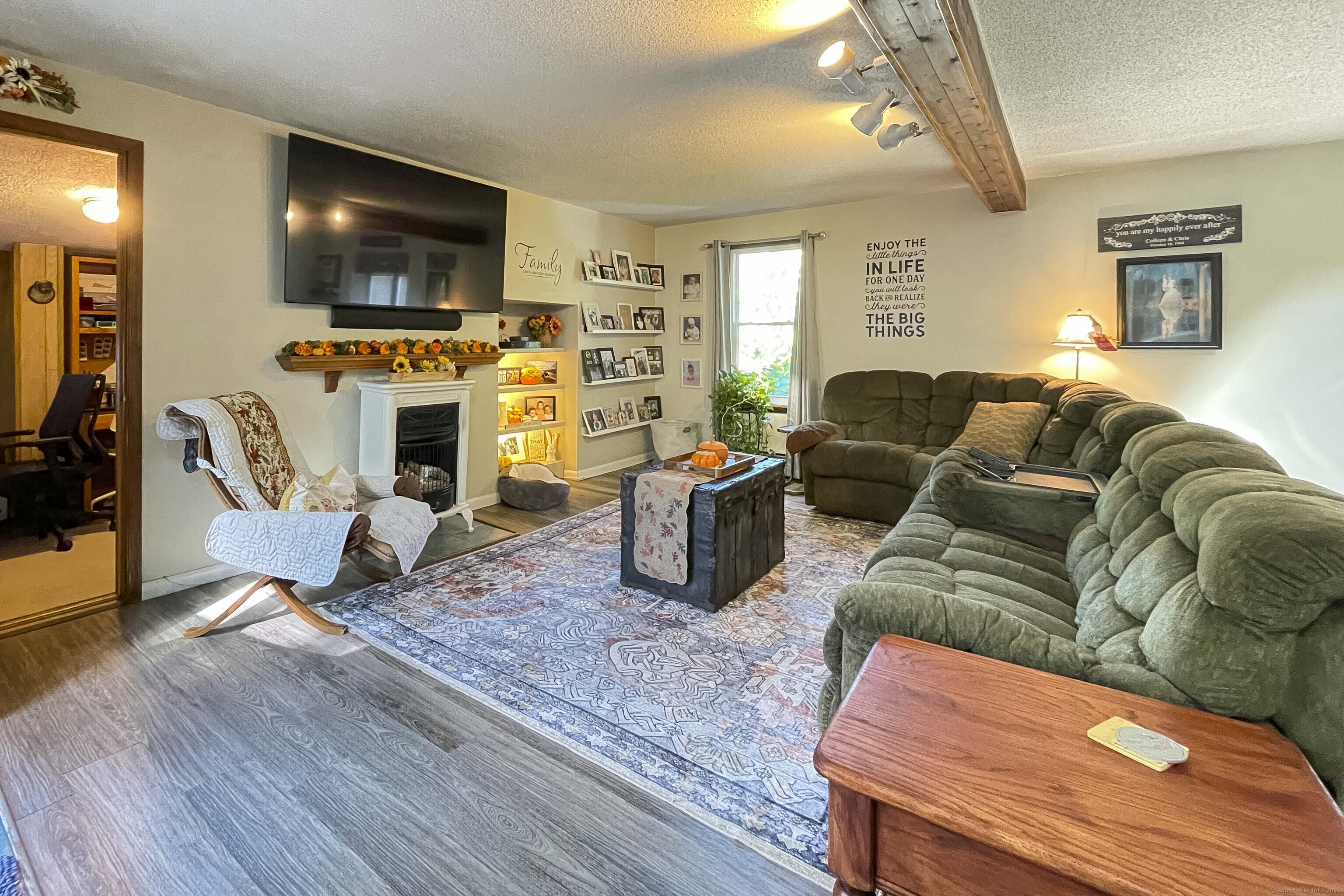 Pretty ranch home offers all the charm of a cozy cottage with the space you'll need for comfortable living. Set on nearly 3/4 acre private lot, this home features a partially finished walk-out lower level, efficient natural-gas heating, and two car garage. Step into the open main living space with dining area featuring a vaulted ceiling, skylights, toasty gas-log stove, and built-in shelving. The kitchen with stainless steel appliances and newly tiled floor leads to the three main-level bedrooms, including a primary suite with full bath and two closets. A mudroom/office area leads to the lower level consisting of a spacious den with another cozy gas-log stove, a separate room being used as a bedroom, and laundry room. Step outside to enjoy the lovely private yard with plenty of room for gardening, play, or simply relaxing in nature. Only one mile from Quinnipiac University, Sleeping Giant Park and the Farmington Canal Trail! Welcome Home!