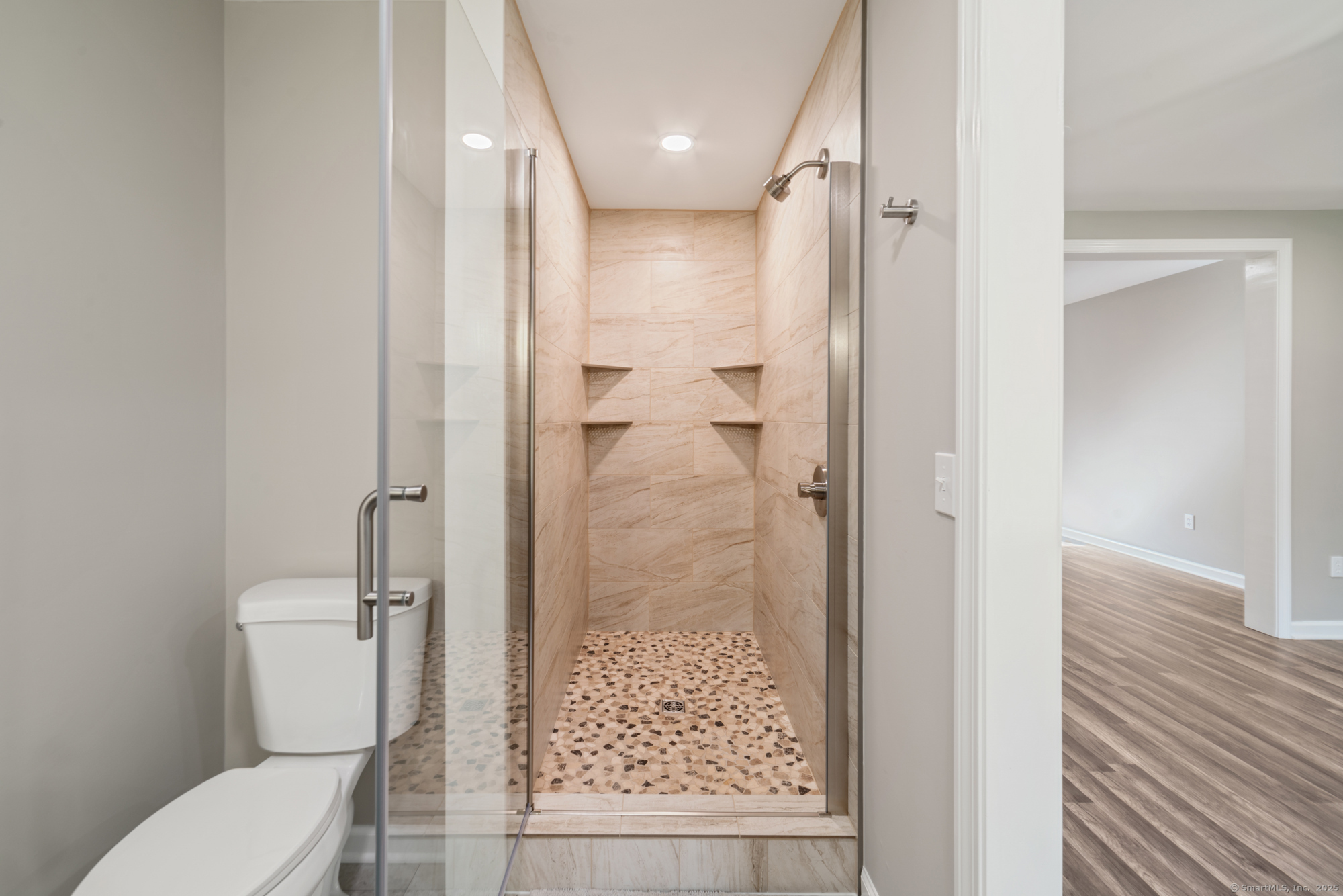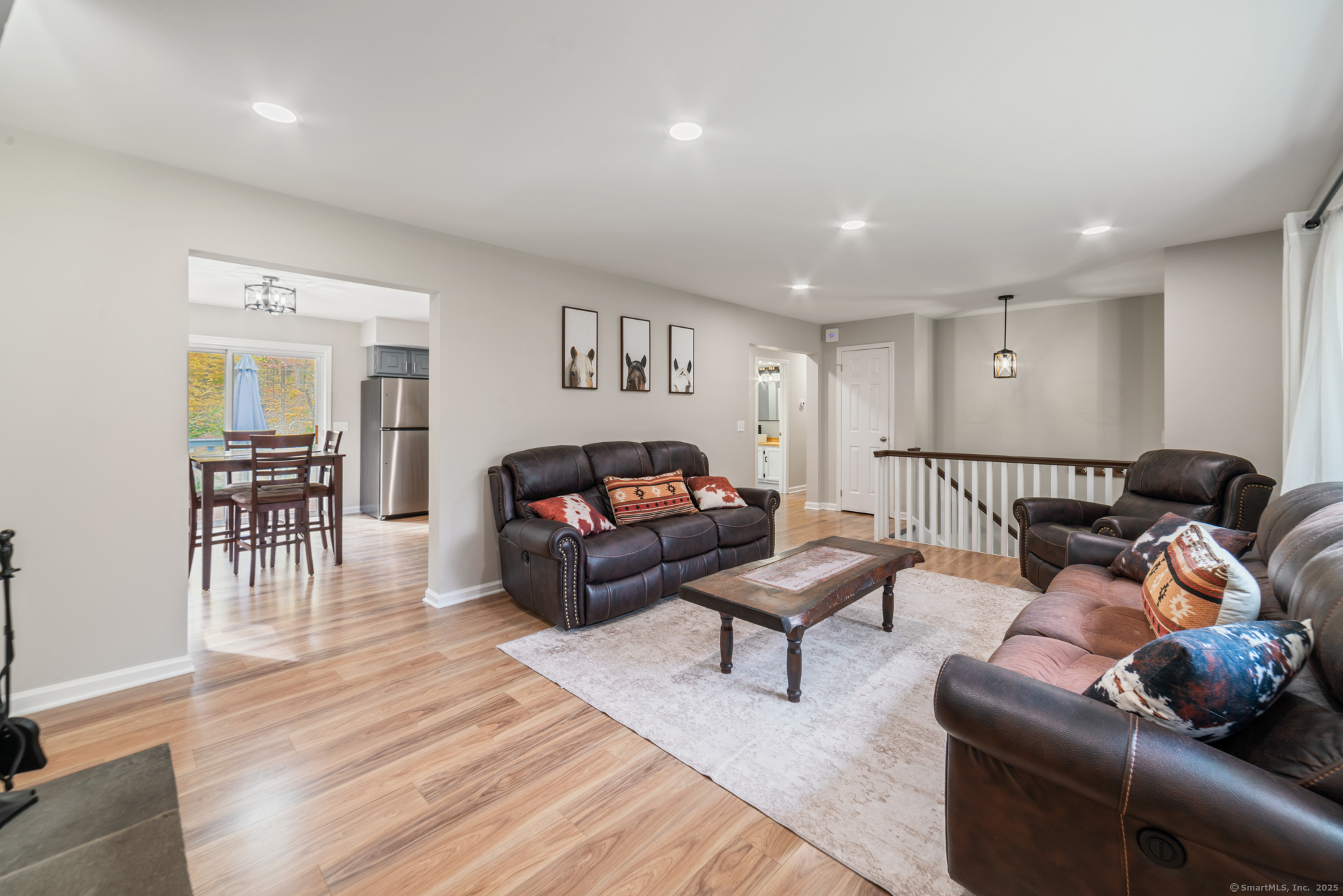 COMPLETELY REMODELED OVERSIZED RAISED RANCH on nearly 4 PRIVATE ACRES in Southbury - the perfect blend of modern comfort and peaceful country living. Step inside to find a fully refreshed interior featuring new luxury vinyl plank flooring, recessed lighting, and freshly painted walls that create a bright, welcoming atmosphere. Each of the three full bathrooms has been beautifully remodeled, including a stunning primary suite with a fully tiled walk-in shower. Every detail has been thoughtfully updated - from new outlets and select dimmer switches to upgraded fixtures that elevate every room. The finished lower level expands your living space with options for a home office, gym, playroom, or guest suite. A spacious two-car garage offers plenty of additional storage for tools and seasonal gear. Outside, relax and unwind on your private deck overlooking nearly four wooded acres-complete with berry bushes, flowering gardens, a pond, and meandering walking trails. The setting offers remarkable privacy while being just minutes from I-84, Route 67, and Pomperaug High School. Major updates ensure true peace of mind: a new roof in 2024 (with transferable warranty), new siding in 2017, new well pump in 2022, and a whole a house generator! Move right in and enjoy a home that has been completely reimagined with quality, care, and attention to detail. Experience the perfect mix of serene country living and convenient access to town amenities - your beautifully renovated Southbury retreat