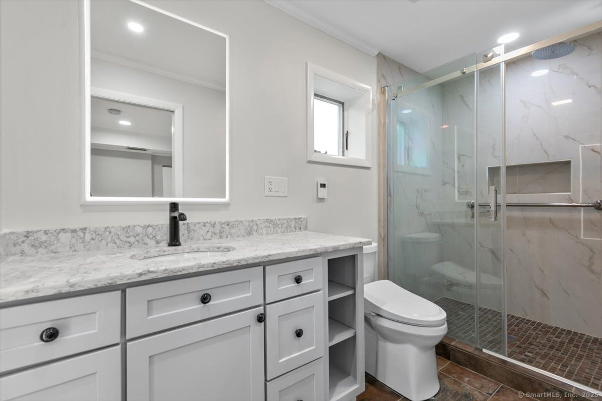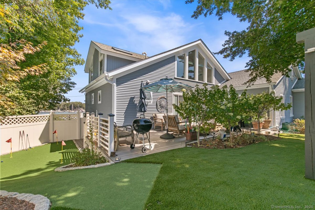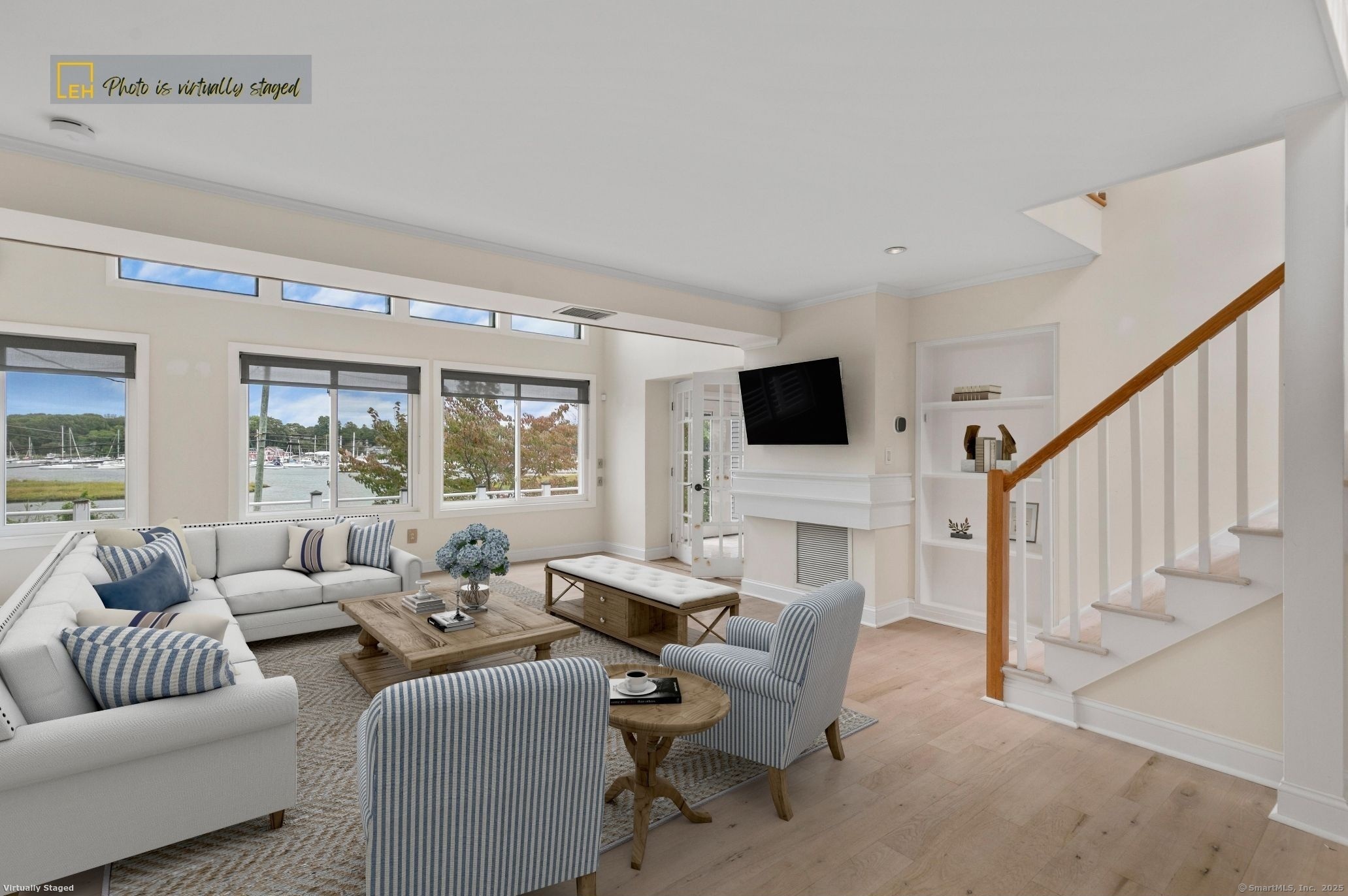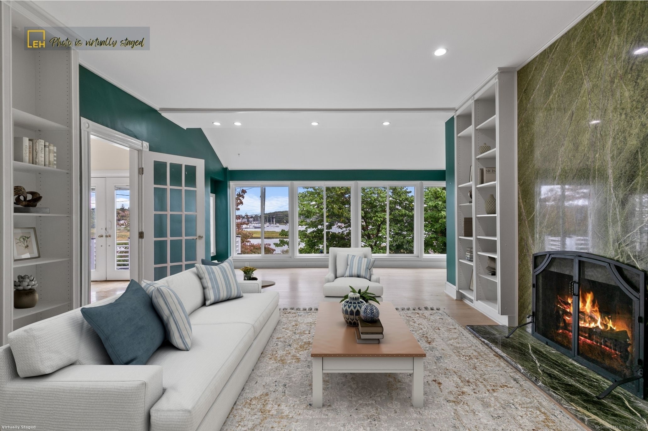 Stunning Direct Harbor Front Contemporary Home in Fort Trumbull Beach! Discover your dream home in his newly renovated coastal contemporary boasting breathtaking direct harbor and water views, perfect for bird and boat watching, as well as enjoying spectacular Fourth of July fireworks from your expansive front deck. Step inside to a dramatic living room featuring soaring 2-story windows that flood the space with natural light, complemented by cathedral ceilings and a stylish Malm freestanding gas fireplace. A chef-friendly kitchen, equipped with granite countertops, a custom tile backsplash, stainless steel appliances, and farmhouse sink. A generously sized dining area can accommodate an entertainment-sized table and leads to an impressive family room complete with built-ins, a fireplace surrounded by custom floor-to-ceiling granite, and stunning harbor views. Two bedrooms and two full baths on the main level include a newly constructed bedroom w/full bath featuring a custom tile shower & a full wall closet. A second level Primary retreat has an ensuite bath with double sinks, a separate tub & shower, and an seriously oversized walk-in closet. Recent upgrades include a new HVAC system, roof, a maintenance free backyard oasis with patio, hot tub, 3 hole putting green, adult constructed swing. 2 car heated and tiled garage. A short walk to Fort Trumbull Beach, Milford Green, Metro North/New York City Train, & 20+ restaurants. A once in a lifetime opportunity not to be missed!