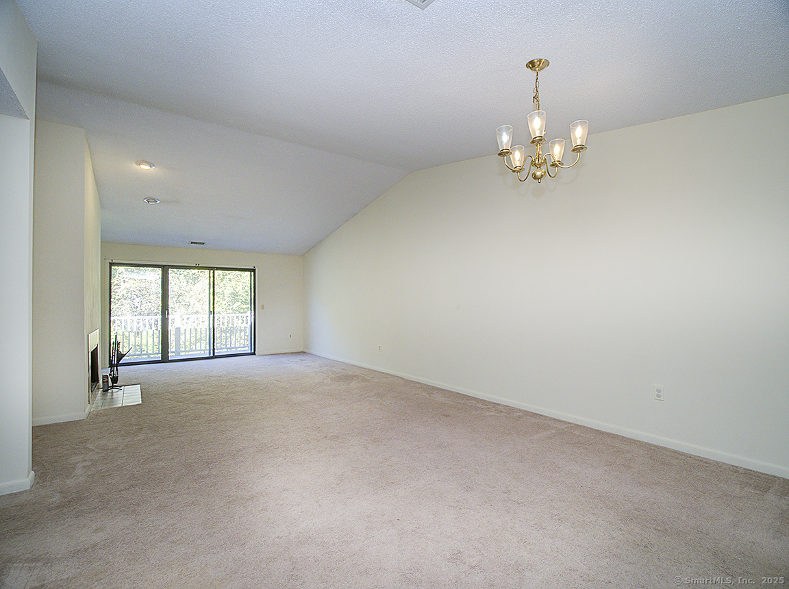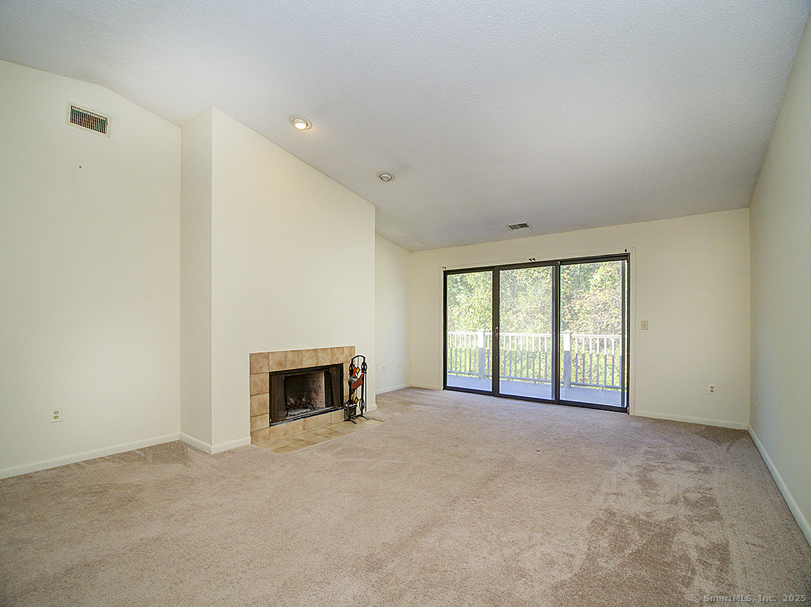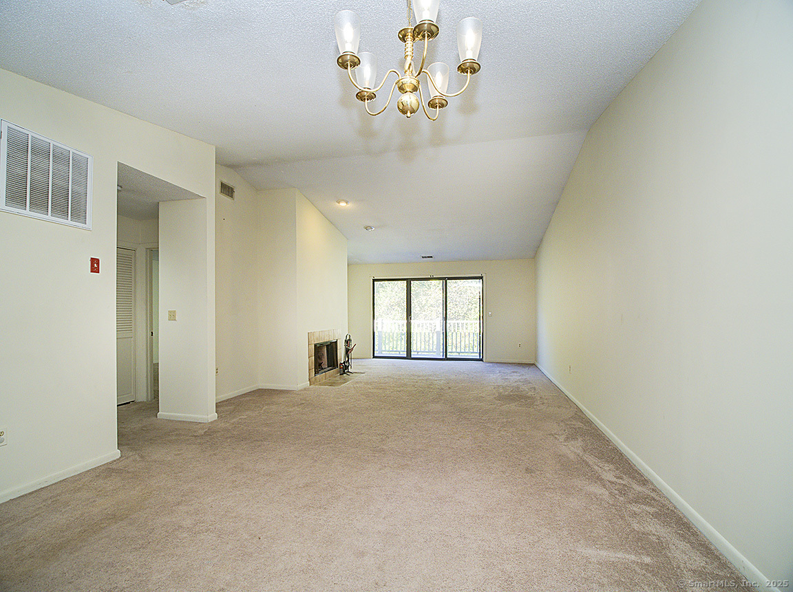 Lovely 2 bedroom, 2 full bath condo apartment located in the Turtle Bay community in Branford! This unit is located on the second floor and has it's own private entrance, with a large coat closet right as you walk in. Head upstairs to the main floor, and you'll be welcomed into a large, wall to wall carpeted living room with vaulted ceilings, a cozy fireplace and sliding doors to a private balcony. The eat-in kitchen is fully equipped with an electric range, fridge, dishwasher and microwave. The primary bedroom is carpeted and has a walk-in closet and ensuite full bath, and also leads out to the balcony. The second bedroom is also carpeted. This condo also has a laundry closet with hookups.