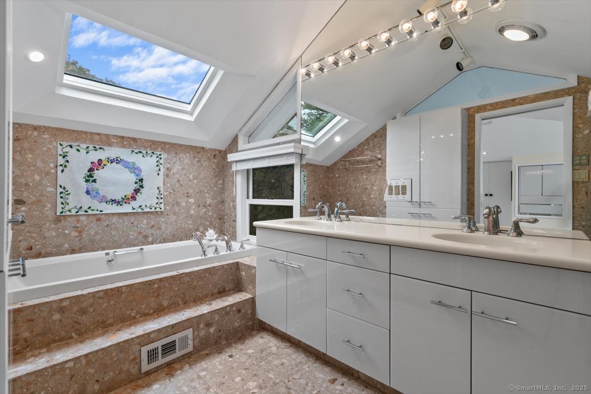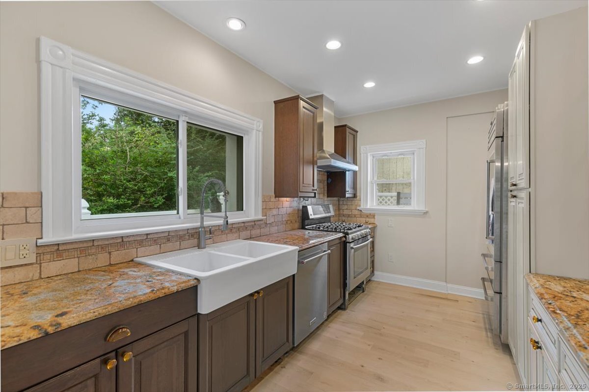 Short-Term Rental with Direct Harbor Front! Located in Fort Trumbull Beach this newly renovated coastal contemporary boasting breathtaking direct harbor and water views, perfect for bird and boat watching, as well as enjoying spectacular Fourth of July fireworks from your expansive front deck. Step inside to a dramatic living room featuring soaring 2-story windows that flood the space with natural light, complemented by cathedral ceilings and a stylish Malm freestanding gas fireplace. A chef-friendly kitchen, equipped with granite countertops, a custom tile backsplash, stainless steel appliances, and farmhouse sink. A generously sized dining area can accommodate an entertainment-sized table and leads to an impressive family room complete with built-ins, a fireplace surrounded by custom floor-to-ceiling granite, and stunning harbor views. Two bedrooms and two full baths on the main level include a newly constructed bedroom with a full bath featuring a custom tile shower & a full wall closet. A second level Primary retreat has an ensuite bath with double sinks, a separate tub & shower, and an seriously oversized walk-in closet. Recent upgrades include a new HVAC system, roof, a maintenance free backyard oasis with patio, hot tub, 3 hole putting green, adult constructed swing. 2 car heated and tiled garage. A short walk to Fort Trumbull Beach, Milford Green, Metro North/New York City Train, and 20+ restaurants. A once in a lifetime opportunity not to be missed