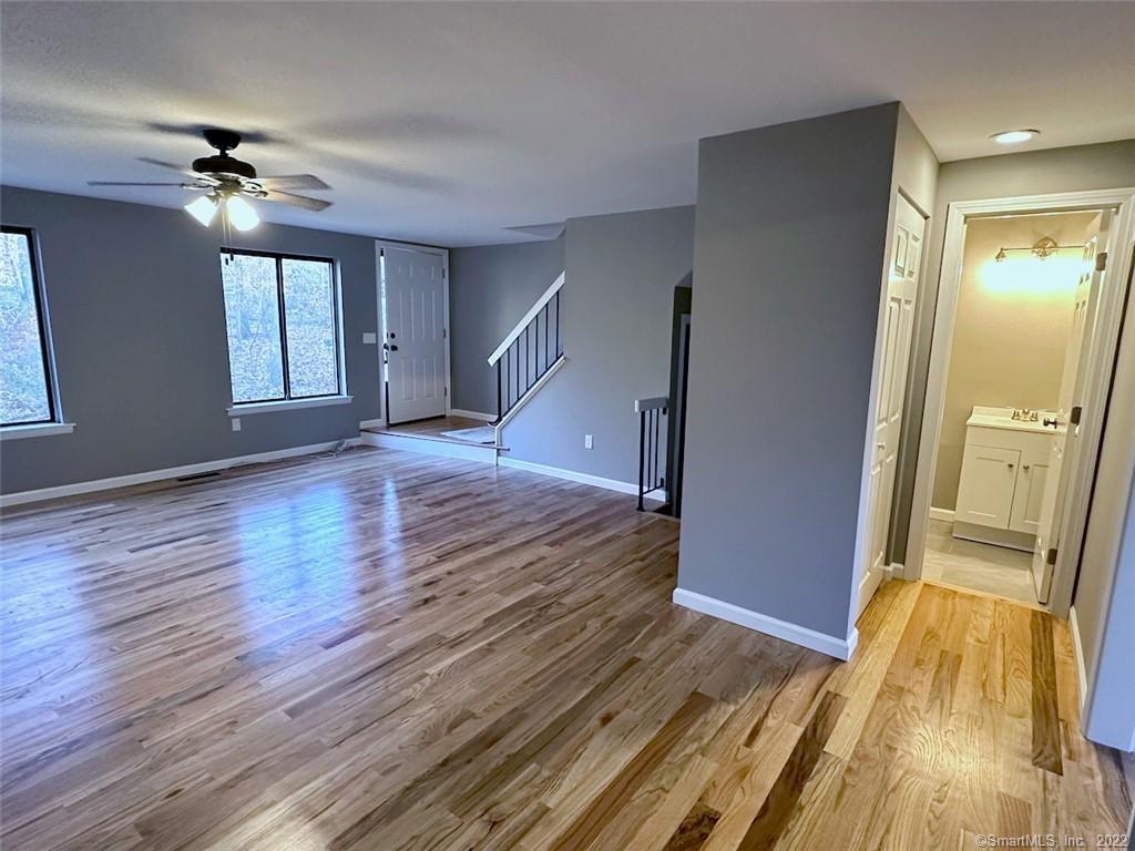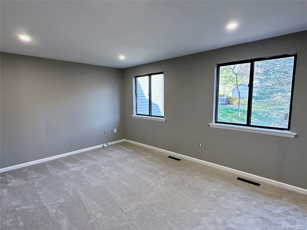 Located just 5 minutes from Glastonbury Center is this beautifully renovated townhouse in the sought after Surrey Hill. Upon entering you'll immediately take note of the large living room and new solid hardwood flooring that leads into the kitchen that has been reappointed with new shaker cabinets, granite counters, stainless steel appliances including a range hood and modern lighting fixtures. The 2nd level features 3 bedrooms including a primary bedroom with two large closets, an updated on-suite Jack and Jill bath featuring a subway tile shower surround, new vanity and flooring. Each bedroom has been outfitted with new recessed lighting as well as new flooring. The walk-out lower level adds approximately 600 square feet of additional space and has been updated with new flooring, and recessed lighting. Laundry is also located on the lower level as well as additional storage space. The unit also includes a covered garage space. A new gas energy efficient furnace, central air system, and hot water heater round out the multitude of upgrades to this condo. This is a truly turn-key home that will prove to be ultra low maintenance years to come. There is nothing to do but move in. Schedule the showing today, fall in love and make it yours.