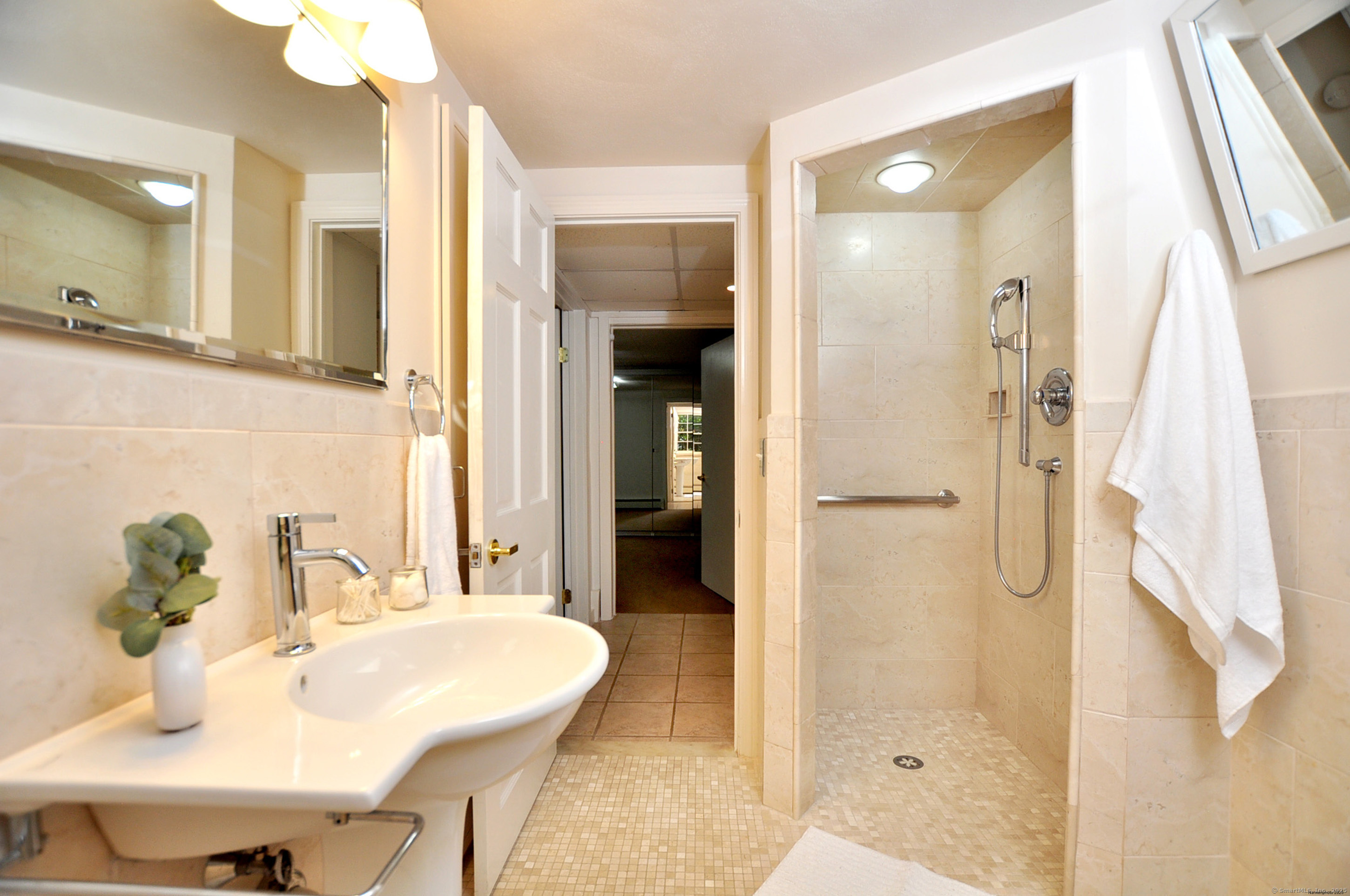 This ranch home is a rare find. It offers 1560 sq ft of one-level living on the main level and an additional 1392 sq ft on the sunny lower level, which includes a private entrance and parking - perfect for extended family or guest. The main floor has a spacious living room with a raised hearth fireplace and hardwood floors, opening to a formal dining room with a lovely view of the large back yard. Classic details include chair rail and crown molding. Enjoy cooking in the eat-in kitchen with stainless steel appliances, quartz countertop and recessed lighting. Spend a pleasant afternoon reading on the screened in front porch. A roomy walk-up attic offers expansion possibilities. On the lower level is a large, beautifully finished open space family room with recessed lighting and a fireplace. A entertainment kitchen with white cabinets, stainless appliances and a quartz island that seats 4. This level includes a full bath, a laundry area and two rooms with bedroom and office potential. New energy-efficient Mitsubishi ceiling-mounted heat pumps supplement the gas heating and provide cooling on the main level. Other updates include windows and higher end lighting. Located a short distance to Norfeldt Elementary School and minutes from West Hartford center and all it has to offer.