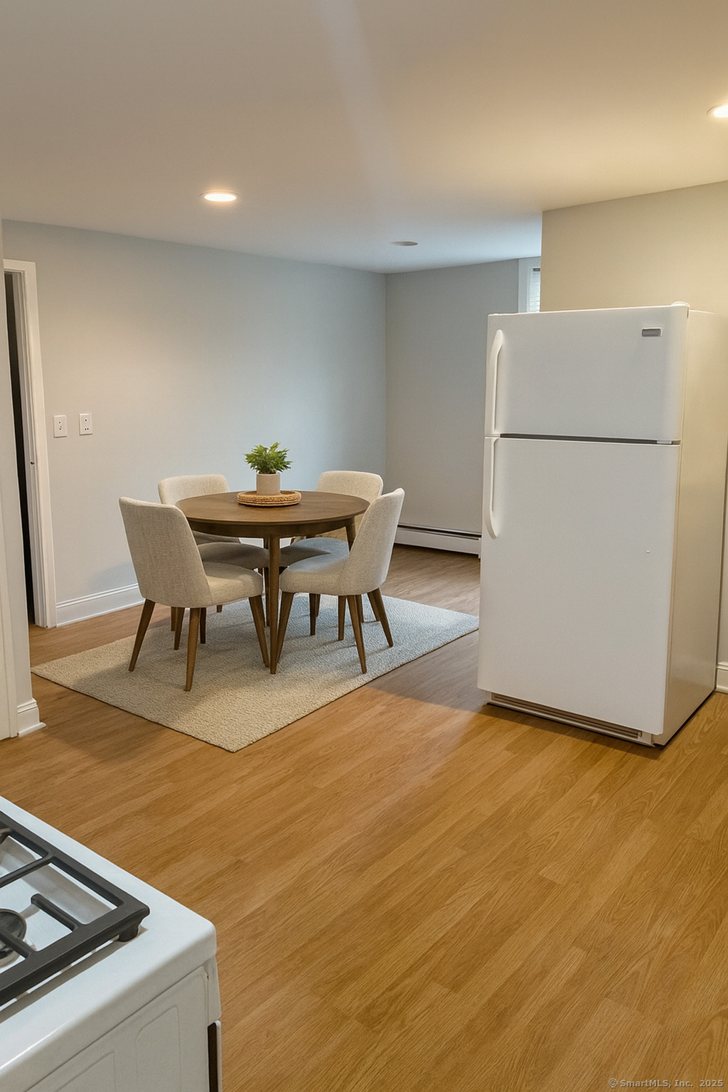 Welcome to this freshly painted 2-bedroom, 1-bath apartment located on a quiet dead-end street in Bridgeport's desirable North End! This inviting unit features wood-look flooring throughout, neutral tones, and plenty of natural light. The eat-in kitchen offers great cabinet space, and the bathroom has been nicely updated. Both bedrooms are comfortably sized. Rent includes electric and hot water (tenant responsible for heat).Easy access to Sacred Heart University, shopping, public transportation, and major highways. Move-in ready and conveniently located!