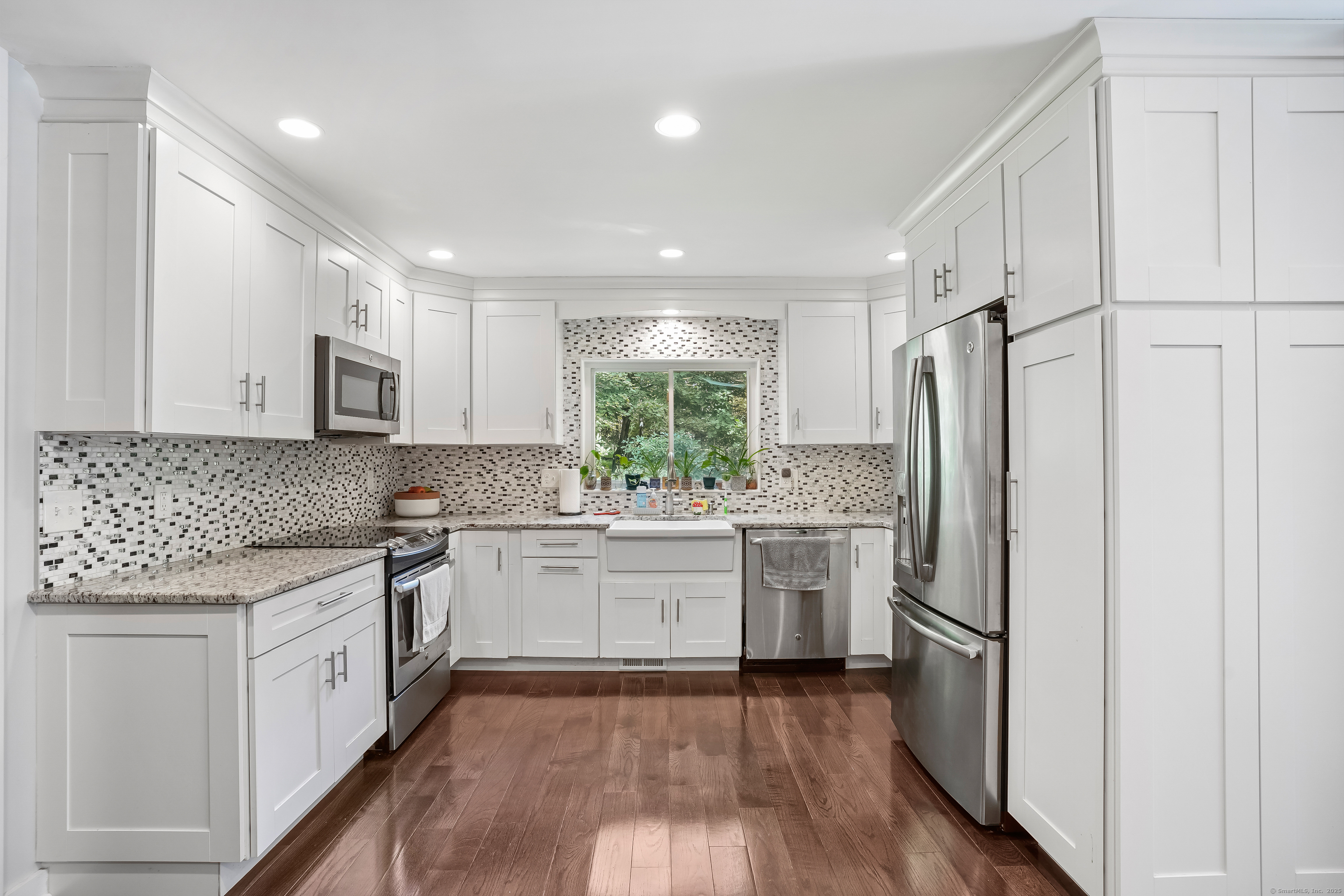 Tucked away on a peaceful cut-de-sac and boarderd by the serene woodlands of Putnam State Park, this fully renovated contemporary offers a blend of modern luxury and natural beauty. Set on a private 2+ acres, this four bedroom three full bath home is an exceptional retreat just minutes from the heart of Redding. Enter inside to soaring ceilings, clean lines and sun drenched interiors thanks to the expansive windows that frame the surrounding woods. The open concept kitchen with stainless steel appliances, new cabinetry and granite countertops is ideal for entertaining or enjoying your morning coffee. The spacious living room and family room both have fireplaces to cozy up to on cold winter nights. The upper level has four generously sized bedrooms and the primary suite has an en-suite bathroom. This is a rare opportunity to own turnkey contemporary in one of Reddings most scenic locations.