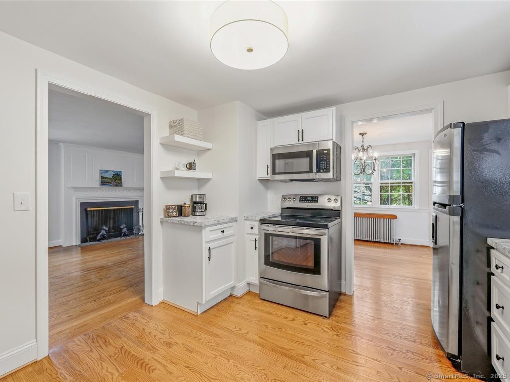 Nestled in a quiet neighborhood yet close to everything, this 3-bedroom, 1.5-bath Cape beautifully blends warmth, character, and modern updates. From the moment you step inside, you'll love the gleaming hardwood floors, bright, open spaces, and cozy fireplace that instantly make you feel at home. The updated kitchen with stainless steel appliances and fresh finishes opens effortlessly to the dining area-perfect for entertaining or hosting gatherings. Upstairs, you'll find three spacious bedrooms with great light and plenty of storage. A true highlight is the 1-bedroom, 1-bath possible in-law or accessory apartment, complete with its own entrance and separate utilities, offering versatility for multigenerational living, guests, or rental income. The new roof adds peace of mind, while the corner lot and large yard create the perfect outdoor retreat-ideal for relaxing, barbecues, or evenings by the firepit. Located just minutes from Newington Center's shops, restaurants, parks, and schools, this home combines comfort, convenience, and opportunity. Don't miss this rare find-homes like this don't come around often!