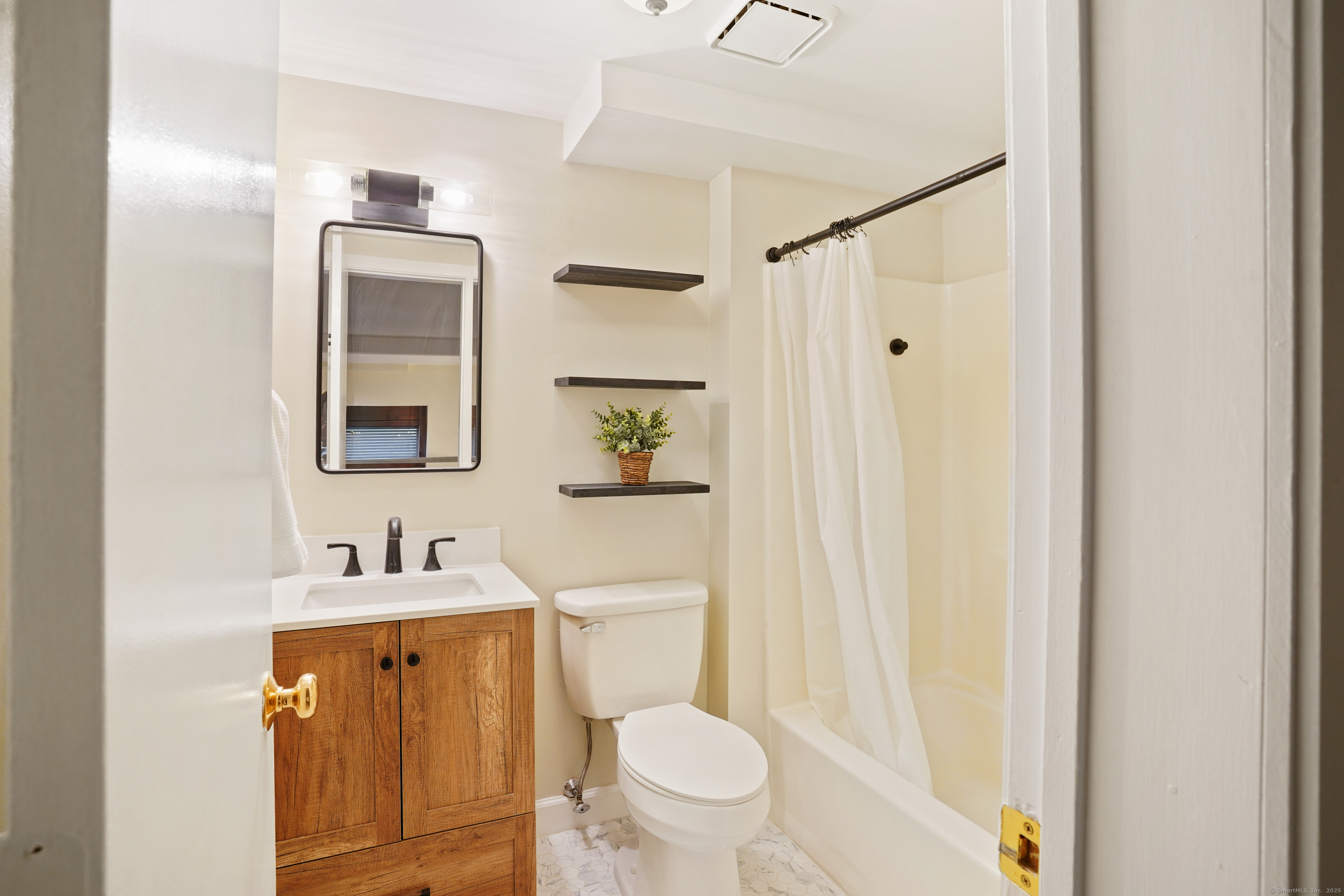 Stylish and spacious, recently renovated 1BR/1.5BA loft in a desirable South Norwalk location, yet tucked back on a quiet street. Originally a button factory in the early 1900s, this nearly 1,000 sq ft home blends historic charm with modern updates, featuring soaring lofted ceilings, double-height windows, and an open-concept layout. The sleek brand new kitchen showcases quartz countertops, stainless steel appliances, and a breakfast bar that opens to the airy living space. The first floor also offers multiple storage closets and a tastefully renovated powder room. Upstairs features a large, versatile lofted bedroom with plush carpet, custom closet, and an updated full bath. Enjoy secure entry, a private storage space, reserved parking spot "X," plus guest parking. Pet-friendly and walkable to the SoNo Collection, train to NYC, restaurants, waterfront & more! Feature sheet in supplements.