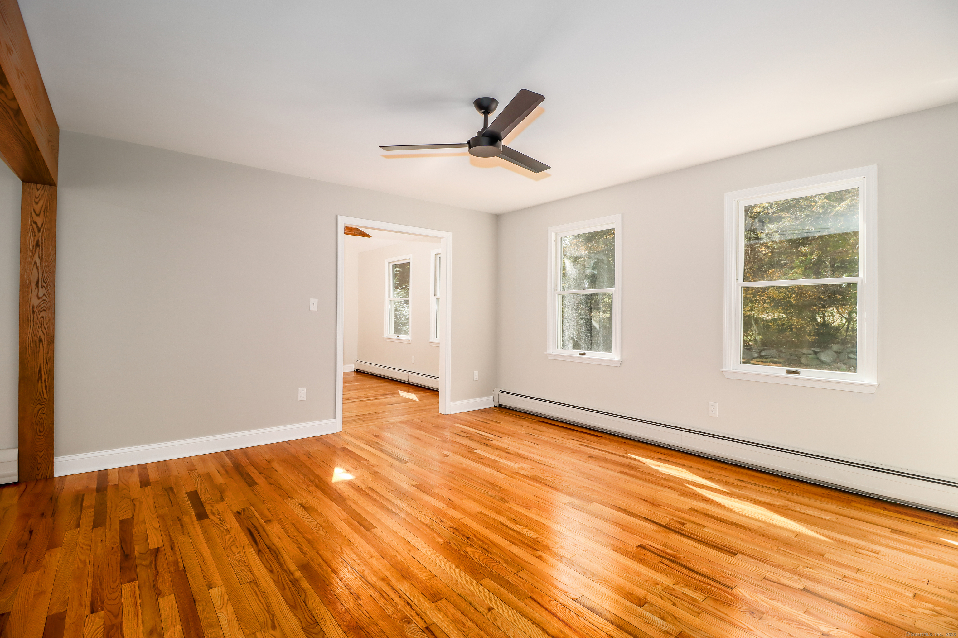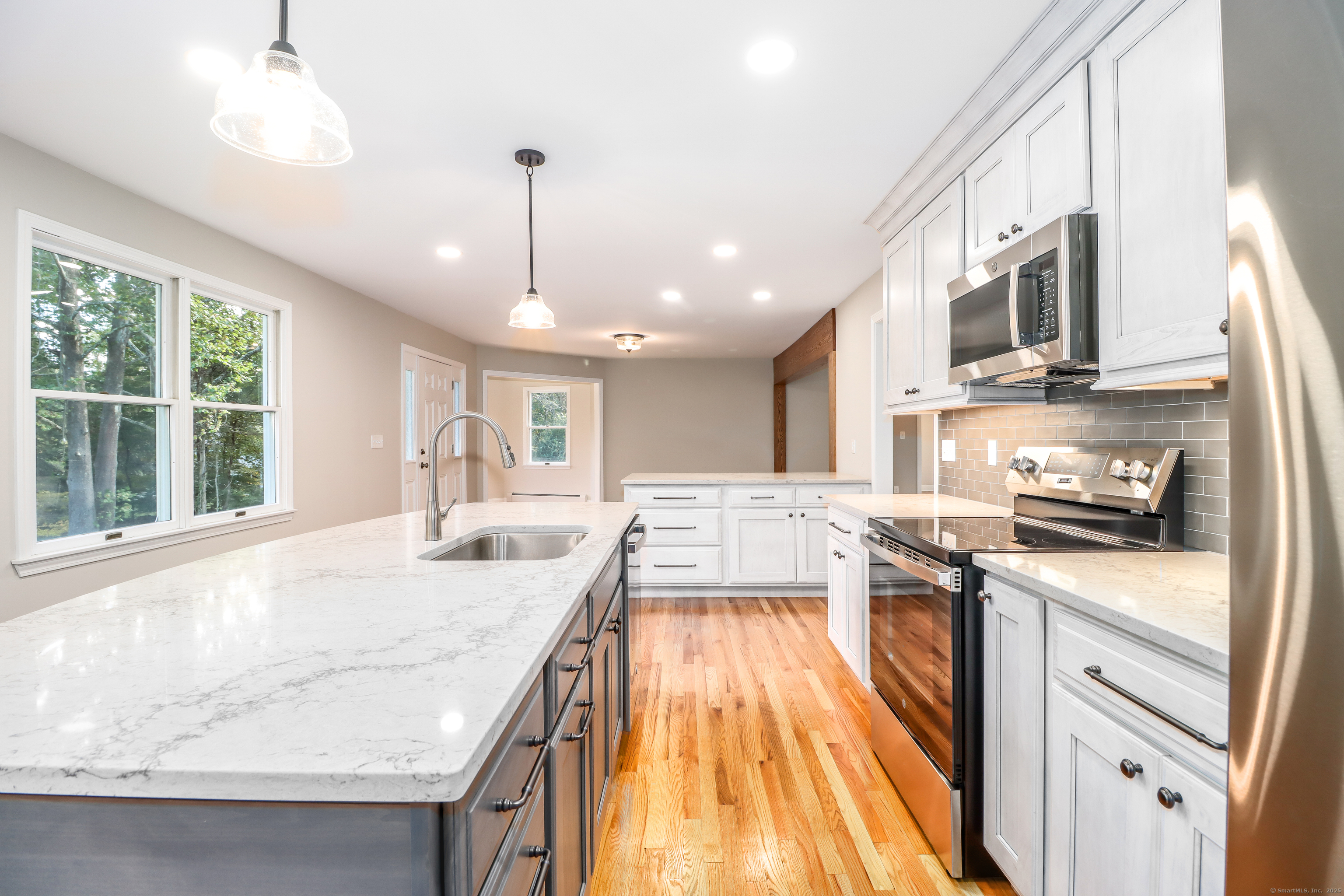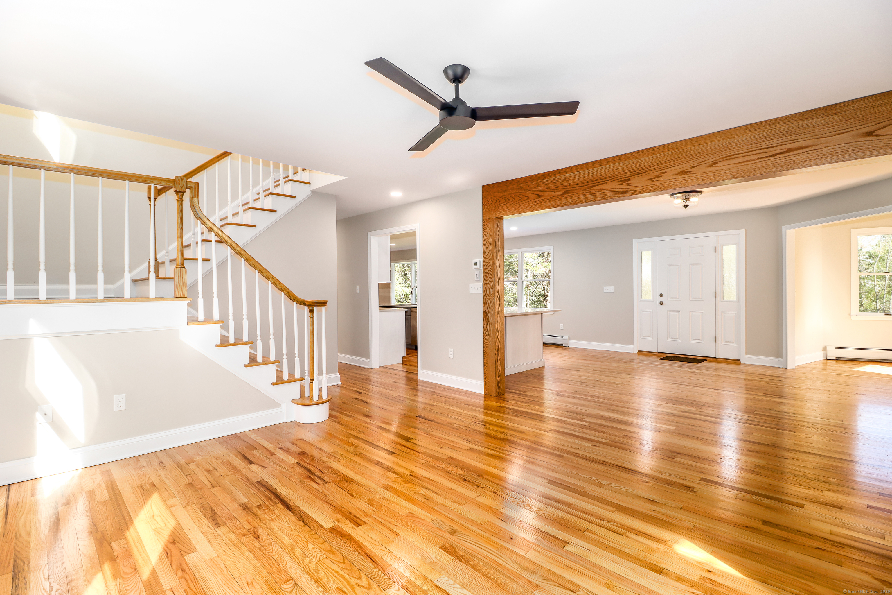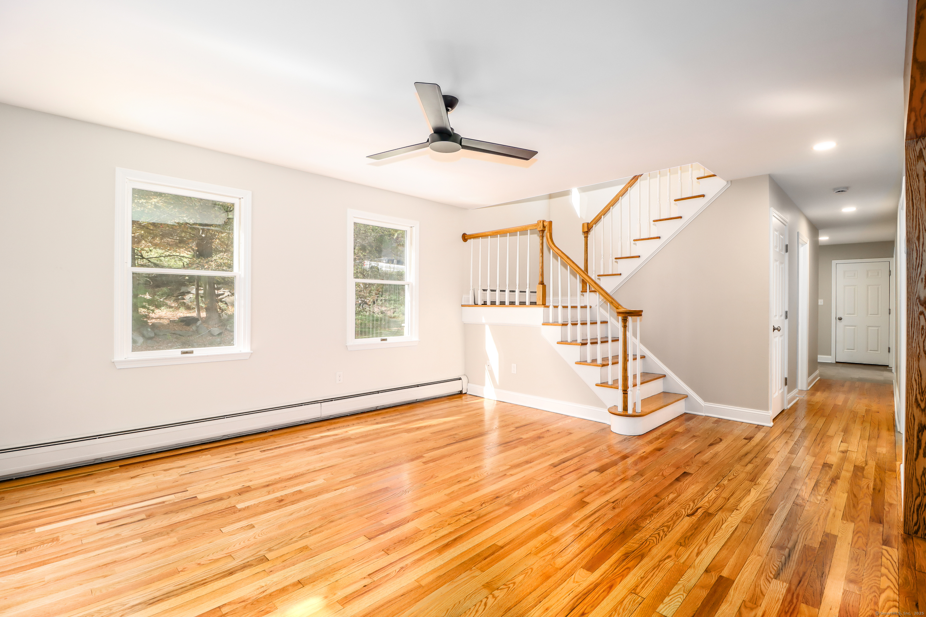Don't judge a book by its cover - the exterior is still being refreshed, but the inside will IMPRESS! Beautifully renovated Colonial offering 3 spacious bedrooms and 2.5 baths. Features include gleaming hardwood floors throughout, recessed lighting, and a gorgeous kitchen with stainless steel appliances, quartz countertops, and a walk-in pantry. The main level offers a bright living room, dining room, and family room with exposed beams-perfect for entertaining. The primary suite boasts a spa-like bath with soaking tub, tiled shower with multiple spray heads, and a built-in seat. Freshly painted interior, updated bathrooms, dedicated laundry room, powder room, and a 2-car garage. Large level lot ideal for outdoor enjoyment. Full walkout basement provides abundant storage. Excellent credit, income verification, and background check required.