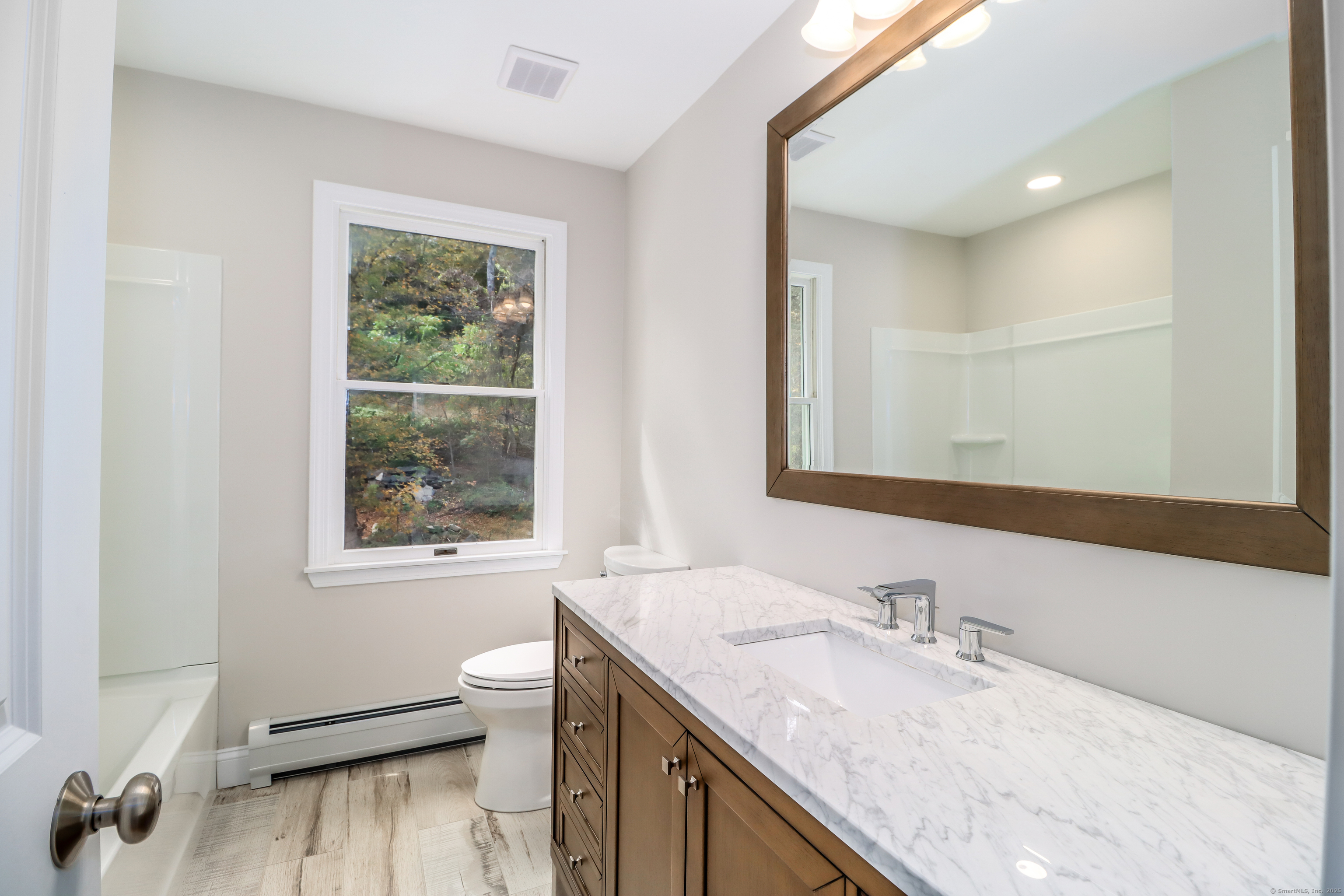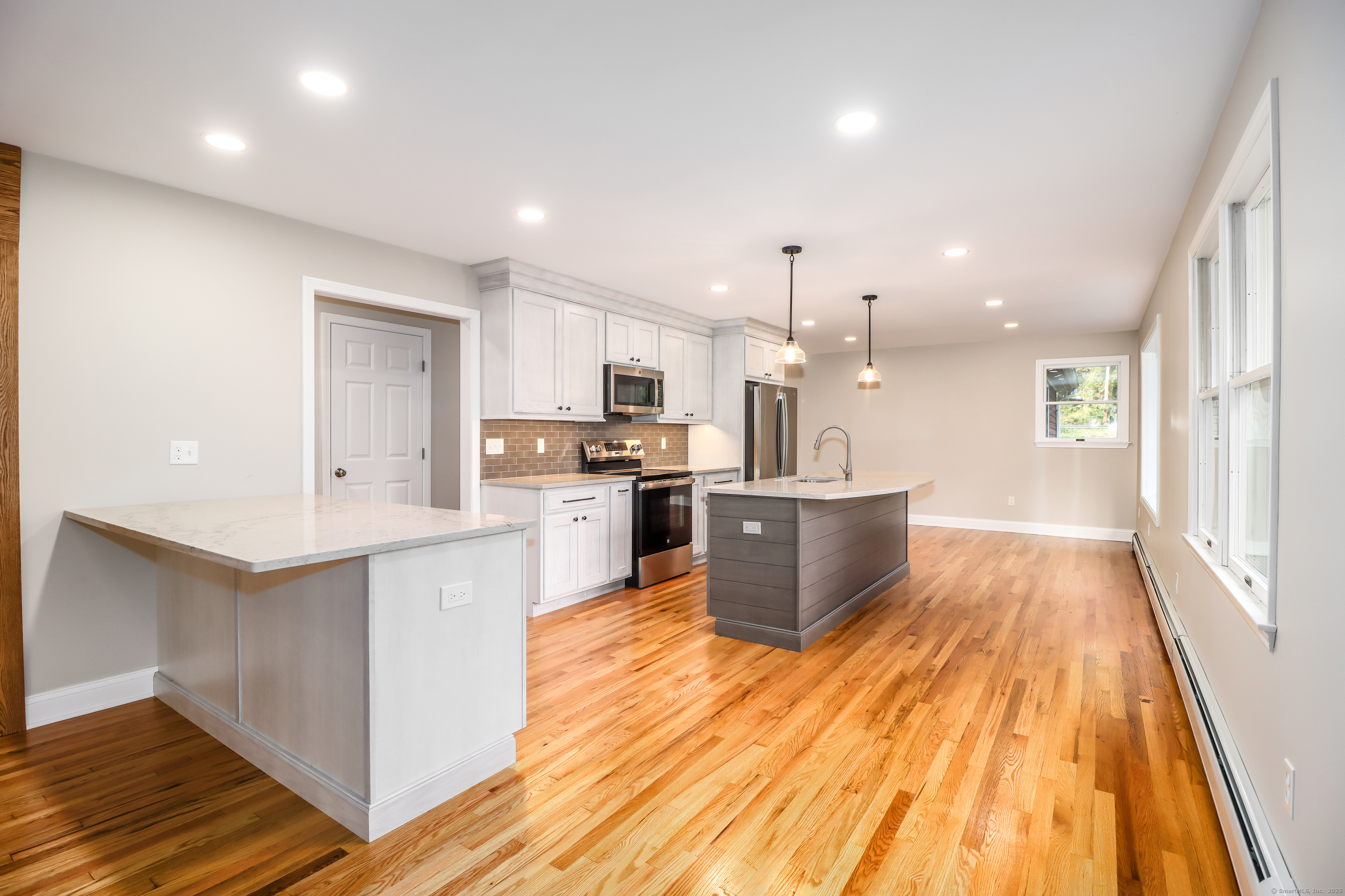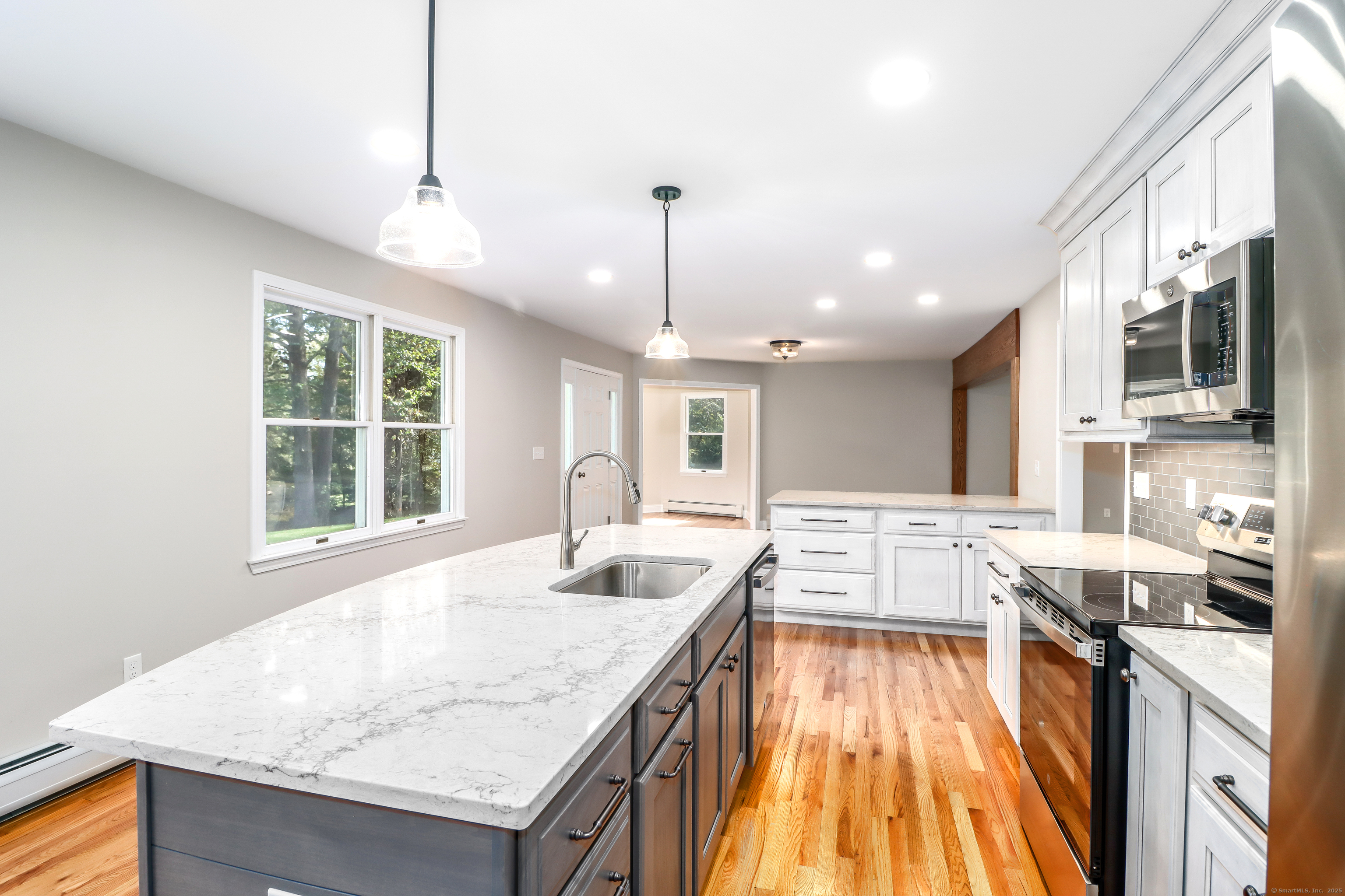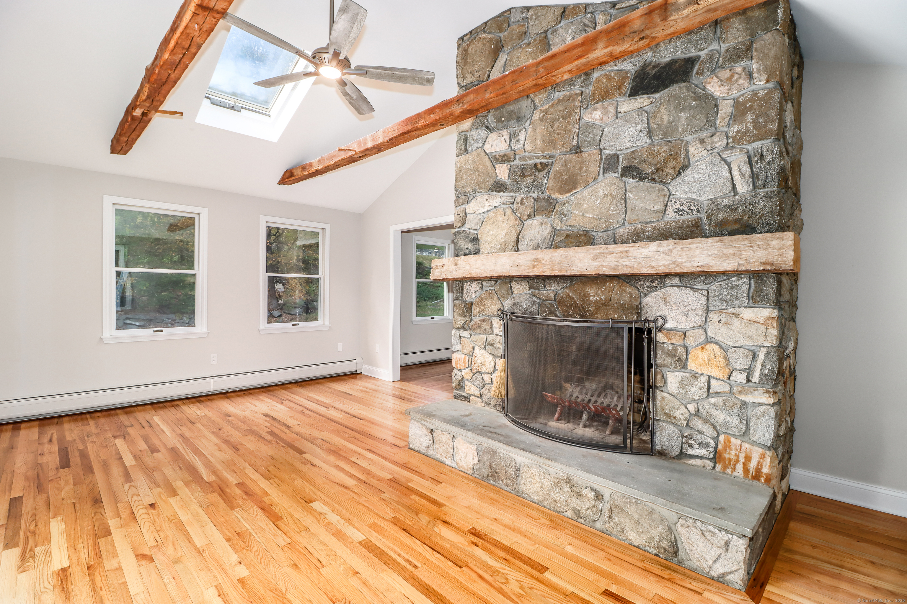 Don't judge a book by its cover - the exterior is still being refreshed, but the inside will IMPRESS! Beautifully renovated Colonial offering 3 spacious bedrooms and 2.5 baths. Features include gleaming hardwood floors throughout, recessed lighting, and a gorgeous kitchen with stainless steel appliances, quartz countertops, and a walk-in pantry. The main level offers a bright living room, dining room, and family room with exposed beams-perfect for entertaining. The primary suite boasts a spa-like bath with soaking tub, tiled shower with multiple spray heads, and a built-in seat. Freshly painted interior, updated bathrooms, dedicated laundry room, powder room, and a 2-car garage. Large level lot ideal for outdoor enjoyment. Full walkout basement provides abundant storage. Excellent credit, income verification, and background check required.