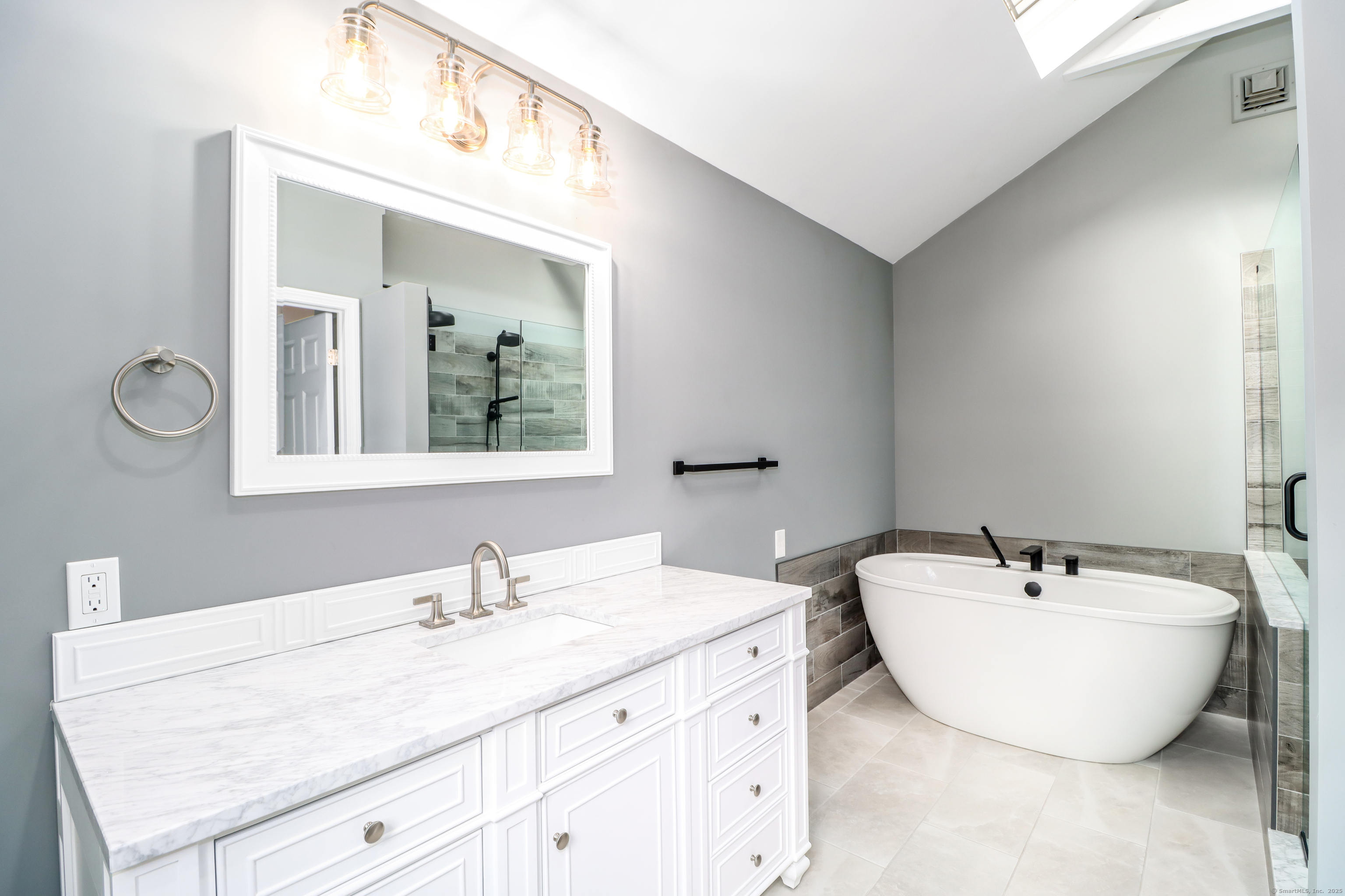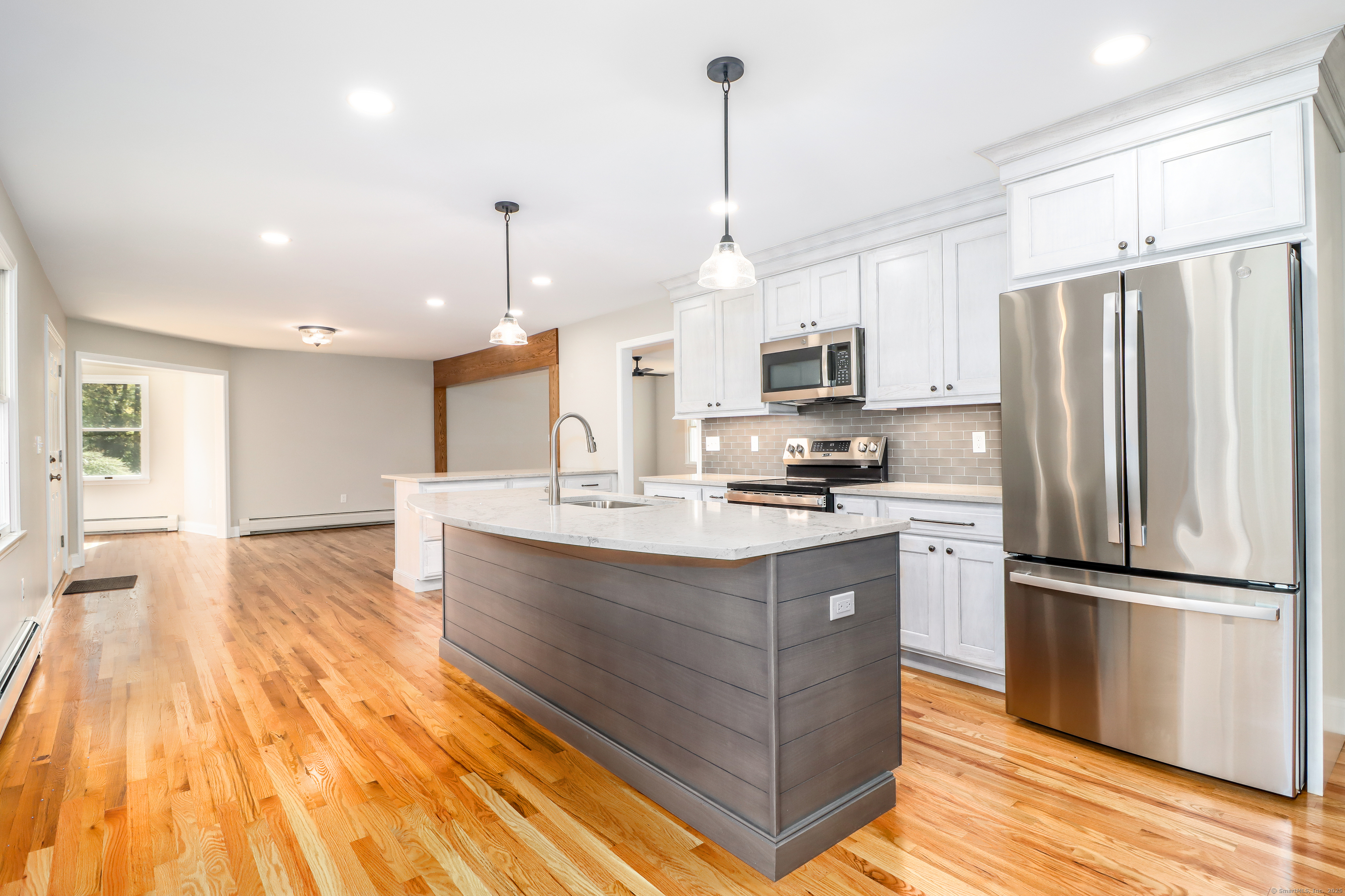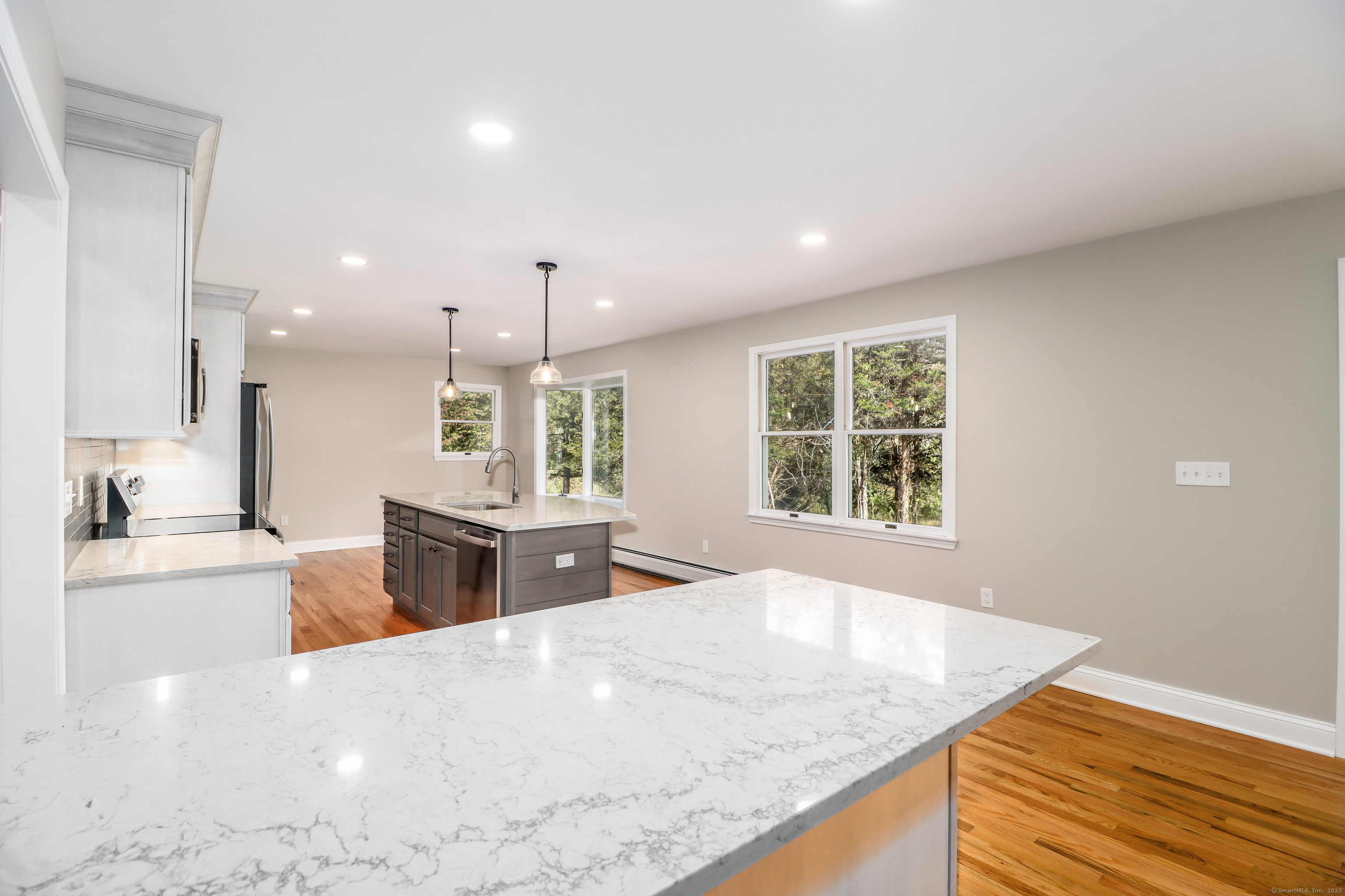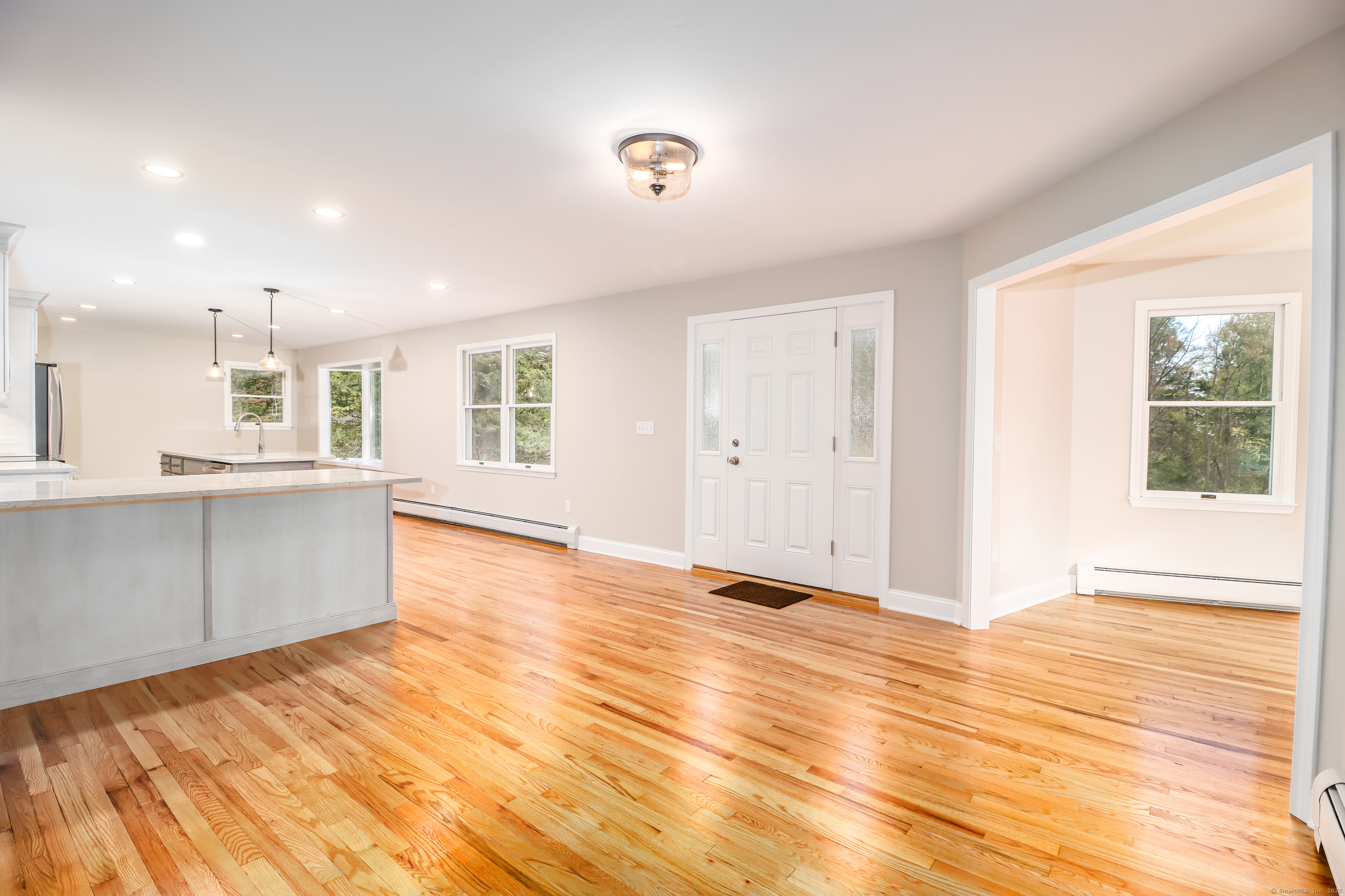 Don't judge a book by its cover - the exterior is still being refreshed, but the inside will IMPRESS! Beautifully renovated Colonial offering 3 spacious bedrooms and 2.5 baths. Features include gleaming hardwood floors throughout, recessed lighting, and a gorgeous kitchen with stainless steel appliances, quartz countertops, and a walk-in pantry. The main level offers a bright living room, dining room, and family room with exposed beams-perfect for entertaining. The primary suite boasts a spa-like bath with soaking tub, tiled shower with multiple spray heads, and a built-in seat. Freshly painted interior, updated bathrooms, dedicated laundry room, powder room, and a 2-car garage. Large level lot ideal for outdoor enjoyment. Full walkout basement provides abundant storage. Excellent credit, income verification, and background check required.