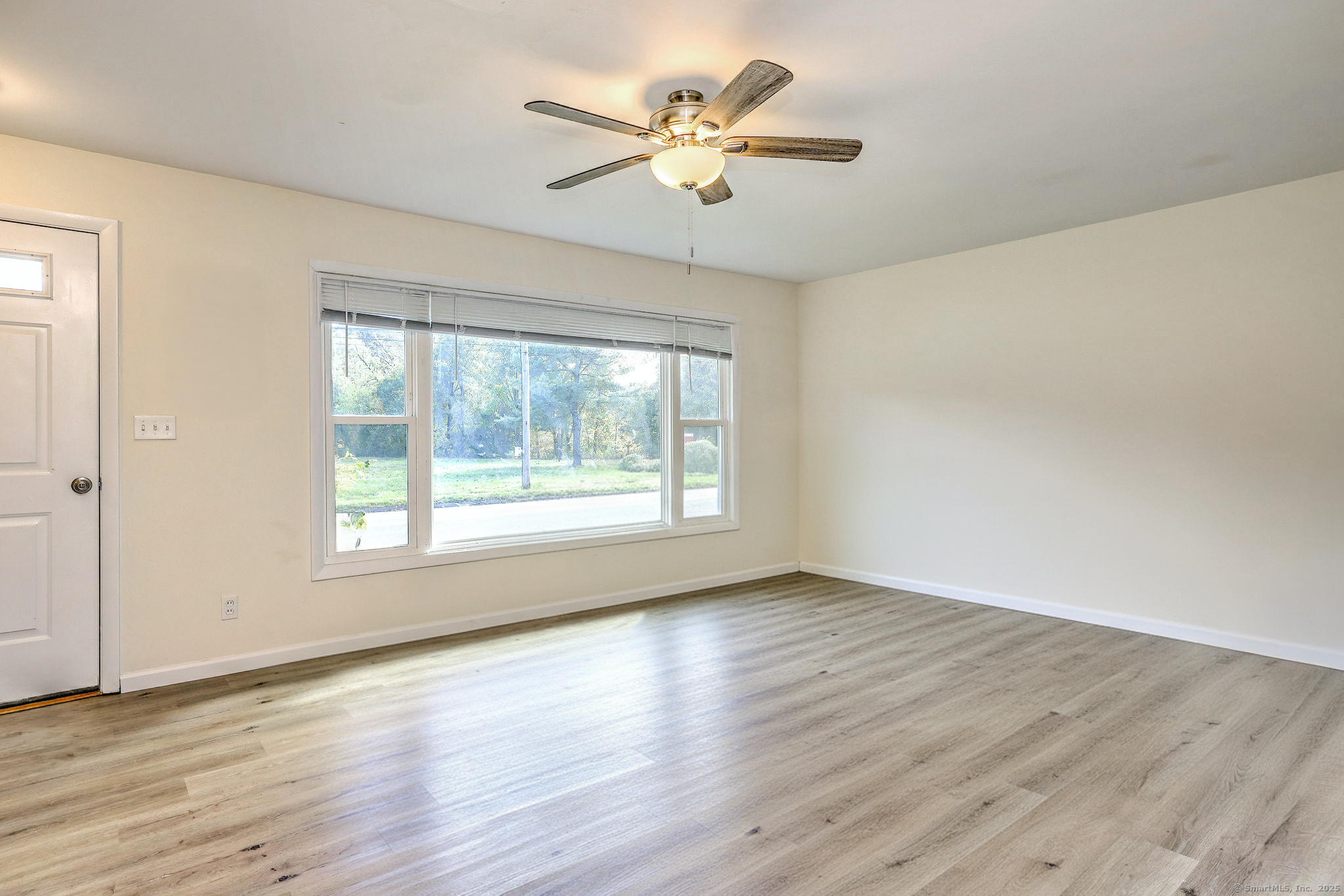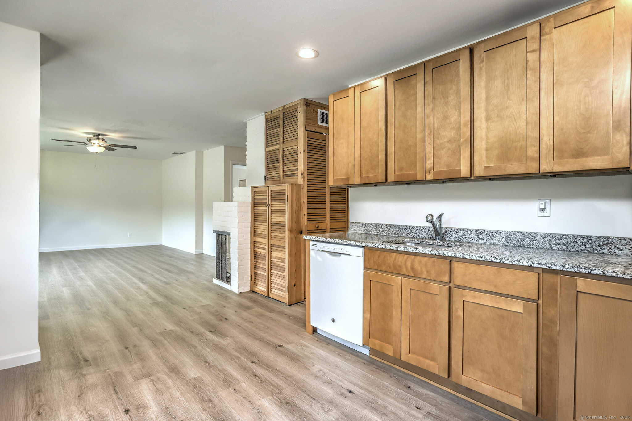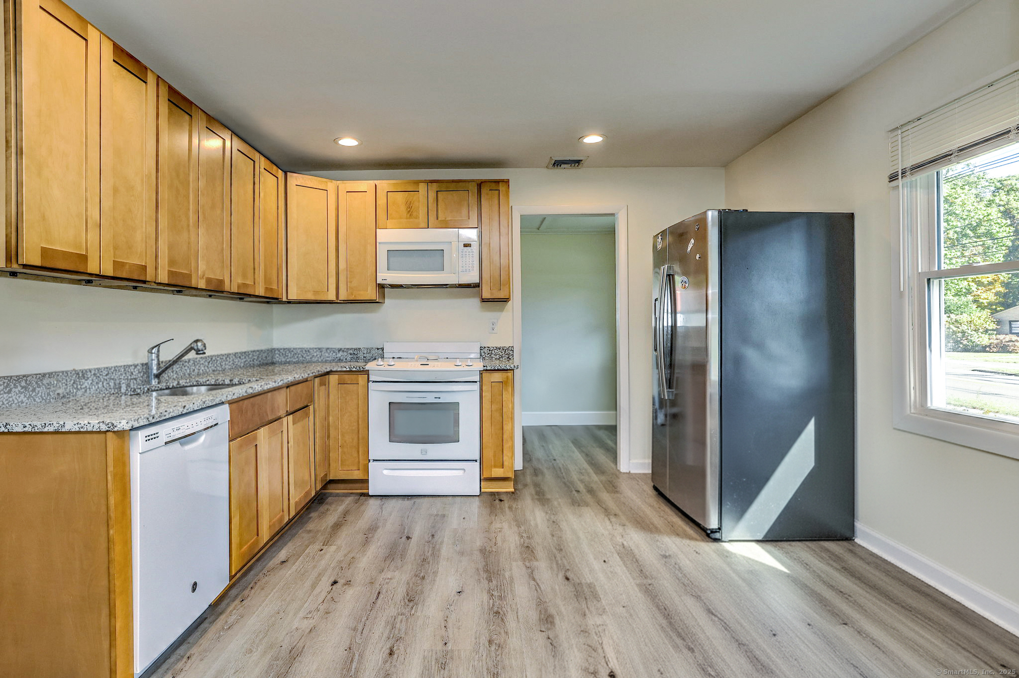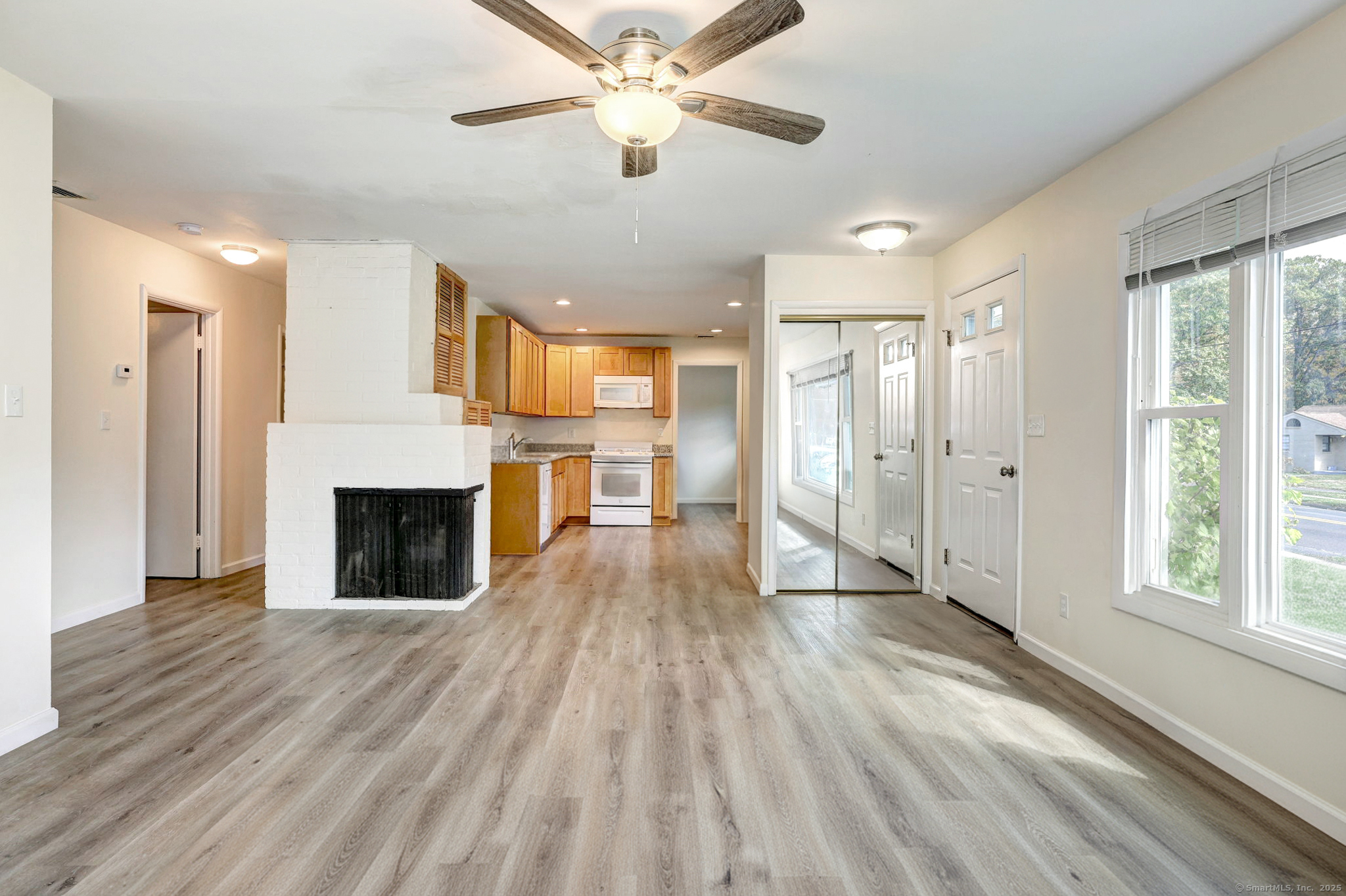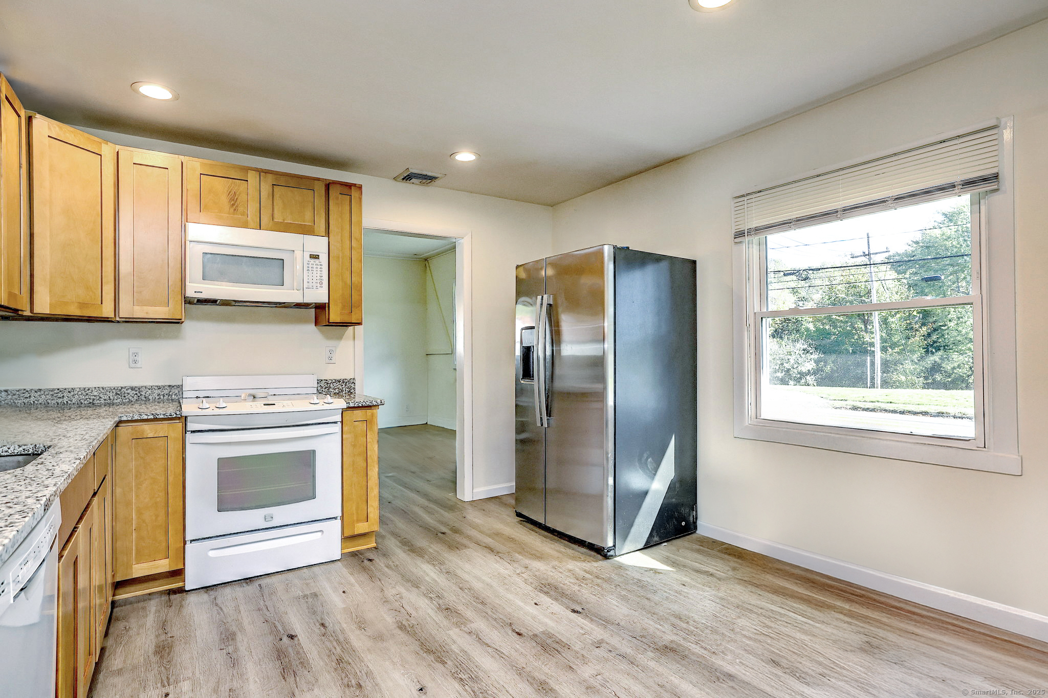 Beautifully remodeled 3-bedroom ranch offering modern comfort and low-maintenance living! This move-in-ready home features an open floor plan with a stunning new Shaker-style kitchen complete with soft-close cabinets, granite countertops, and seamless flow to the living room-perfect for entertaining. Enjoy peace of mind with major system updates throughout: new 30-year architectural roof, rebuilt chimney, new oil tank (installed 8/22), and a 1-year-old Bock oil-fired hot water heater that also provides heat through a hydro-air system. The home has all-new plumbing, thermopane windows, 100-amp updated electrical service, new outlets and switches, and four hardwired smoke/CO detectors. The bathroom is completely renovated with modern fixtures, and the bonus room offers flexible use-ideal for a home office, gym, or playroom-with sliders leading to a spacious 10' x 20' deck overlooking the backyard. Additional features include new vinyl plank flooring, fresh paint, five ceiling fans, new back door and locks, and a stackable washer/dryer. Located just 2 miles from the Wallingford YMCA, close to highways, schools, and Wallingford Country Club, and benefiting from low-cost Wallingford Electric & Water-this home truly has it all!