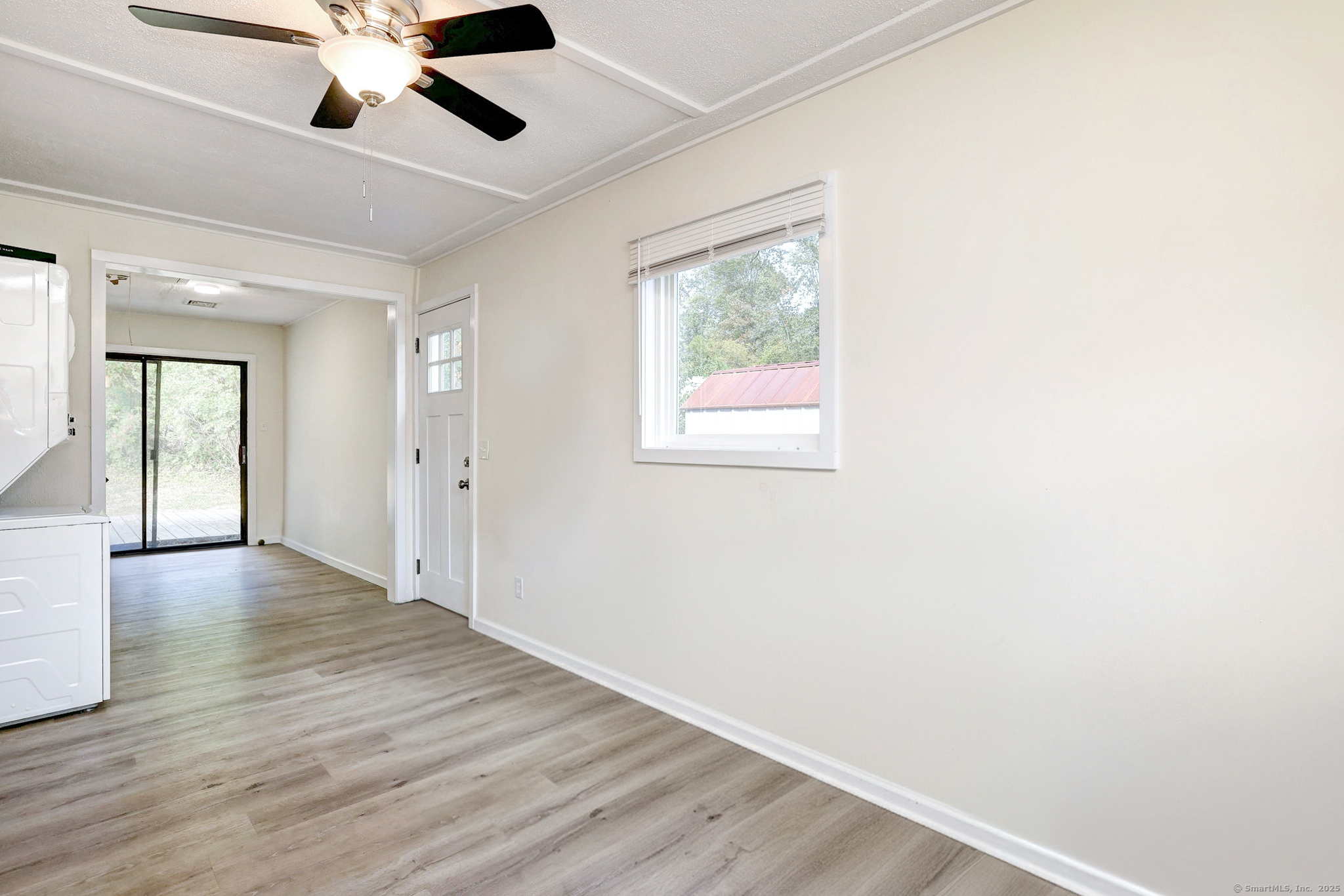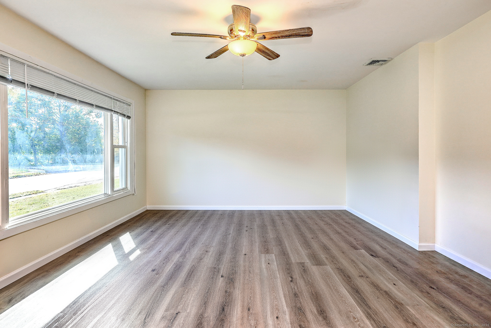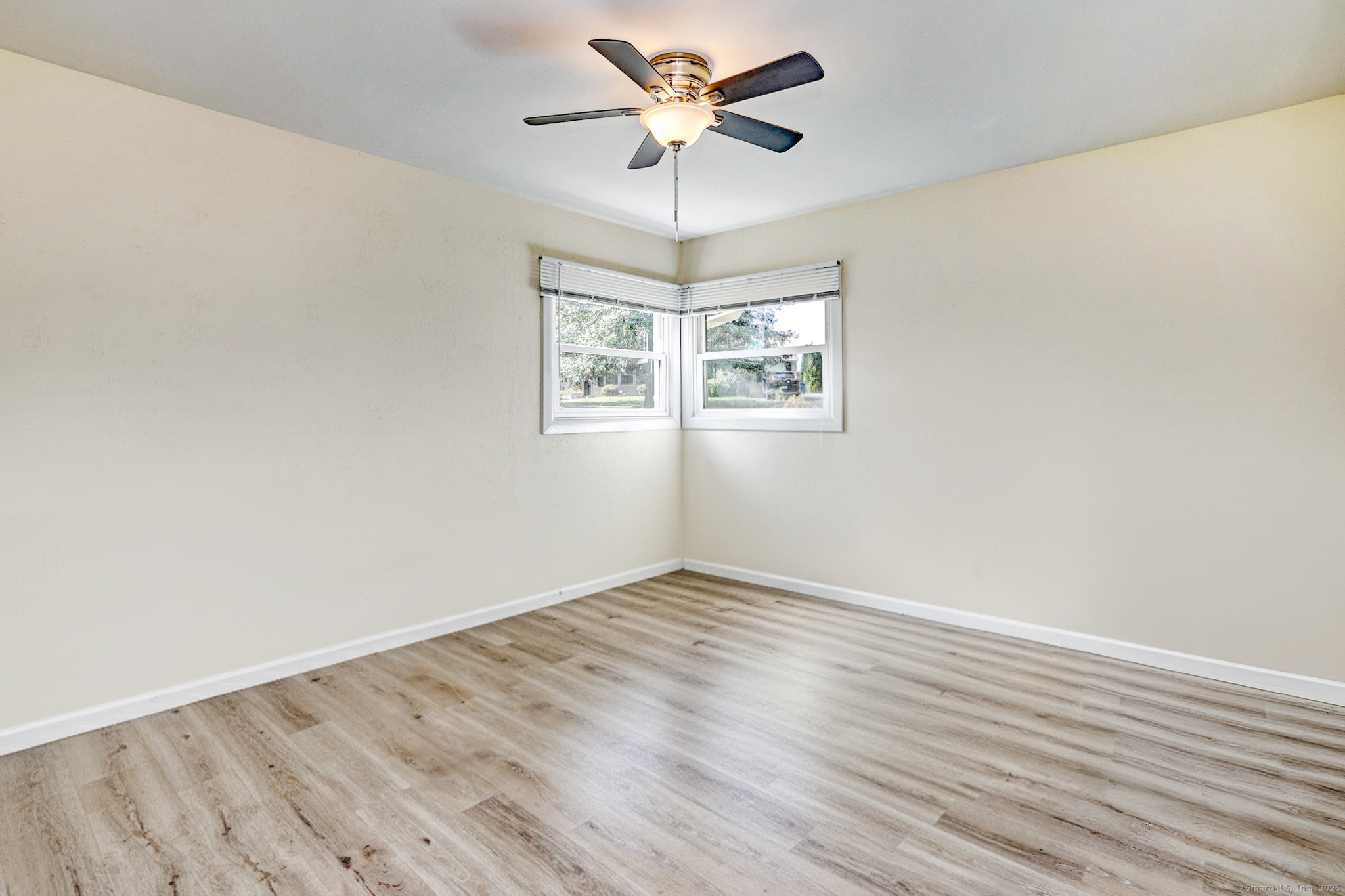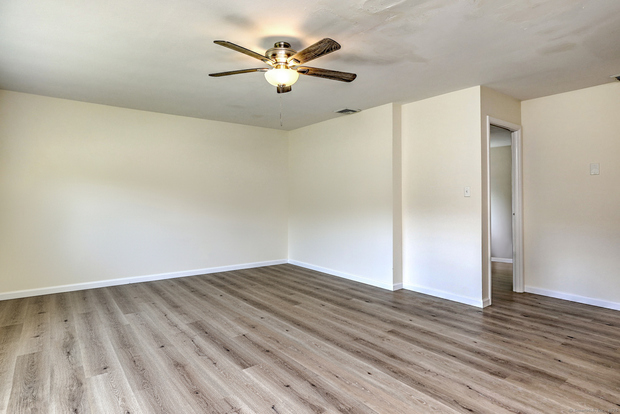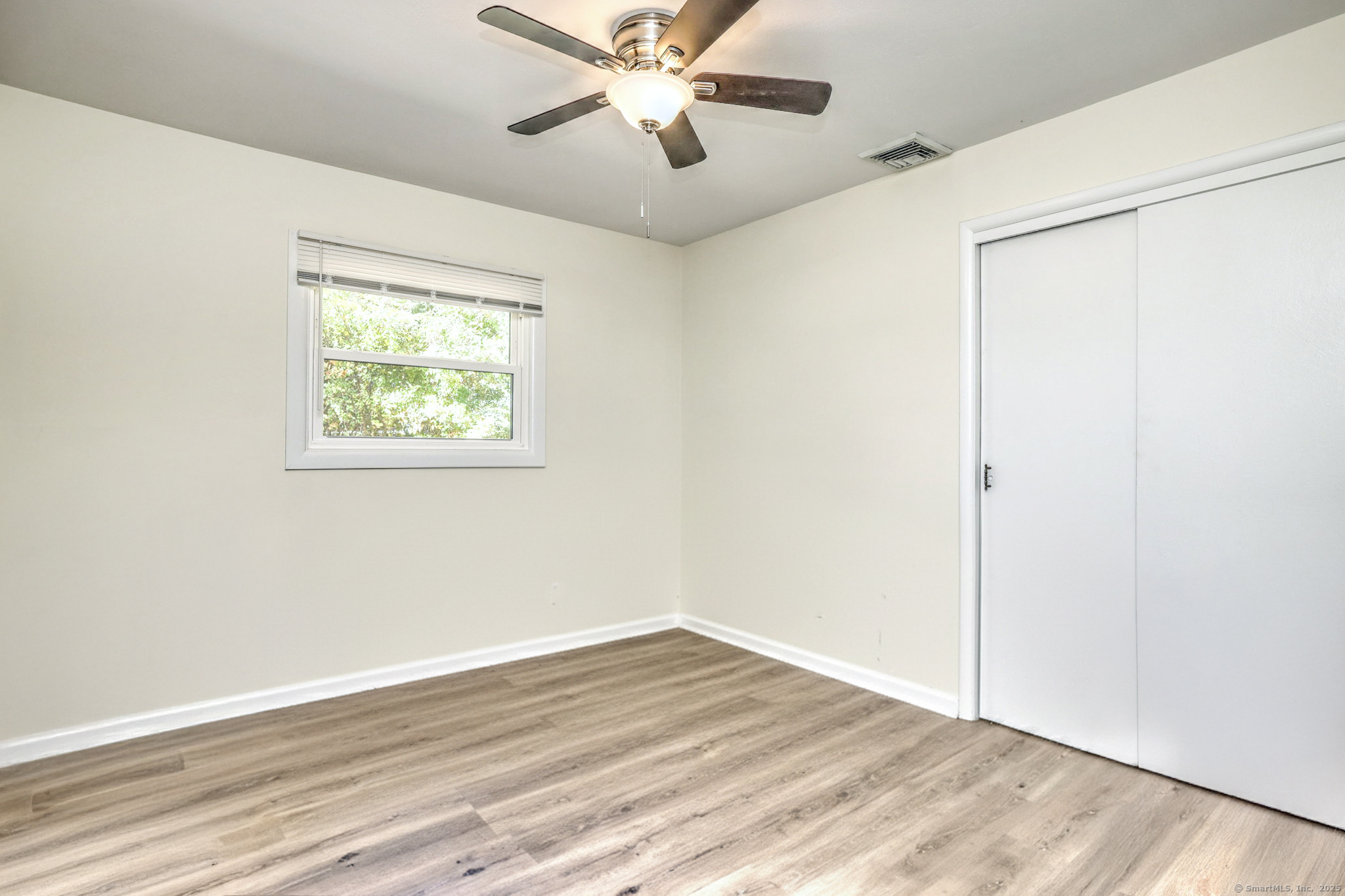 Beautifully remodeled 3-bedroom ranch offering modern comfort and low-maintenance living! This move-in-ready home features an open floor plan with a stunning new Shaker-style kitchen complete with soft-close cabinets, granite countertops, and seamless flow to the living room-perfect for entertaining. Enjoy peace of mind with major system updates throughout: new 30-year architectural roof, rebuilt chimney, new oil tank (installed 8/22), and a 1-year-old Bock oil-fired hot water heater that also provides heat through a hydro-air system. The home has all-new plumbing, thermopane windows, 100-amp updated electrical service, new outlets and switches, and four hardwired smoke/CO detectors. The bathroom is completely renovated with modern fixtures, and the bonus room offers flexible use-ideal for a home office, gym, or playroom-with sliders leading to a spacious 10' x 20' deck overlooking the backyard. Additional features include new vinyl plank flooring, fresh paint, five ceiling fans, new back door and locks, and a stackable washer/dryer. Located just 2 miles from the Wallingford YMCA, close to highways, schools, and Wallingford Country Club, and benefiting from low-cost Wallingford Electric & Water-this home truly has it all!