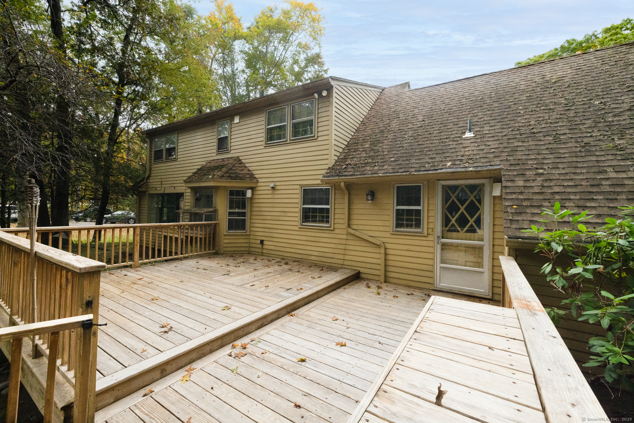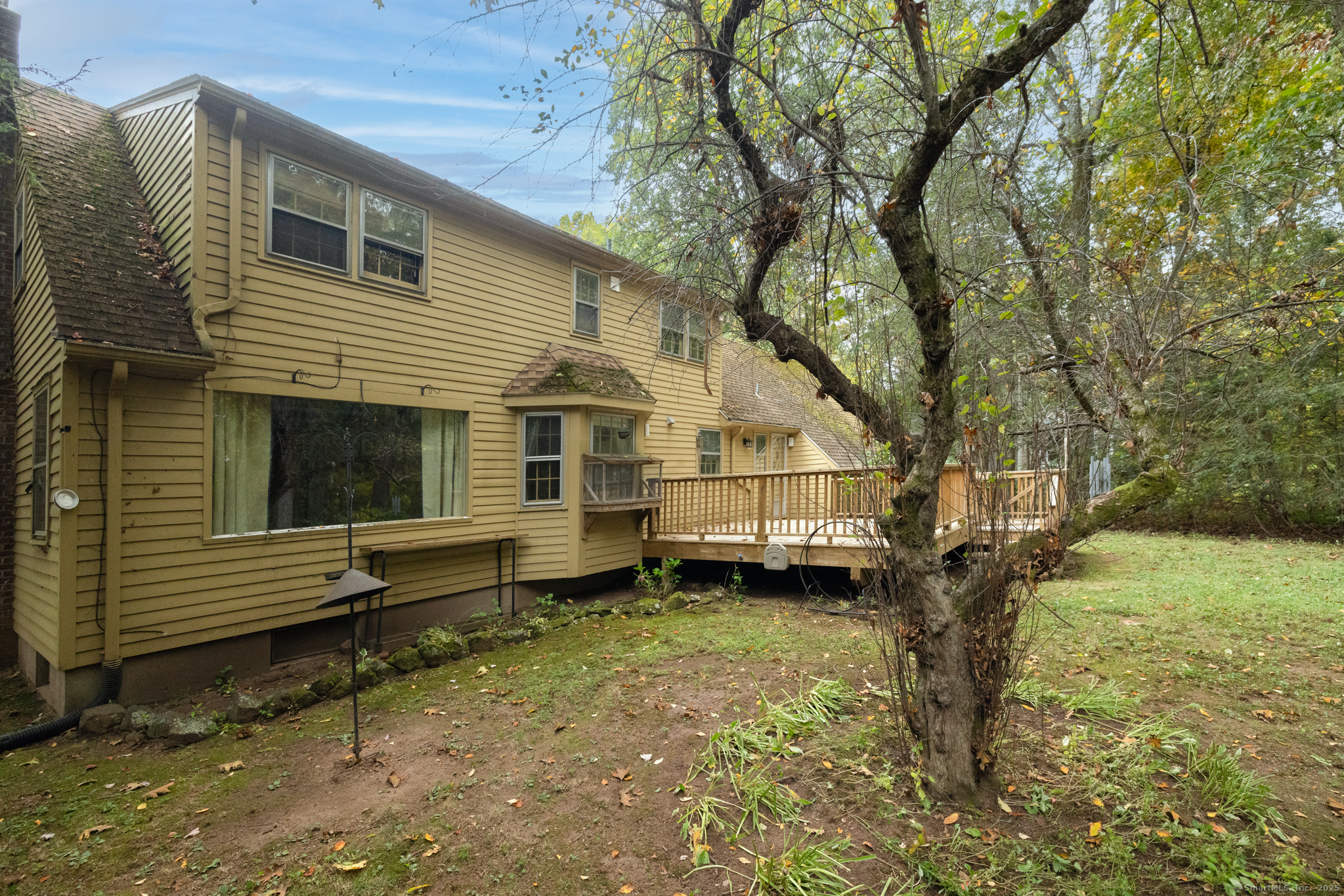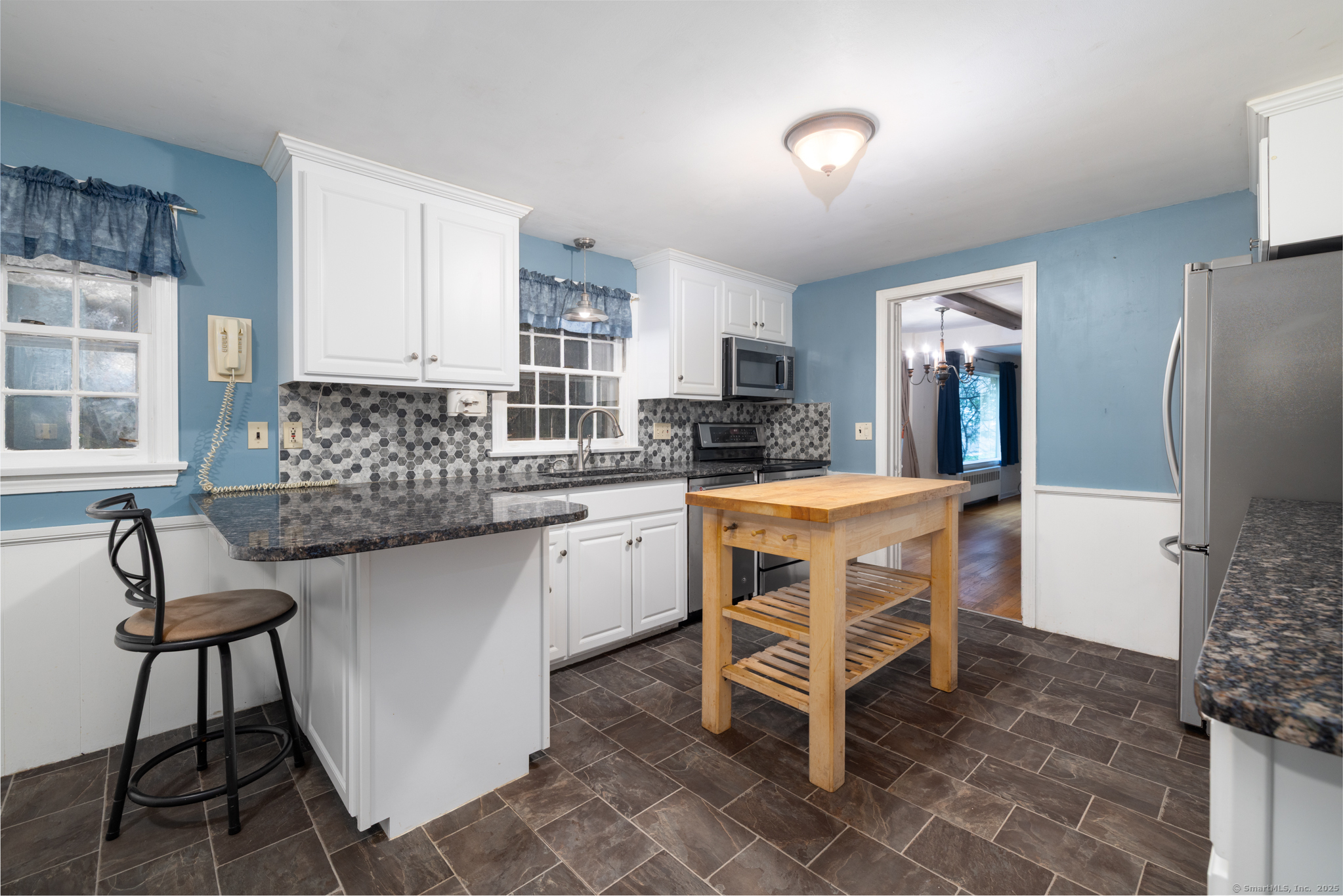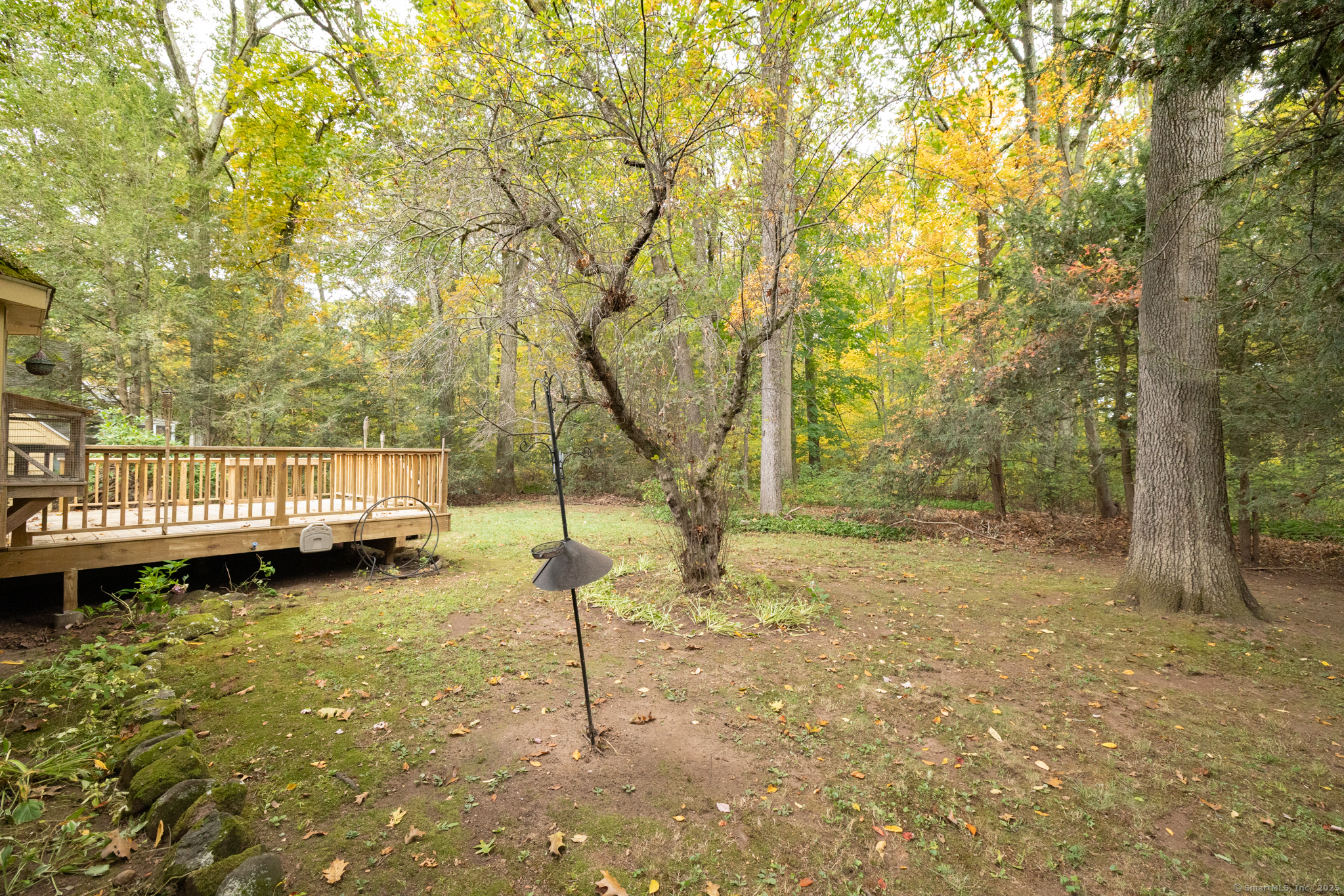 Charming Cape on Over an Acre of land! Nestled on a beautiful wooded 1+ acre lot, this delightful home is loaded with character, space, and recent updates! The remodeled eat in white kitchen with granite countertops and stylish tyle backsplash with breakfast nook and counter opens to a bright dining area and an expansive living room featuring rustic beams, built ins, a stunning masonry fireplace and a large picture window overlooking the lush, private backyard. A bonus main level craft room/office/laundry combo off the kitchen provides extra functionality and so much storage for so many needs. Step outside to enjoy the massive deck-perfect for entertaining or relaxing and watching the birds and soaking in the natural surroundings. The home offers 3 bedrooms and 2 full bathrooms, including a first-floor bedroom and full bath with walk-in shower for flexible living options. Upstairs you'll find two additional bedrooms, a full bath, and a storage area with cedar closet. The lower level is unfinished with plenty of room for storage or future expansion. Recent improvements include a newer furnace and hot water system, and updated bathrooms and renovated kitchen and appliances. One car garage and lots of parking! Conveniently located near all that Southington has to offer- including shopping, restaurants, schools, parks, Rails-to-Trails, Rogers Orchards, Camp Sloper, & easy highway access! Don't miss the chance to make this inviting home your own and get in for the holidays!