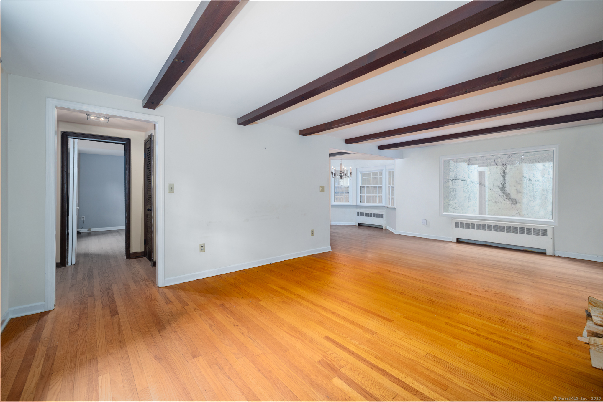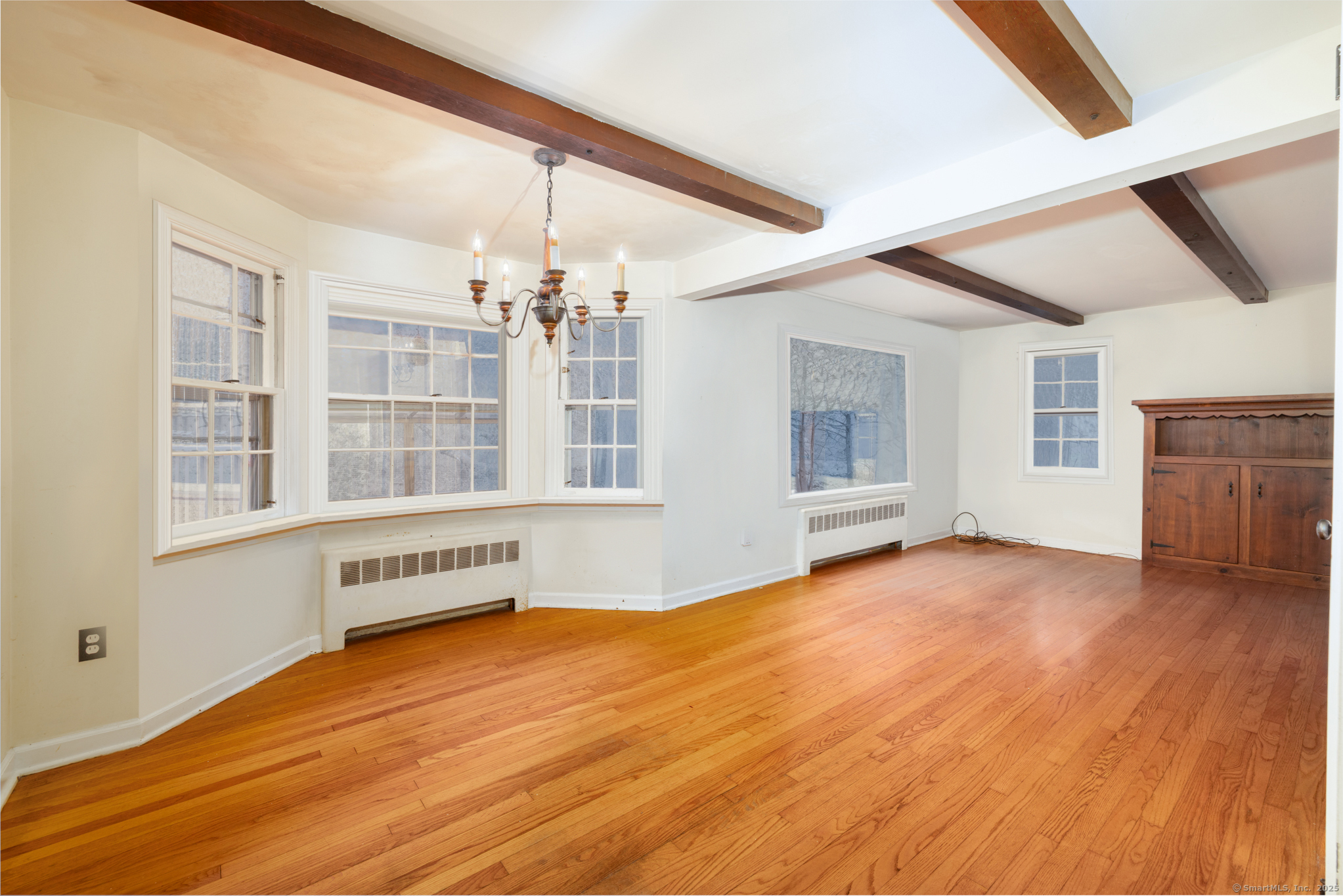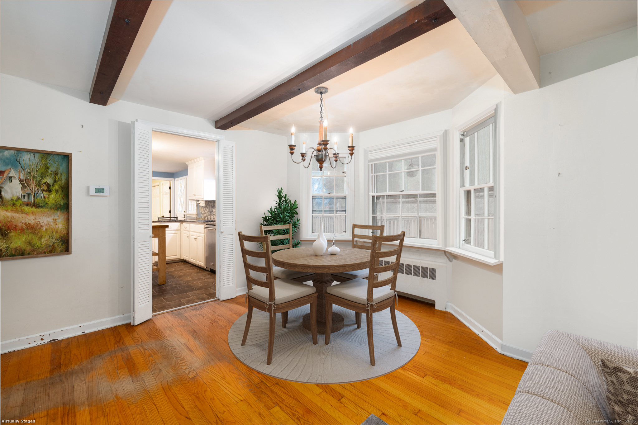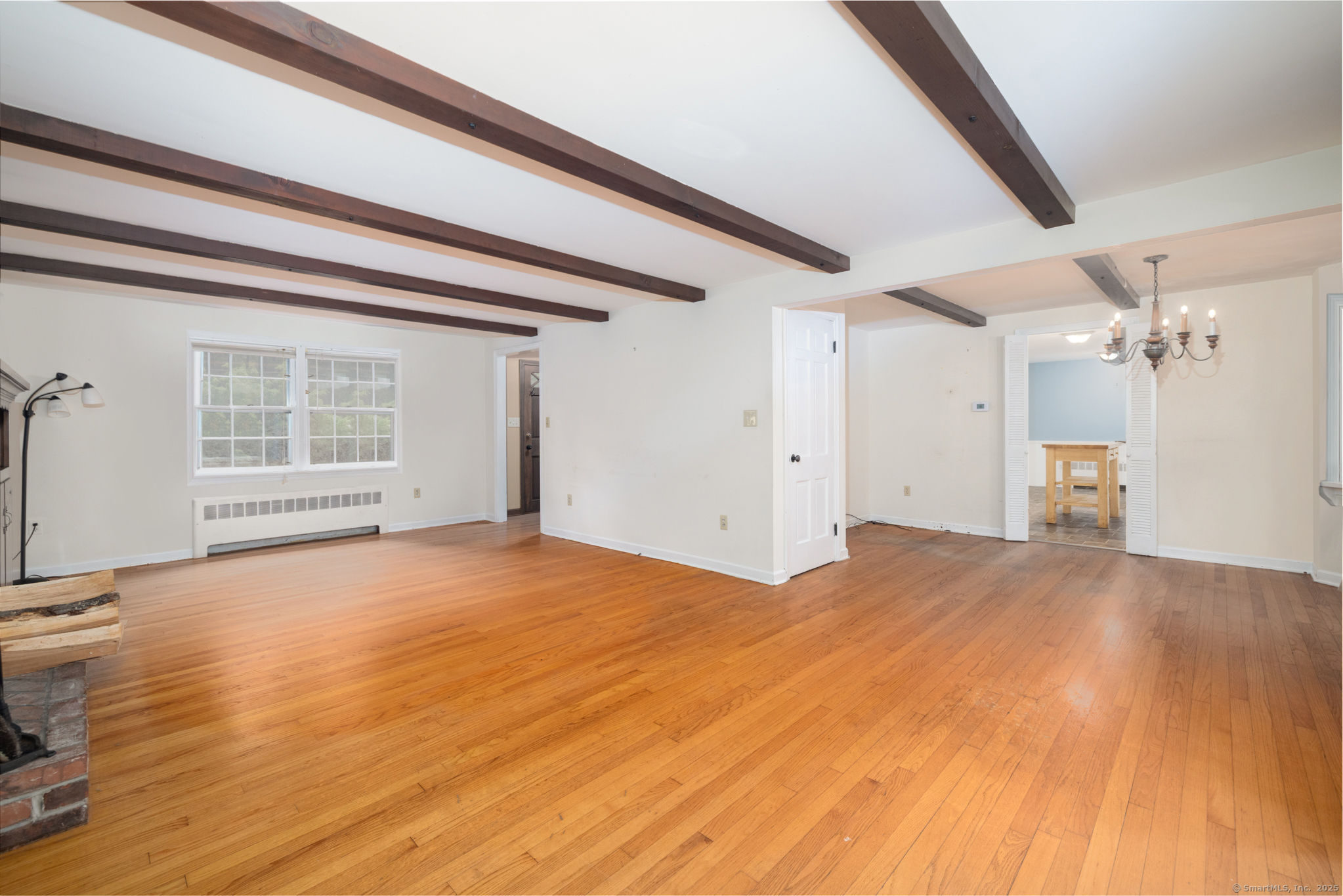 Charming Cape on Over an Acre of land! Nestled on a beautiful wooded 1+ acre lot, this delightful home is loaded with character, space, and recent updates! The remodeled eat in white kitchen with granite countertops and stylish tyle backsplash with breakfast nook and counter opens to a bright dining area and an expansive living room featuring rustic beams, built ins, a stunning masonry fireplace and a large picture window overlooking the lush, private backyard. A bonus main level craft room/office/laundry combo off the kitchen provides extra functionality and so much storage for so many needs. Step outside to enjoy the massive deck-perfect for entertaining or relaxing and watching the birds and soaking in the natural surroundings. The home offers 3 bedrooms and 2 full bathrooms, including a first-floor bedroom and full bath with walk-in shower for flexible living options. Upstairs you'll find two additional bedrooms, a full bath, and a storage area with cedar closet. The lower level is unfinished with plenty of room for storage or future expansion. Recent improvements include a newer furnace and hot water system, and updated bathrooms and renovated kitchen and appliances. One car garage and lots of parking! Conveniently located near all that Southington has to offer- including shopping, restaurants, schools, parks, Rails-to-Trails, Rogers Orchards, Camp Sloper, & easy highway access! Don't miss the chance to make this inviting home your own and get in for the holidays!