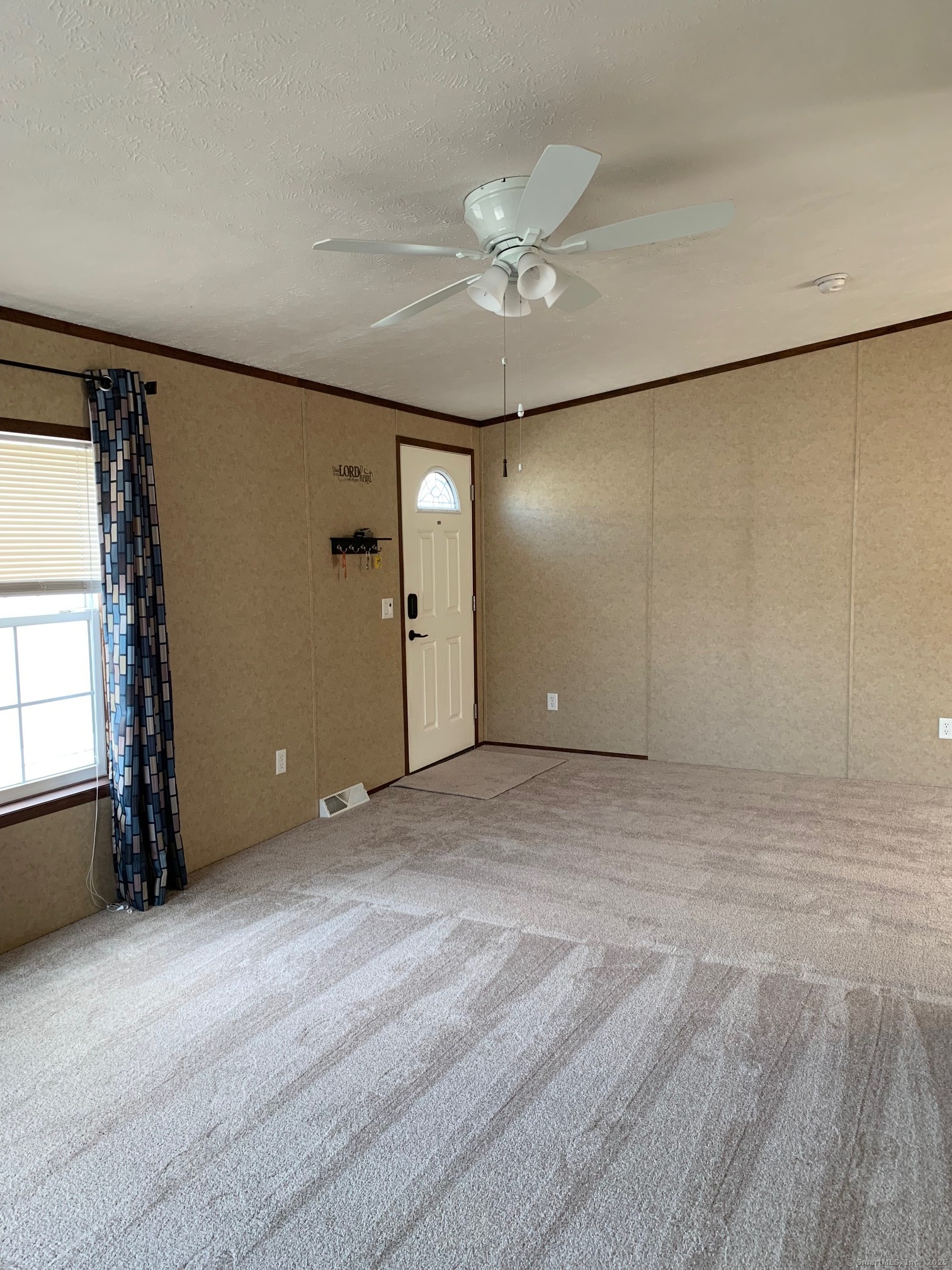 Beautiful double wide home. 2 Large bedrooms. generous closet space. Master has its own full bath. Both baths have sky lights. Open floor plan. Spacious living room with ceiling fan and sliders to small front porch, new carpeting. Dining room off kitchen, loaded with cabinets, tons of counter space. double stainless sinks. laundry conveniently located off kitchen. This home has been deep cleaned and ready for new owners.