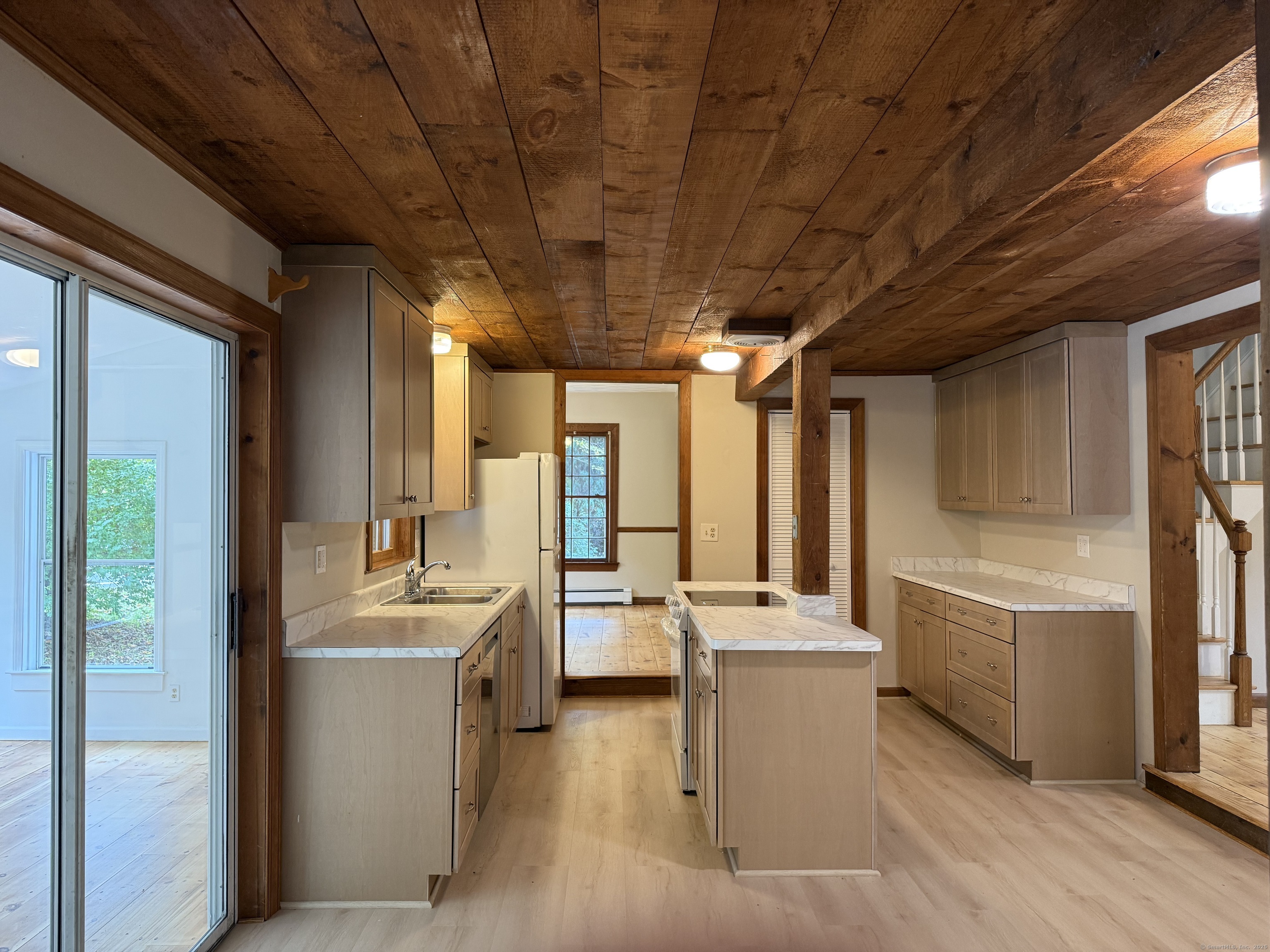 Welcome to the heart of Madison's downtown neighborhood. This charming four-bedroom colonial features beautifully refinished pine wood floors-completely carpet-free-and a renovated kitchen with new cabinetry and a modern oven. The spacious first floor offers a graceful hallway, inviting family room, and elegant dining area. A convenient half bathroom with laundry adds functionality, and a delightful three-season sunroom opens to the deck, perfect for relaxing or entertaining. Upstairs, the primary suite includes a full bath, complemented by three additional bedrooms and another full bath. The home is efficiently heated with natural gas, and the water heater is less than a year old. The property also offers ample parking space for added convenience. Ideally situated near Madison's quaint downtown, you'll enjoy easy access to local restaurants, the library, and all nearby amenities. Take peaceful strolls to Hammonasset State Park and explore its scenic trails. This is a wonderful opportunity to live one of Madison's most desirable locations home.