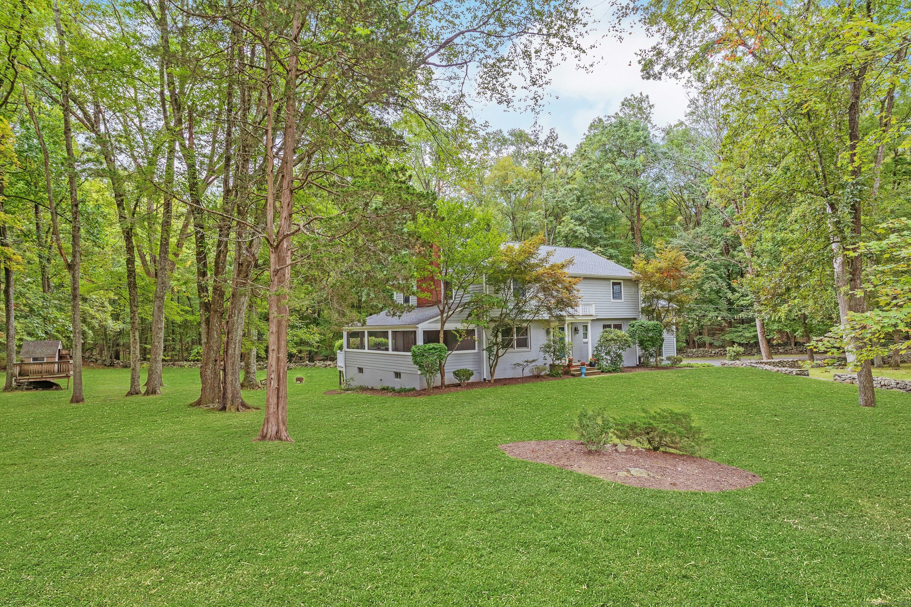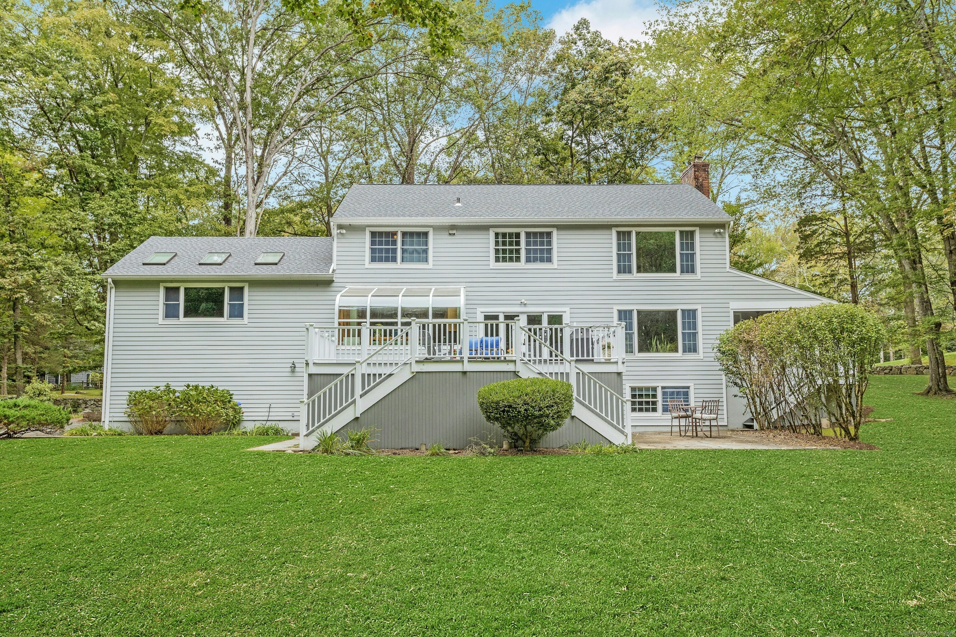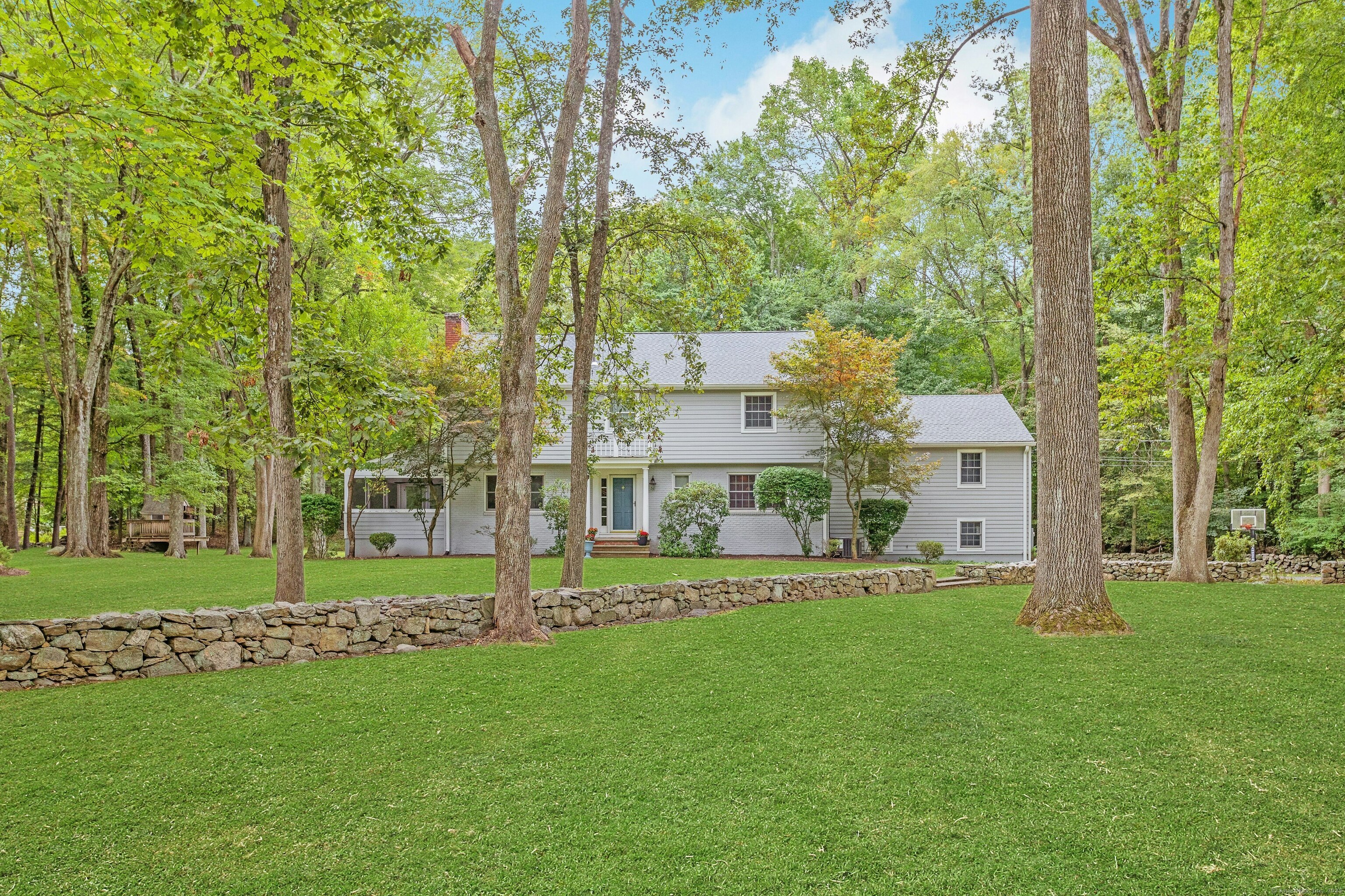 Welcome to 95 Foxwood Road! A well loved, picture perfect 5 bedroom, 3.5 bath Colonial situated on a level 1.83 acre corner lot and located in the beautiful Foxwood Lake neighborhood of North Stamford. Main level boasts a formal living room with a fireplace, home office, formal dining room, sun filled eat-in kitchen, updated powder room and screened porch. Family room, bedroom and full bath or possible in-law/ au pair suite is up a few stairs. The upper level consists of an airy primary bedroom, stylishly updated primary bath, 3 additional generously sized bedrooms, and a shared hall bath with laundry. Walk-out lower level is partially finished; can be used as a second family room, game room, gym, or other. Large additional storage space, second laundry room, utility room, and half bath complete the space. The home is located 7.5 miles to the Metro North train and downtown Stamford, 3 miles to the Merritt Parkway, close to shopping, and the towns of Pound Ridge and Bedford. Not to be missed! * Showings to begin on Friday, 10/24