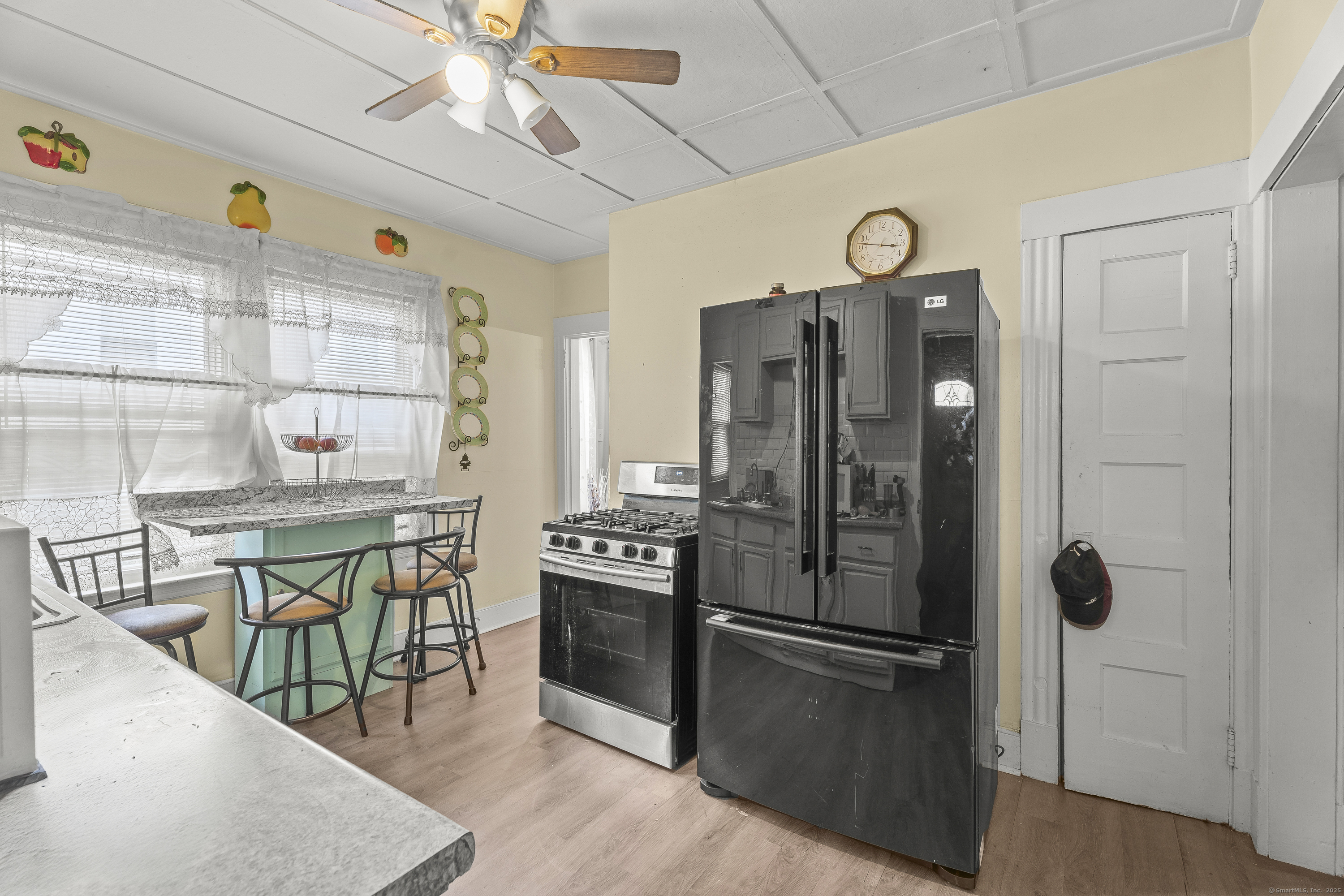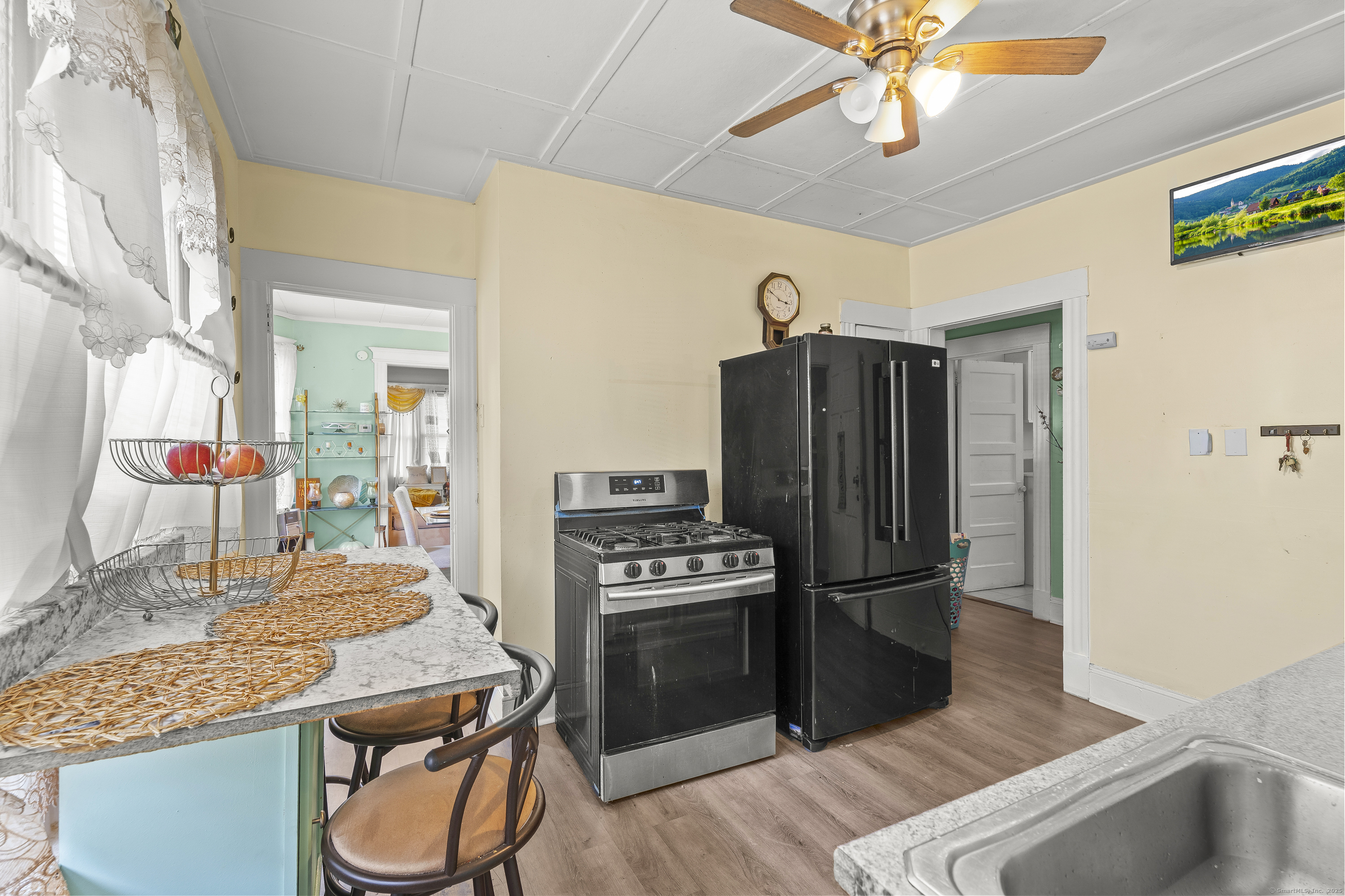 Well maintained two-family home located in the Blue Hills area. Both units feature light filled living rooms and spacious layouts. The first-floor unit offers two bedrooms, a full bath with tub, dining room, living room, kitchen, and pantry area. The second-floor unit has a similar layout as the first floor but with the addition of an enclosed front porch and is currently occupied by a month-to-month tenant. The walk-up attic offers multiple finished rooms and a full bathroom with a shower. The basement was finished in 2023 and provides additional storage space. Recent updates include a 2023 gas boiler conversion for the second floor, 2022 laminate flooring installation, interior painting within the last five years, and a new 2024 water heater tank for the upper unit. Centrally located just off Blue Hills Avenue with easy access to Route 218, Route 44, I-91, and I-291. Convenient to schools, shopping, hospitals, and public transportation. The property also offers ample off-street parking and a practical setup for either owner occupancy or investment.