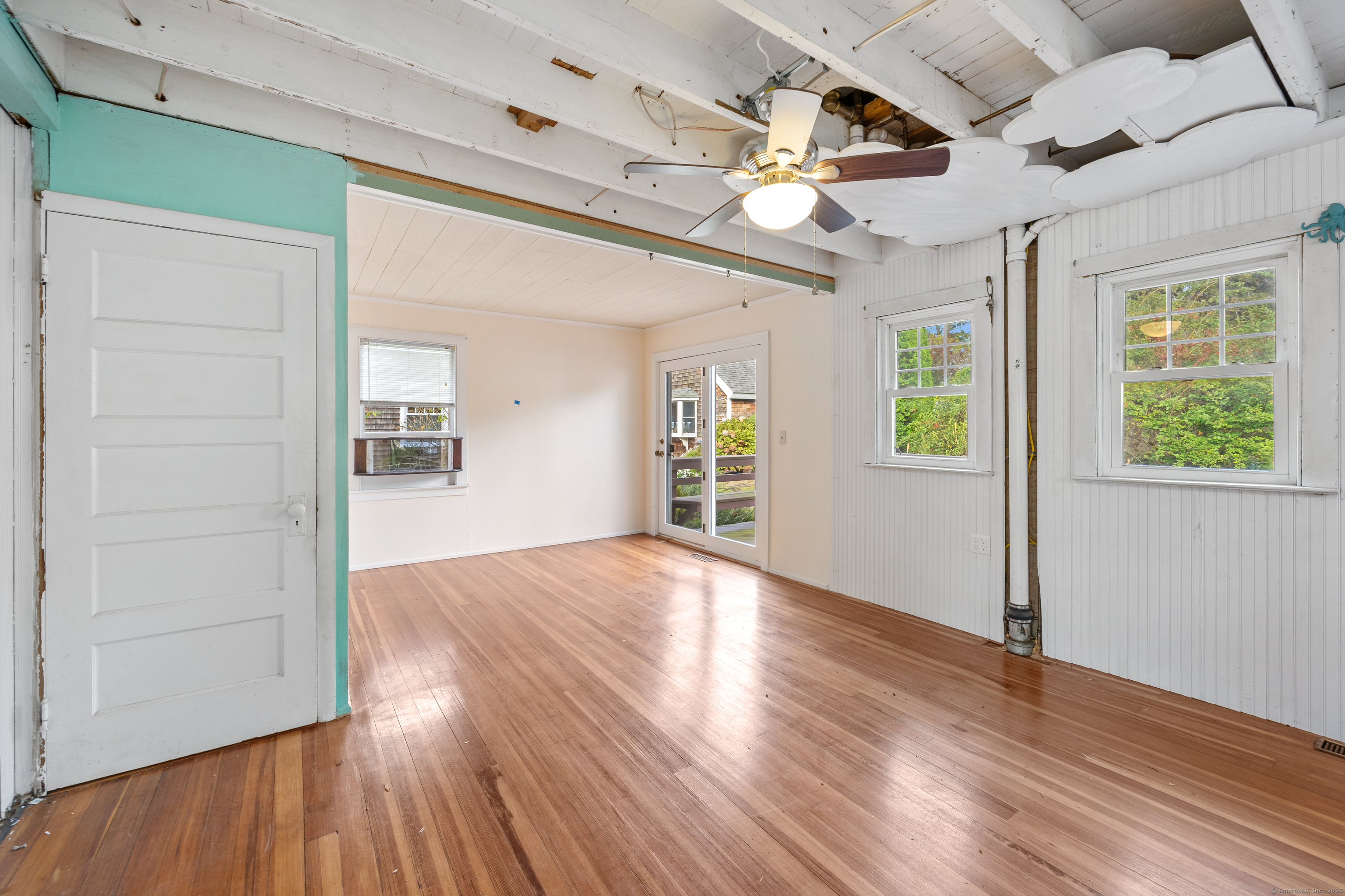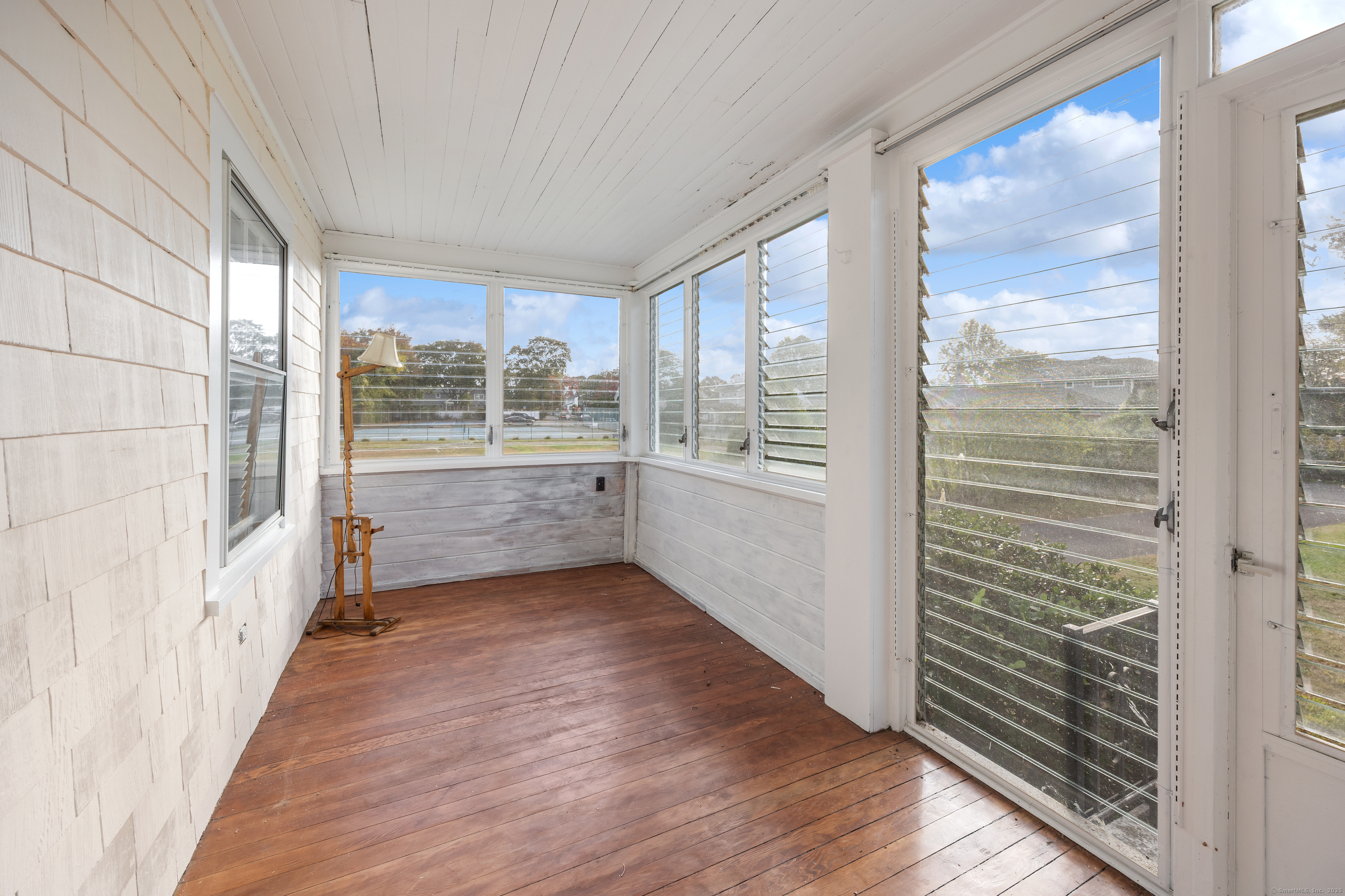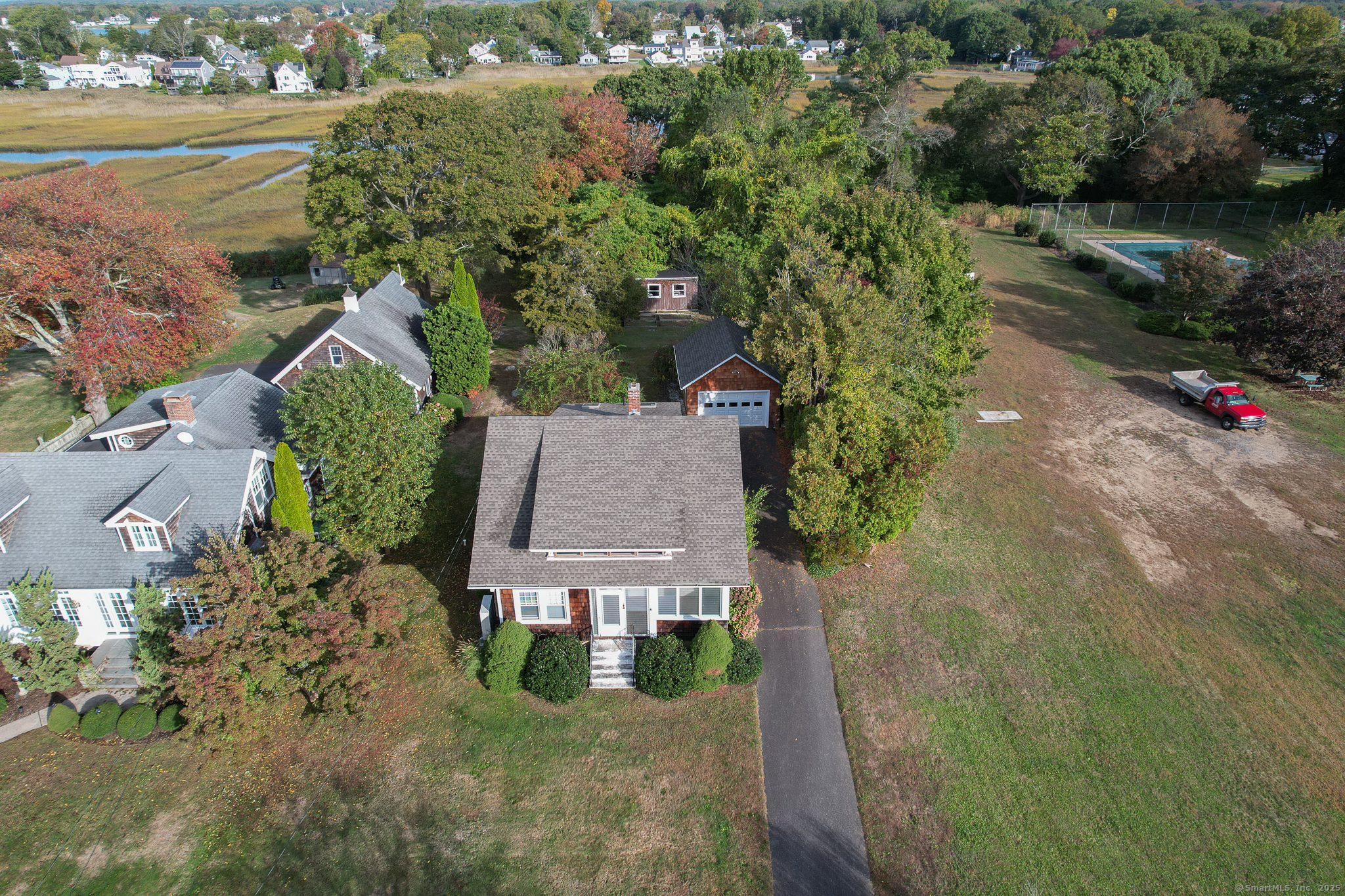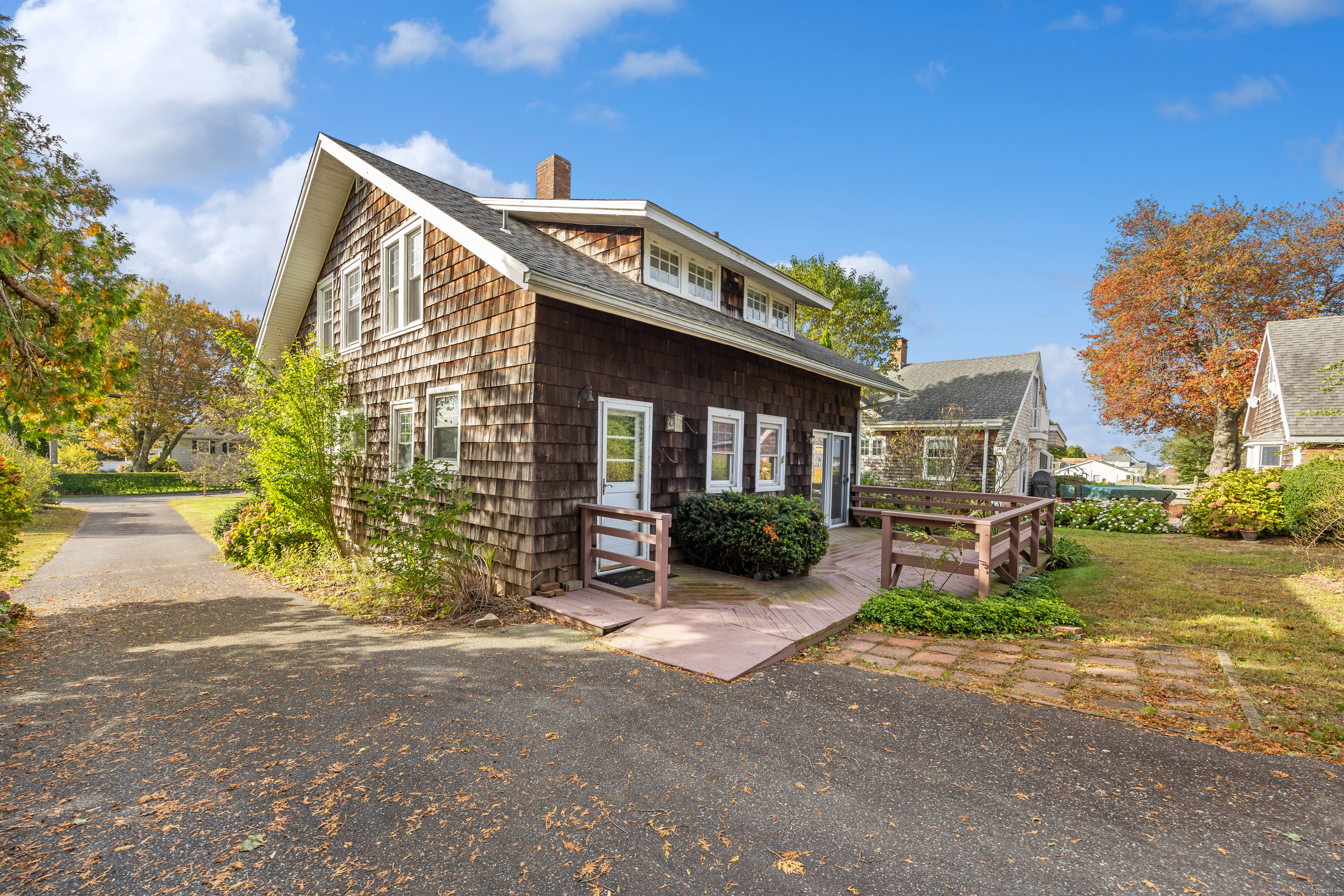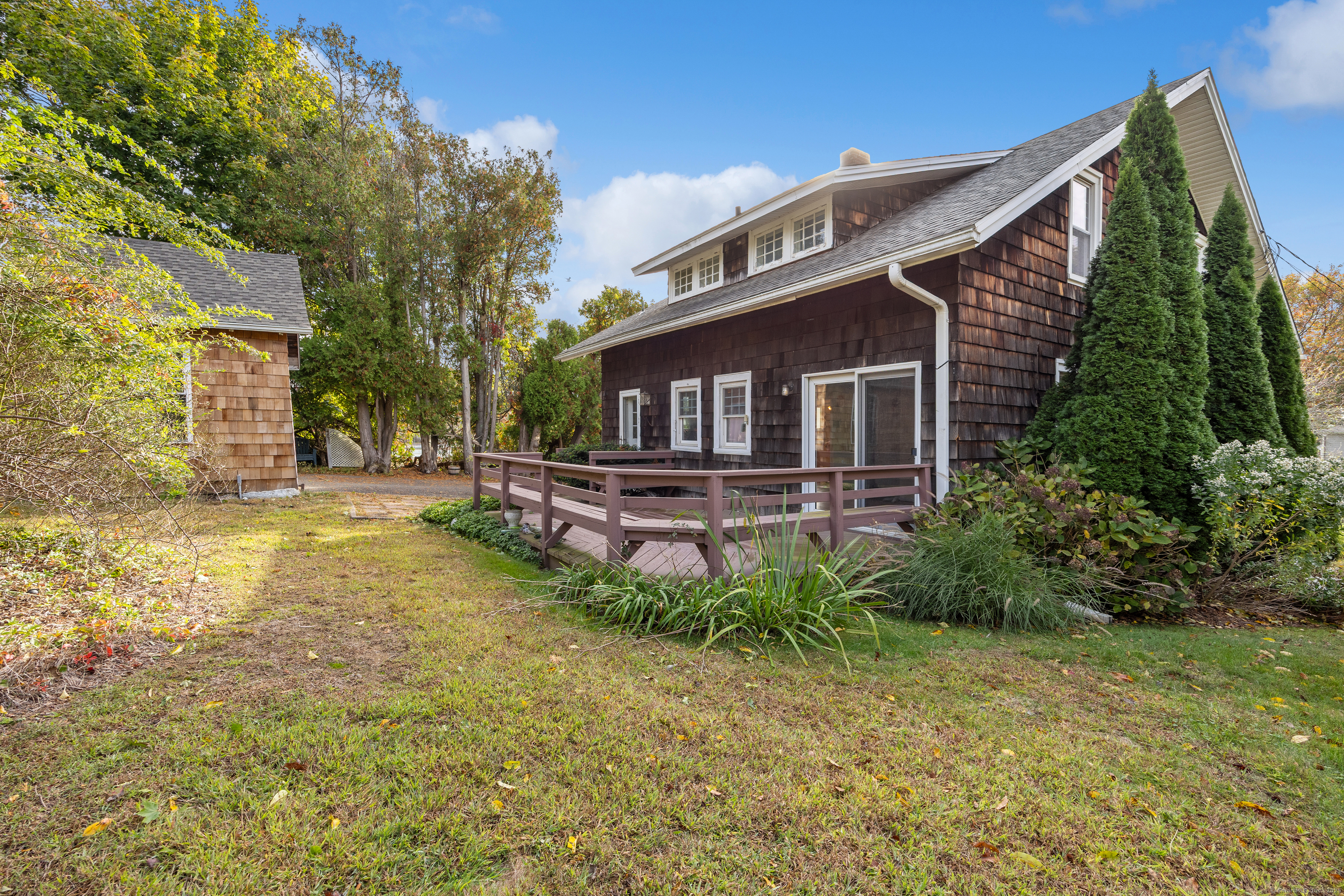 Set along one of Clinton's scenic coastal roads, this classic 1930 cedar-shake home blends timeless character with thoughtful updates. Inside, refinished hardwood floors extend through a comfortable layout featuring a bright enclosed front porch, a living room with a wood-burning fireplace, and a dining room ready for gatherings. The spacious eat-in kitchen retains its vintage charm and is ready for your ideas and updates. Upstairs, three inviting bedrooms share a full bath. One bedroom opens to a covered second-floor porch overlooking the front yard-a peaceful spot to enjoy morning coffee or an evening breeze. The back deck, on the other hand, looks out toward the marsh and Clinton Land Trust area, offering a private view of natural surroundings. Set on a level 0.56-acre lot, the property includes a detached shed, raised garden beds, and plenty of open yard space for outdoor enjoyment. The two-car detached garage was completely refreshed in 2024 with matching cedar-shake siding, new doors, and an opener. Additional updates include a new roof (2021), 100-amp electric service upgrade (2018), and an electric heat pump with central air installed in 2022. Conveniently located near Clinton Town Beach, Hammock Point, and the Clinton Land Trust trails, this home sits within a mile of downtown shops, dining, and the train station-an ideal blend of coastal charm and everyday accessibility. Make an appointment today to see this home and all that Clinton CT has to offer.