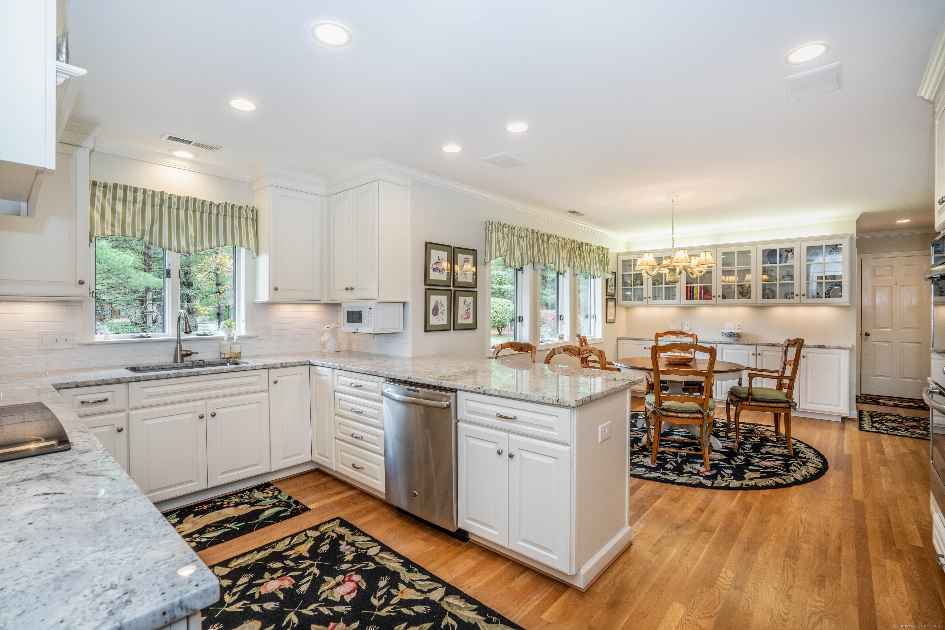 Spacious, end unit ranch style home at Balbrae with 4 brs, 3.5 baths, and over 3600 sq feet of living space on two levels. Diligently maintained by the current owner, this lovely property offers many unique features, including a sunny, eating space, kitchen, formal dining room, large living room with a beautiful fireplace, a large master suite with adjoining bath plus two additional bedrooms and another full bath, all on the first floor. The lower level features a huge rec room that walks out to a private deck, a guest suite with a private bath, a spacious office or project area with loads of built-in cabinetry, a darling nursery, and a large unfinished storage area. An amazing property, don't miss seeing it, it will go in a flash.