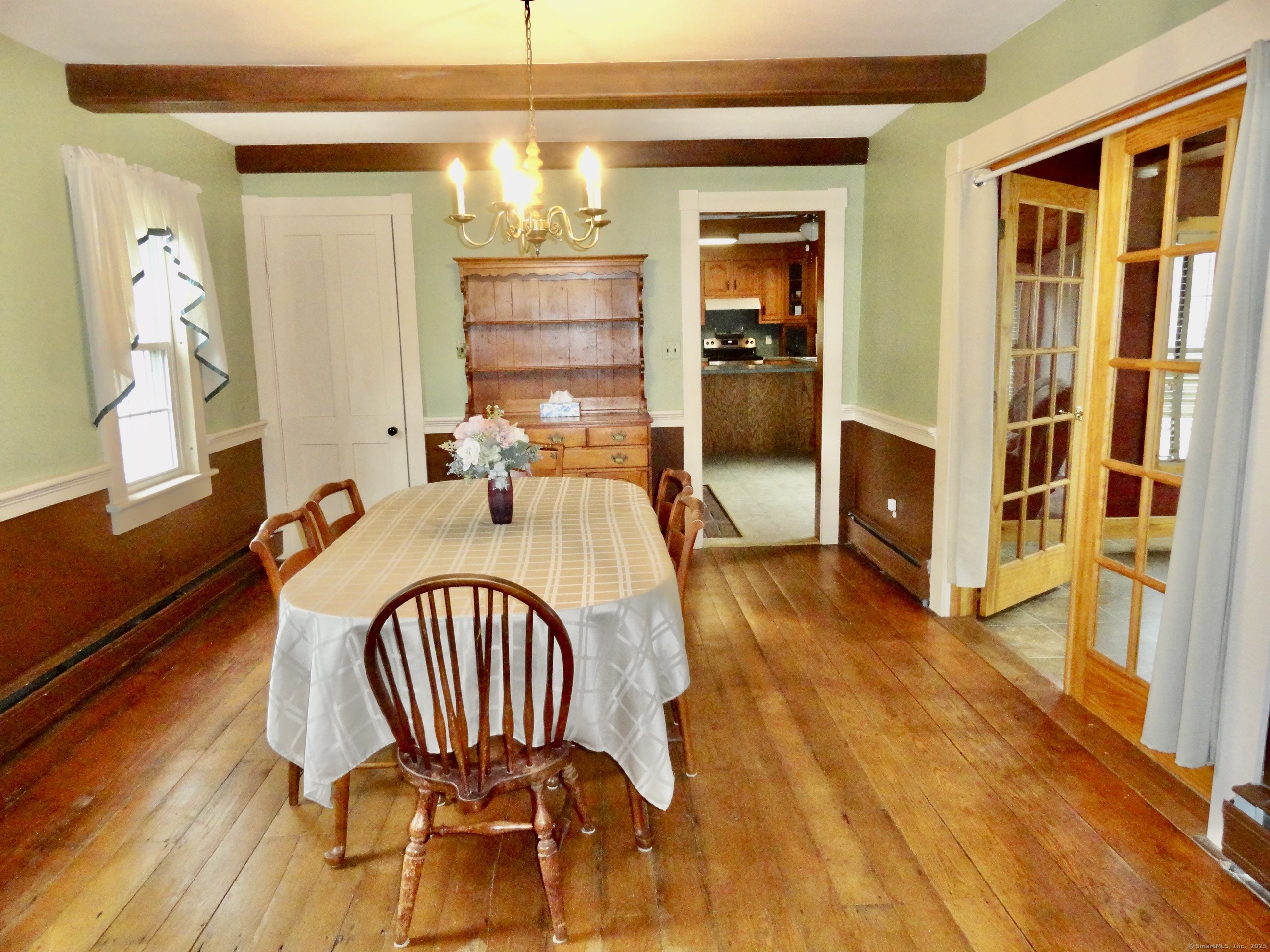 Dont miss this Fantastic opportunity to own a multi-generational, family estate. This 4 bedroom home features a first floor bedroom and full bath, formal Dining room, Large eat-in kitchen and Sunroom. 3 bedrooms with full bath on the 2nd floor. This Historic home built in 1830 has all the charm of yesteryear but with all the modern updates you'd expect for a growing family. From the working wood fireplace in the kitchen to the original wide plank hardwood floors and exposed ceiling beams with original doors and trim. Improvements include thermal paned windows, updated kitchen and baths, freshly painted inside and out, 2 yr old roof, rebuilt chimney, all new plumbing 2023 and a sunroom addition in 2007. With over 7 acres of land this home has a carriage house with 2 car garage with upper and lower levels. The lower level once housed goats with water hook-up (needs new pump). Barn was completely rewired in 2010. The field, now overgrown once contained horses, cows and goats and can be easily resurrected. An additional shed was once used as an apple cooler. Fenced in dog kennel completes this lovely Colonial. Call today for your private tour and go down memory lane.