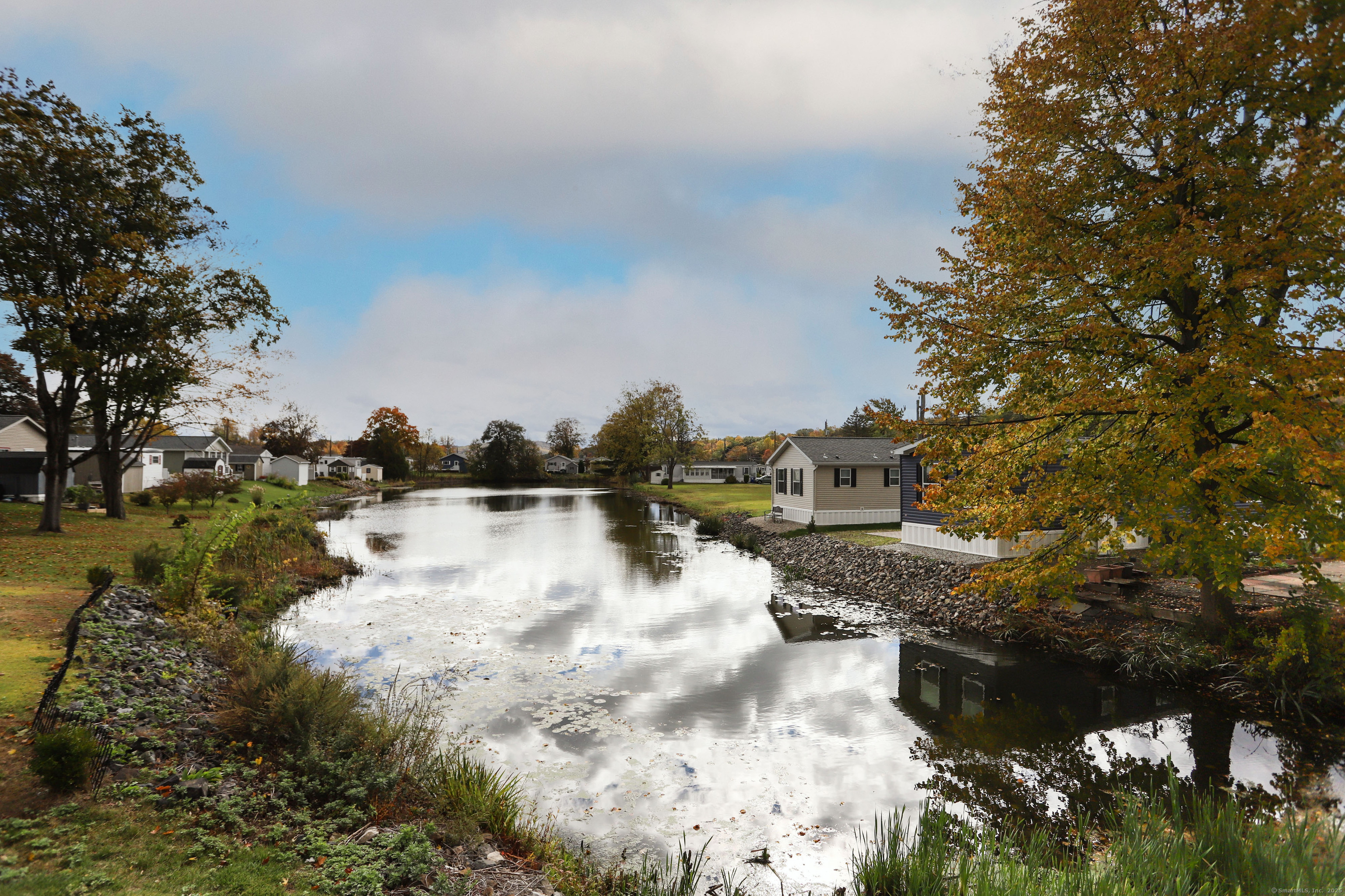 Looking for an easy to maintain home in a 55 plus private community? This 9-year-old manufactured home is the one, it's in great condition. One level living at its finest! The open floor plan greets you at the door with the living room, dining room and large kitchen with a center island, granite countertops, stainless steel appliances and an abundance of cabinets. There is a laundry room with even more storage. The spacious primary bedroom offers a walk-in closet and a full bathroom. The second bedroom is also a generous size with a large closet. You will also find the second full bathroom in the hallway. Extra square footage has been added on to both of the bedrooms from the original floor plan. Engineered hardwood floors thru-out with exception to the tiled floors in the bathrooms. There is a lovely covered front porch, a large backyard deck overlooking a pretty pond, room for a garden and a large shed. Central air, propane heat, vinyl siding, trex style decking. Driveway has two parking spots. What's not to love!!!! It's time to enjoy all that this Lakeview community has to offer, a clubhouse with a full kitchen and a screened in porch overlooking the outdoor pool for summer fun! Close to shopping, restaurants, parks and highway.
