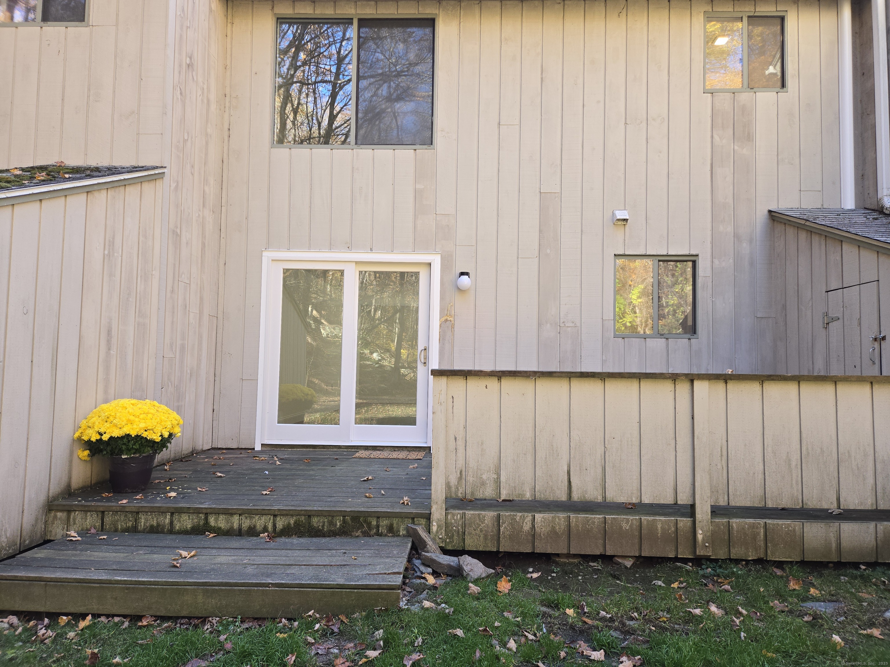 North Guilford Little Gem! Welcome to Lake Quonnipaug Hill, one of Guilford's most desirable condo communities-just a short stroll from beautiful Lake Quonnipaug, perfect for kayaking, swimming, and peaceful waterfront activities. This remodeled townhouse-style condo with 2 bedrooms and one and a half bathrooms shines with a brand-new kitchen featuring new appliances, butcher block countertops, and stylish finishes. The main living area boasts new LifeProof vinyl flooring, while the upper level offers new plush carpeting for comfort and warmth. Both bathrooms have been thoughtfully updated-enjoy a new vanity in the half bath and a new shower and vanity in the full bath. Fresh paint throughout completes the modern, move-in-ready look. The open floor plan fills the home with natural light, creating a bright, inviting space. Step from the back deck to a large shared backyard, ideal for relaxing or entertaining while surrounded by nature. Just minutes from Guilford's historic green, shopping, dining, and commuter routes, this condo offers the perfect balance of peaceful lakeside living and everyday convenience. Nothing to do but move in and enjoy life at the lake!