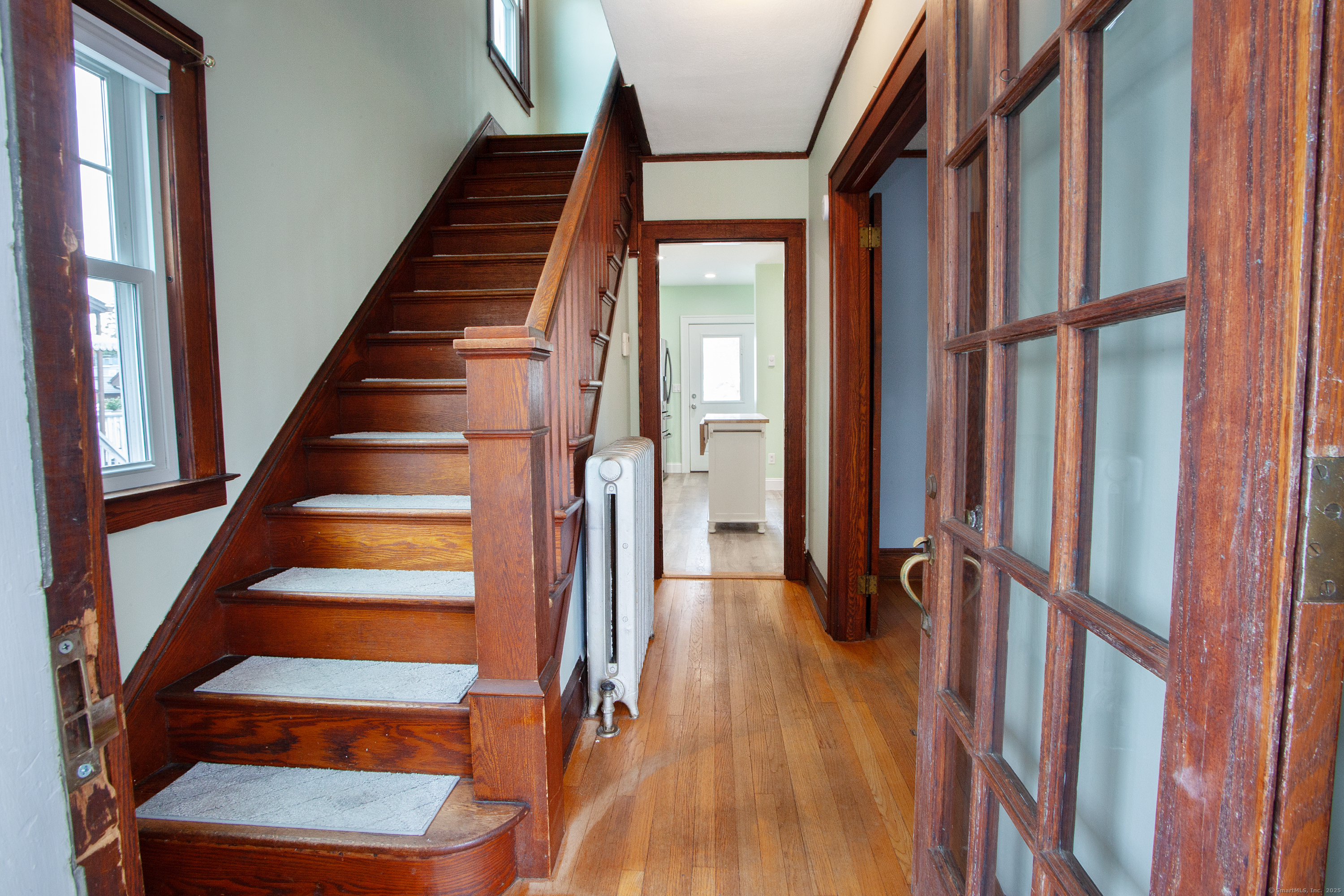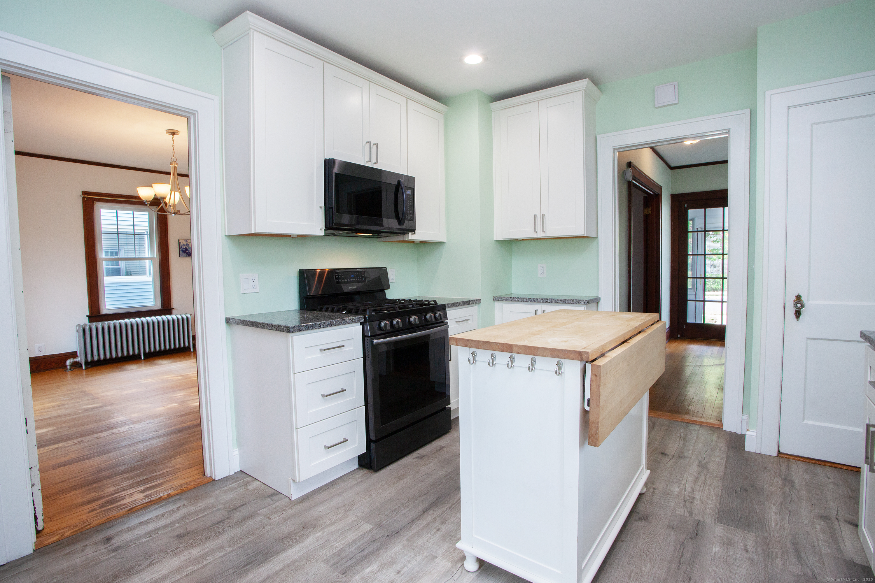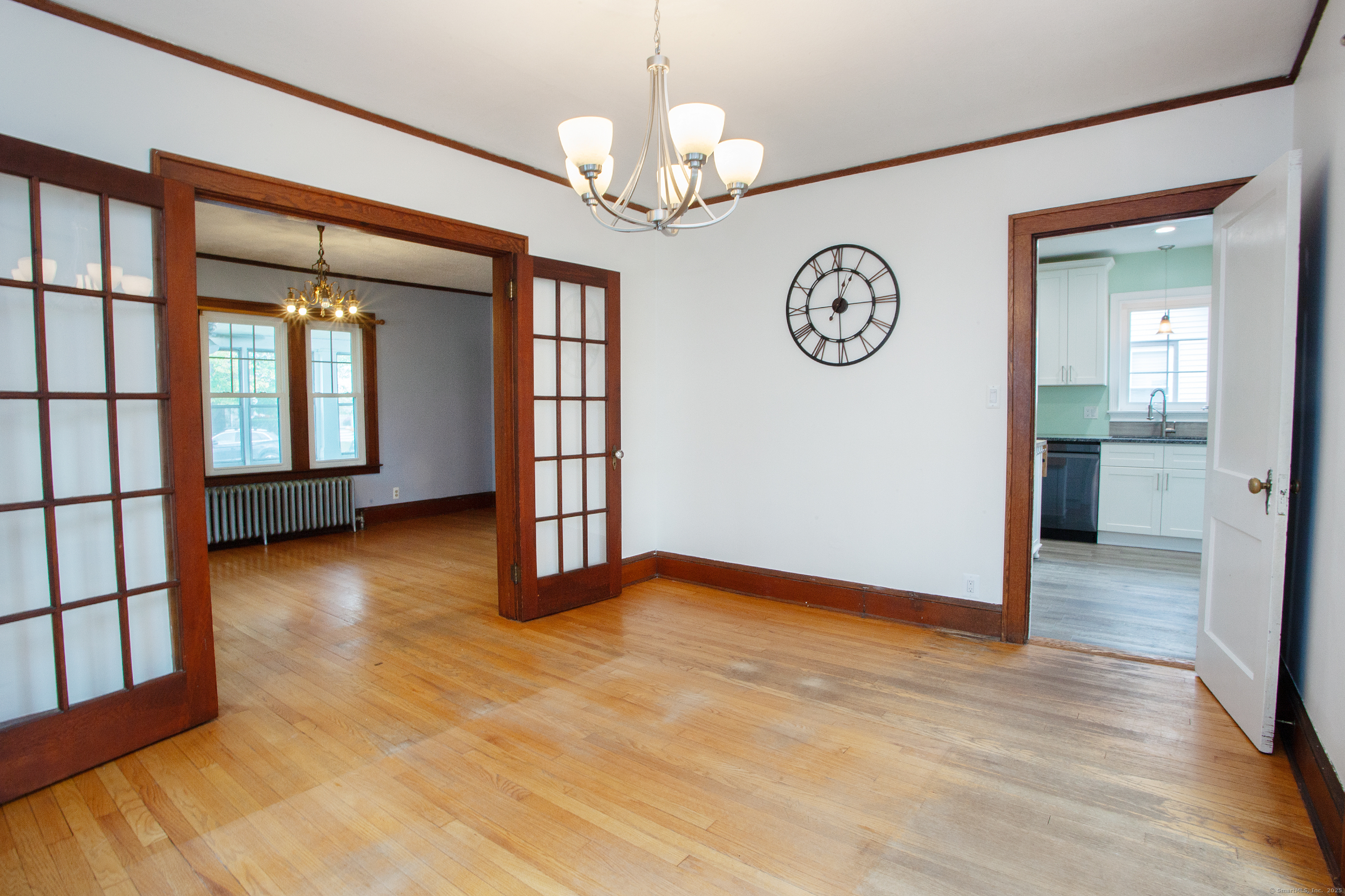 Don't miss this charm filled home with a beautiful new kitchen featuring white shaker cabinets, granite countertops, island and new appliances. You will love the inviting living room with hardwood floors and french doors open to the generous dining room. The dining room also features french doors to the deck overlooking a fabulous fully fenced flat backyard with patio area. The enclosed front porch is the perfect place for relaxing or entertaining. Upstairs you will find three sun filled bedrooms. Additional features include a new half bath, updated Harvey windows throughout the house, high ceilings, gas heat and a one car garage. Conveniently located half a block from Smith STEM school and close to Park Road dining. Seller is offering $1000 credit for porch flashing.
