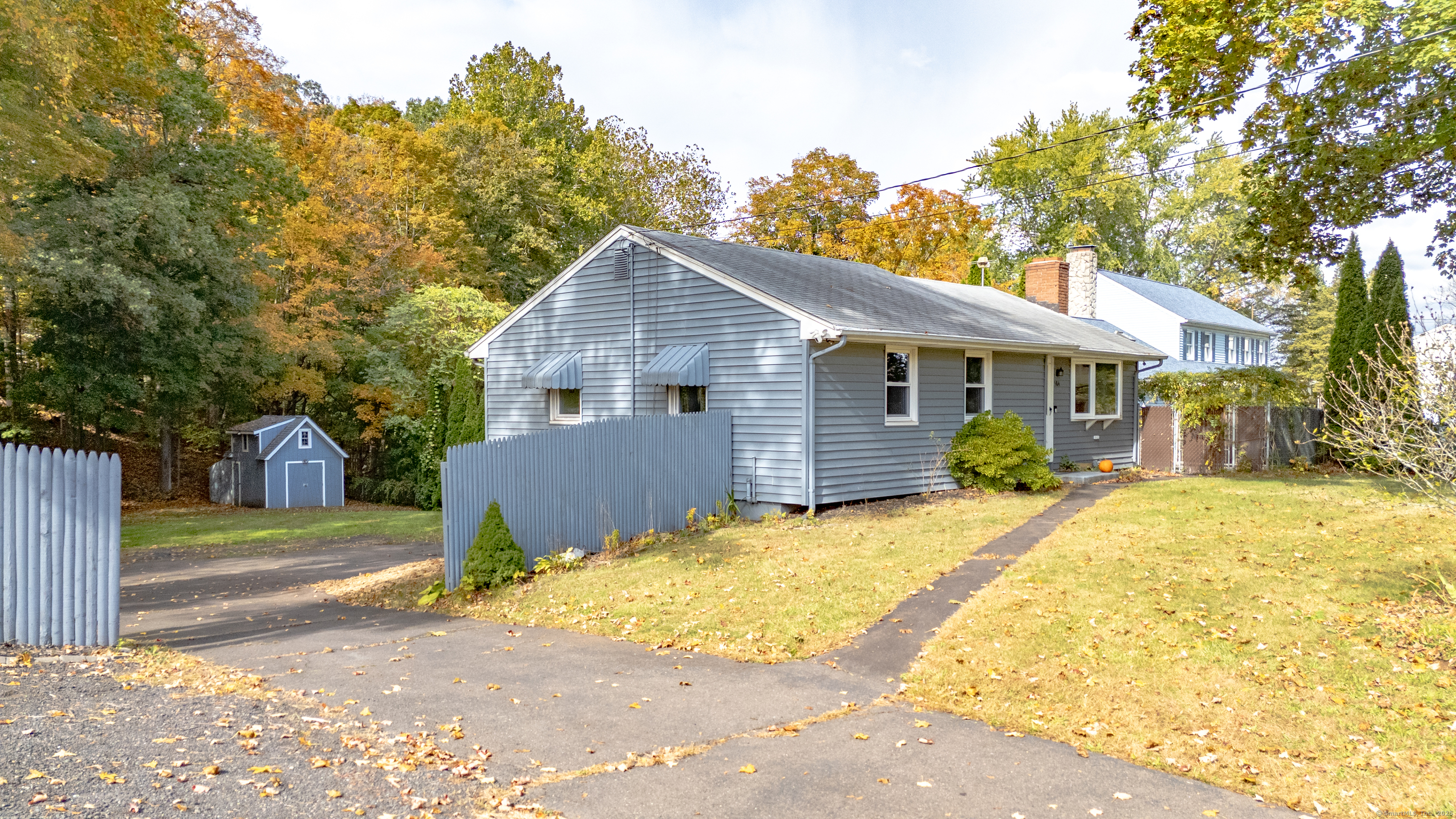 Charming Ranch-style home in Meriden, featuring 3 bedrooms and 1.5 baths. This solid property is located in a fantastic spot and is ready for its next owner. The functional main level offers 1,006 square feet of living space, with hardwood floors and a cozy fireplace perfect for chilly New England evenings. All bedrooms include ceiling fans for comfort. The lower level offers extra space with an additional 500 sq. ft. of finished space, ideal for a rec room or home office, plus a convenient half bath and laundry combination. The yard provides a great space for relaxation and play, and the prime location means you are moments from the local Beaver Pond Park, offering a dedicated dog park, scenic fishing, and canoeing. Commuters will love the excellent highway access to I-691 and I-91. The property also features a storage shed and a 1-car garage under the house. Don't miss this chance to tour this convenient Meriden home today.