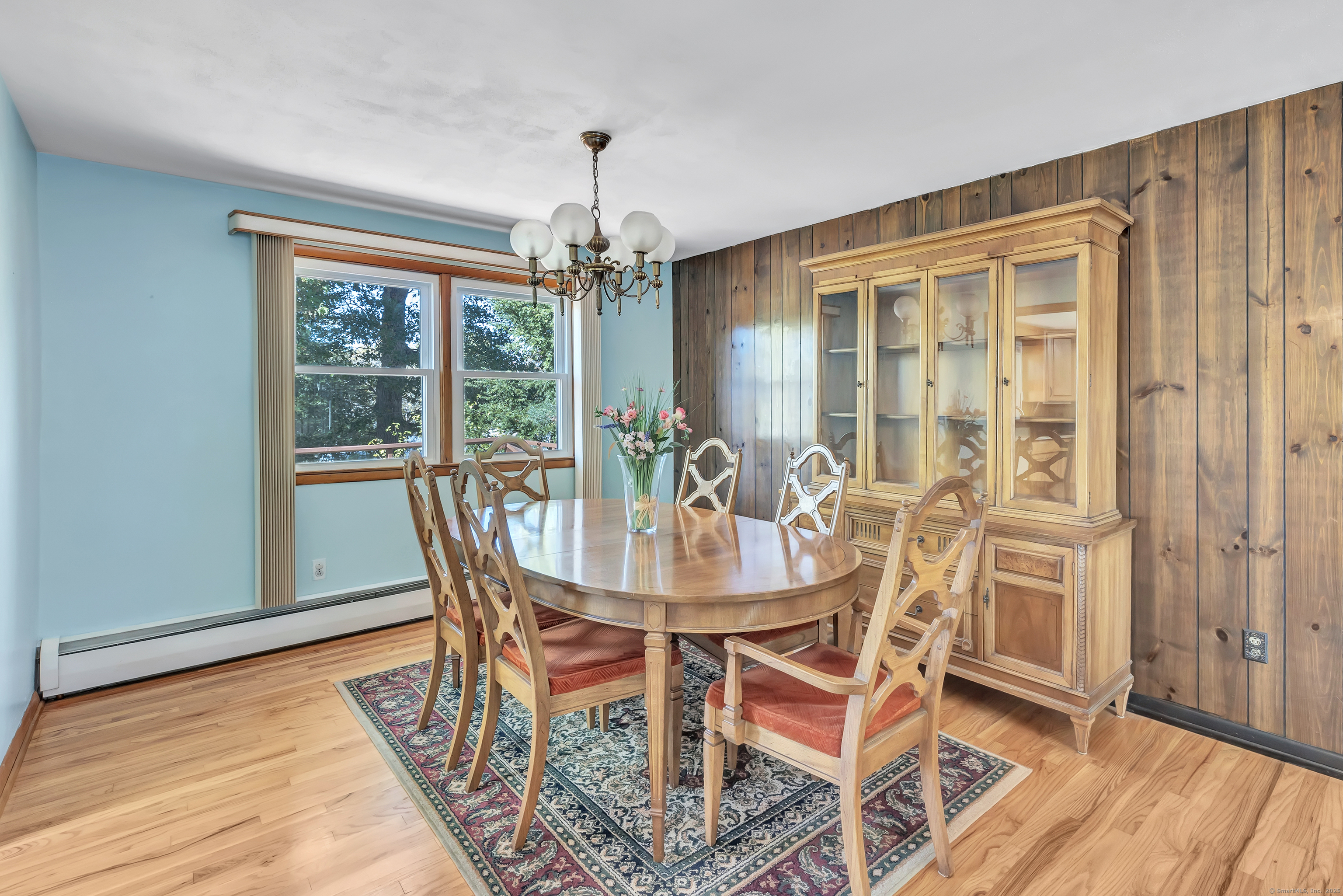 Beautiful home nestled on a quiet tree lined street with sidewalks for taking strolls. Kitchen flows into dining room and living room. Gleaming hardwood floors throughout main level. Great deck and yard for outdoor entertaining. The home has a new roof and heating system installed in 2022. Downstairs has a extra 726 square feet with a family room and half bath. Also has a extra kitchen and laundry. This home is move in condition and ready for its next owner.