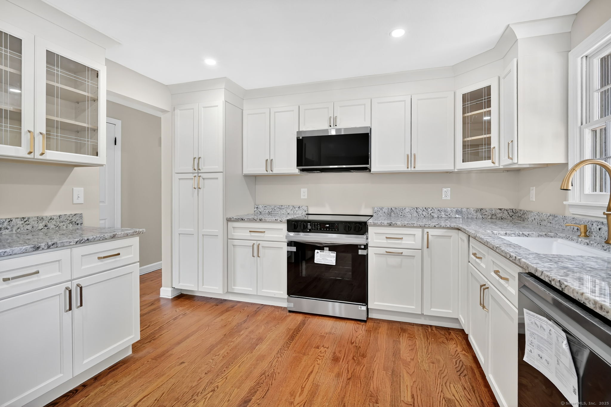 *Highest and best offer by Sunday 12pm, 11/02* Welcome to this beautifully renovated Ranch home featuring 4 bedrooms, 3 full bathrooms and oversized two car garage with attic above the garage, combining comfort and convenience in charming neighborhood. The heart of the house is the brand-new kitchen featuring sleek cabinetry, stainless steel appliances, and granite countertop. The updated bathrooms offer a fresh, clean look with stylish fixtures. Every detail has been thoughtfully curated throughout the interior: fresh paint enhances the airy ambiance, while new recessed lighting illuminates each room beautifully. Red Oak hardwood floors flow throughout the main living areas, bedrooms and luxury Vinyl in family room. The unfinished basement provides storage space or ready for future expansion. Move-in ready and waiting for you to make it your own!