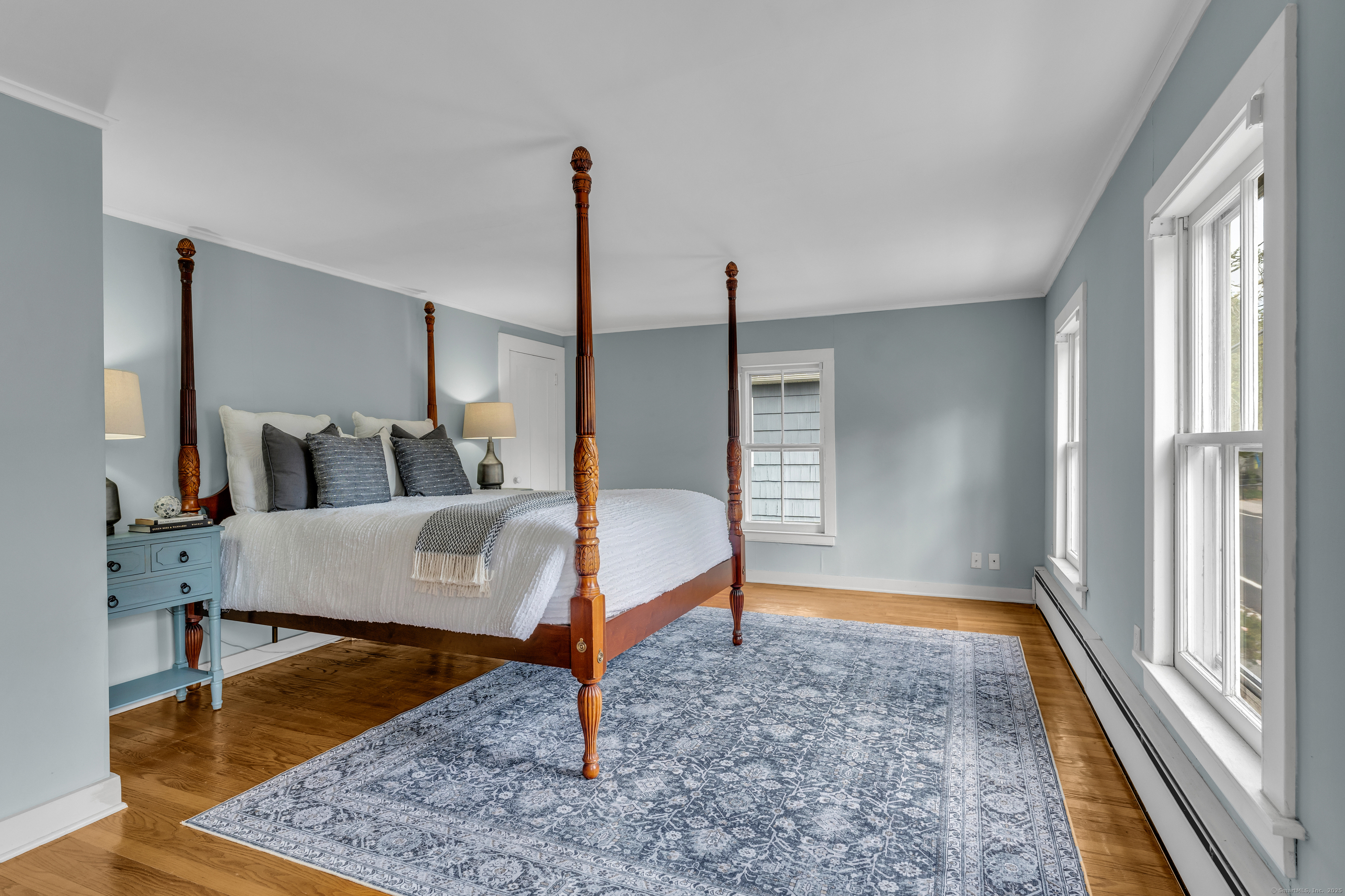 Built in 1845 this in-town colonial is located four doors from the Guilford Green. Originally, a single-family home, it was a 2-family dwelling for many years and, more recently, a combined residence and home law office It could be either a one-family home, a two-family home, or a home office. It includes a stunning first floor consisting of a formal Living Room, Dining Room, Family Room, first floor Bedroom, full Bath with shower in tub and room for a nicely sized kitchen which would need to be installed. There is a stairwell to the second floor and a bonus room and mudroom providing access to both the fenced-in yard and the large, attached garage. Two rooms on the 1st flr have fireplaces that have not been used by the current owner but could potentially be reopened if desired. The 1st floor is also served by a town approved ramp entrance The second floor is a great apartment with two bedrooms, an up-to-date full bath, and laundry. In 2006 the house was significantly expanded by a Nelson Denny designed additions include a great room consisting of a large living room with high (10' to 14') ceilings, lots of windows and a belvedere providing natural light, as well as a gas fireplace, floor to ceiling bookshelves and cabinetry. The second floor can be reached by either the stairwell from the front door or a second stairwell providing access from the living room to a covered patio, fenced side yard and parking area.