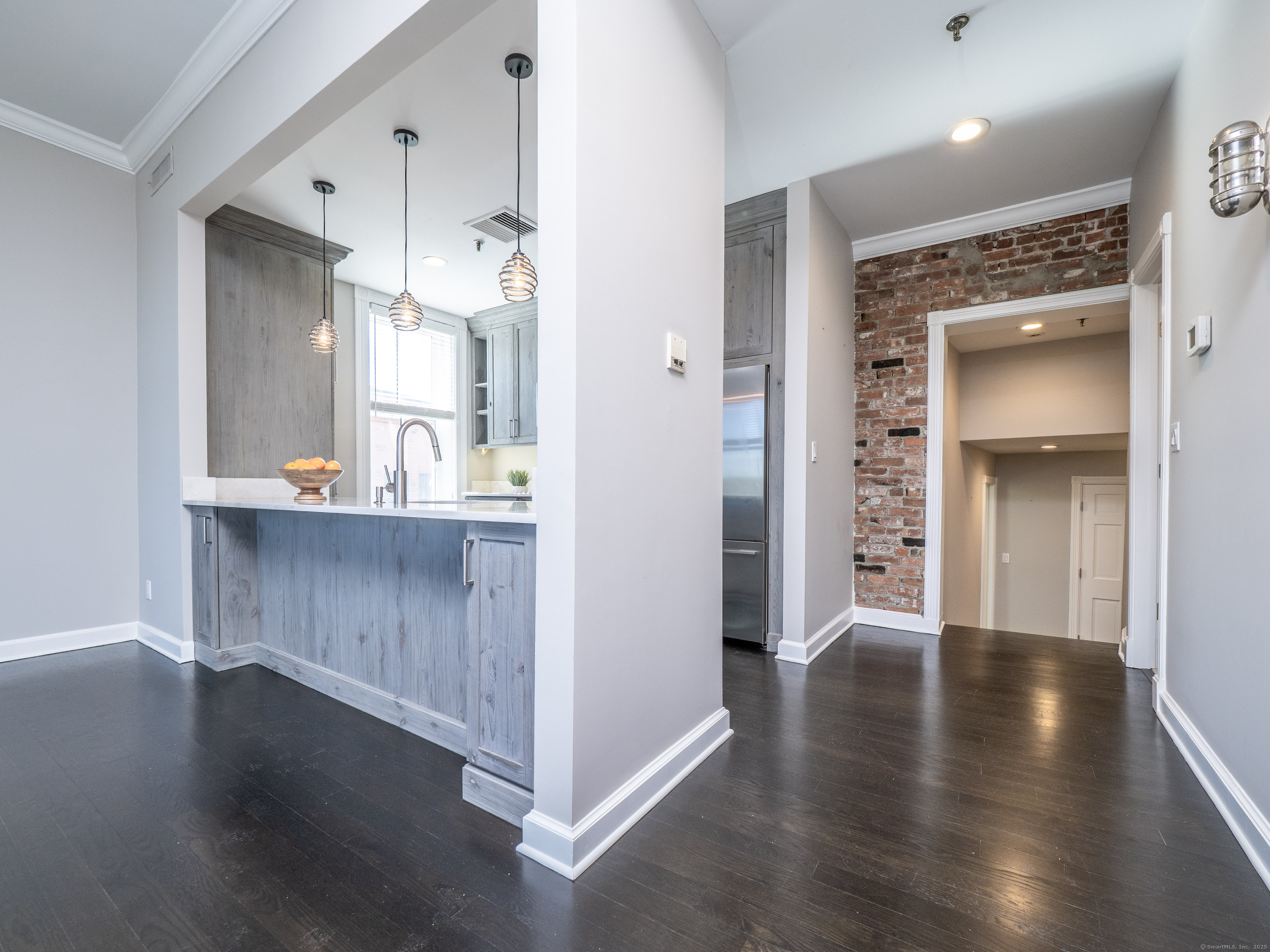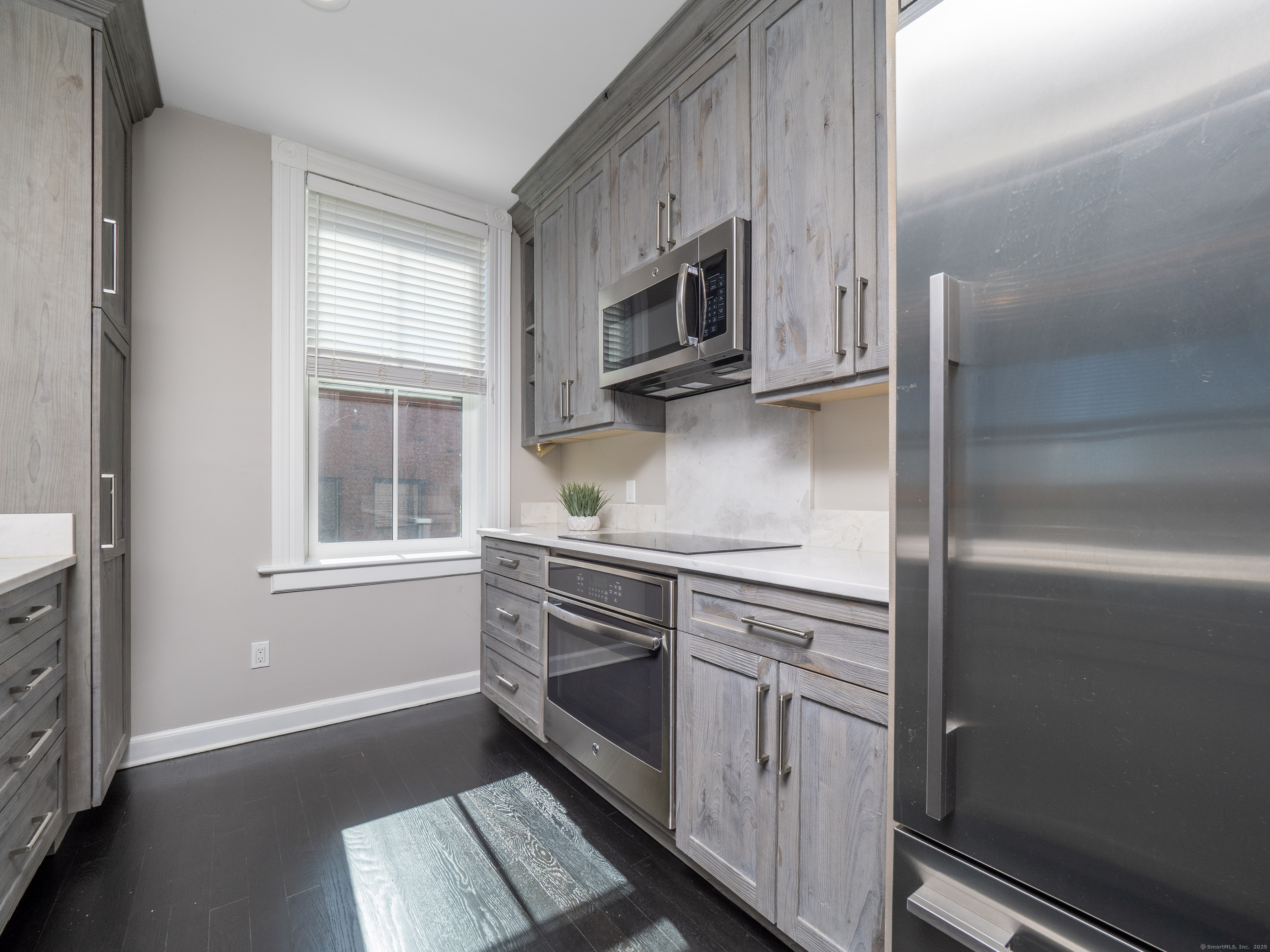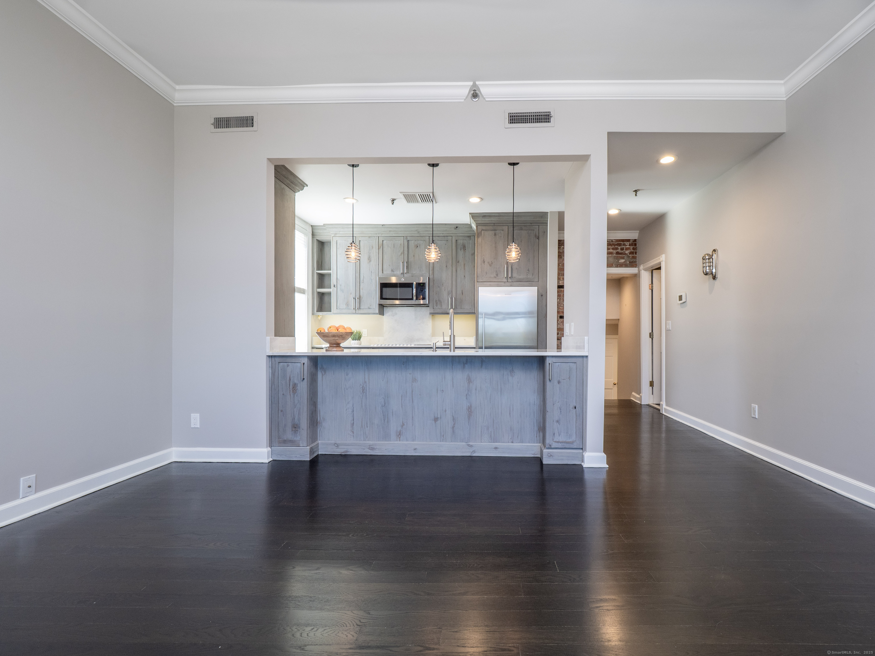 Stylish and sun-drenched 1BR, 1.5BA condo offering 832 SF of open-concept living with water views and soaring 9'+ ceilings. Oversized windows and hardwood floors throughout create a bright, airy atmosphere. The renovated kitchen boasts Quartzite countertops, high-end stainless steel appliances, and ample cabinetry, flowing seamlessly into a spacious living/dining area ideal for entertaining. The generously sized primary suite features an updated full bath and excellent closet space. Additional highlights include a welcoming front foyer, in-unit laundry with full size machines, updated mechanicals (2023), and abundant storage. Enjoy being just steps from eclectic restaurants, boutique shops, art galleries, the Maritime Aquarium, and the scenic waterfront. A modern, move-in ready home in the heart of vibrant South Norwalk. Just minutes to the South Norwalk train station and major highways for an effortless commute. Ideal for first-time buyers, investors, or weekend city dwellers seeking a vibrant community lifestyle. Turnkey and ready to impress! SELLER WILL CREDIT FOR ONE YEAR OF SPECIAL ASSESSMENT