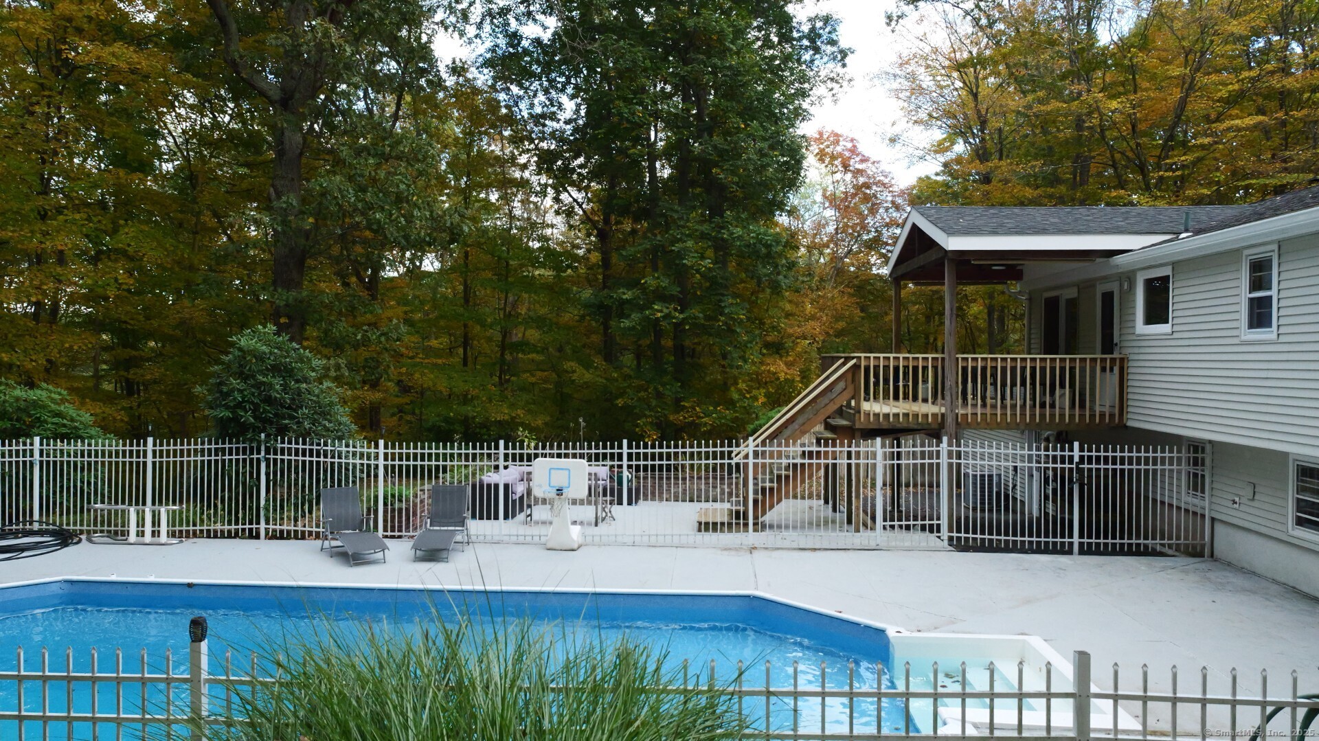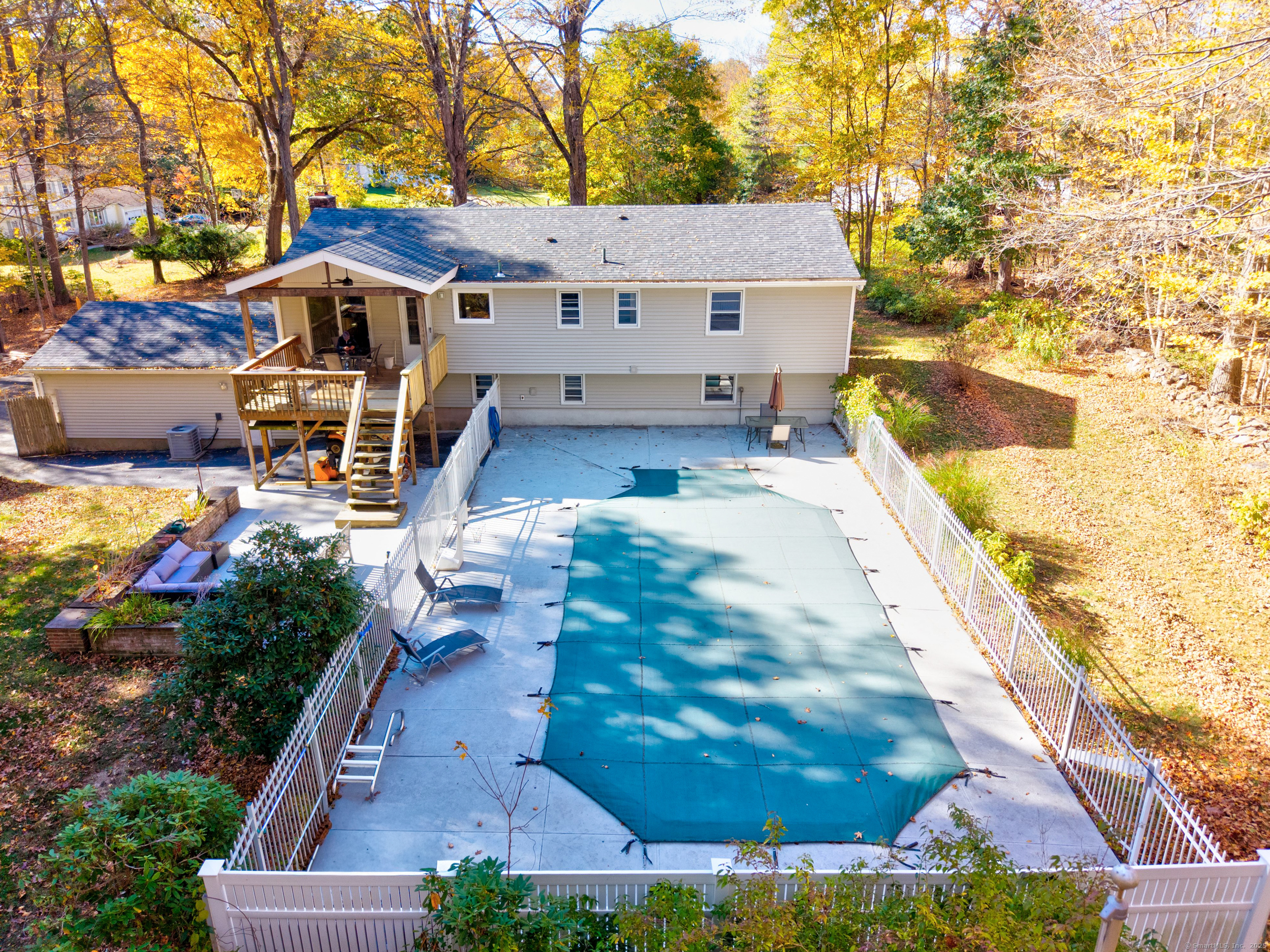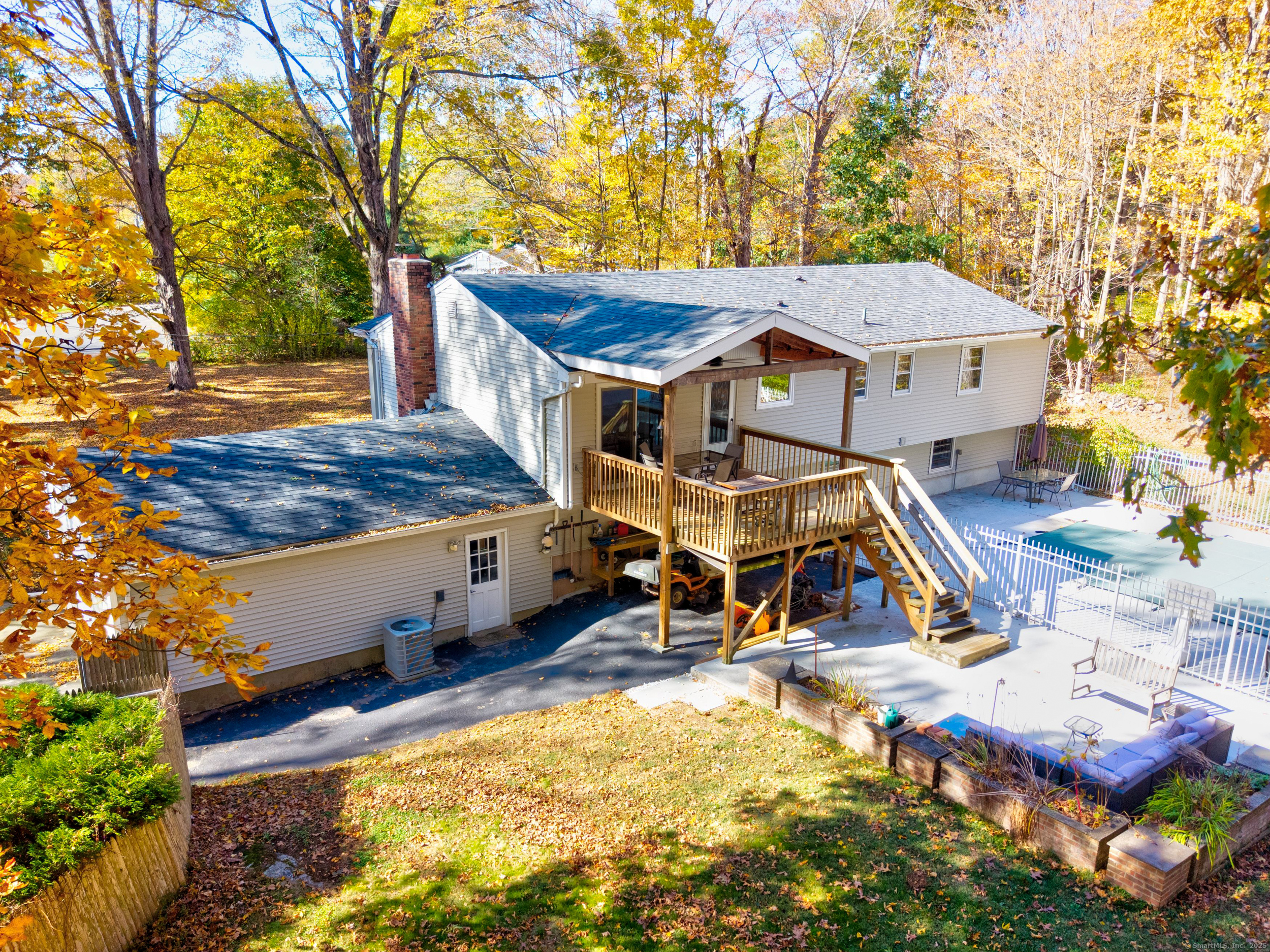 Desirable cul-de-sac location on a private 1.72-acre lot. This spacious home sits back from the cu-de-sac and features an open layout with hardwood floors, central A/C, freshly painted interior, and abundant natural light. Enjoy 4 bedrooms and 2 1/2 full baths, 2-car garage, and a park-like backyard with an in-ground pool (NEW liner); perfect for relaxing or entertaining. Kitchen opens to a covered deck overlooking the lower patio, pool, and backyard with beautiful gardens and a variety of perennials. The finished lower level offers an additional 1,129 SF of living space. If you're looking for space, this home has it all! Just minutes to the center of town, shopping, restaurants, highway, and schools. Plus, on city water.